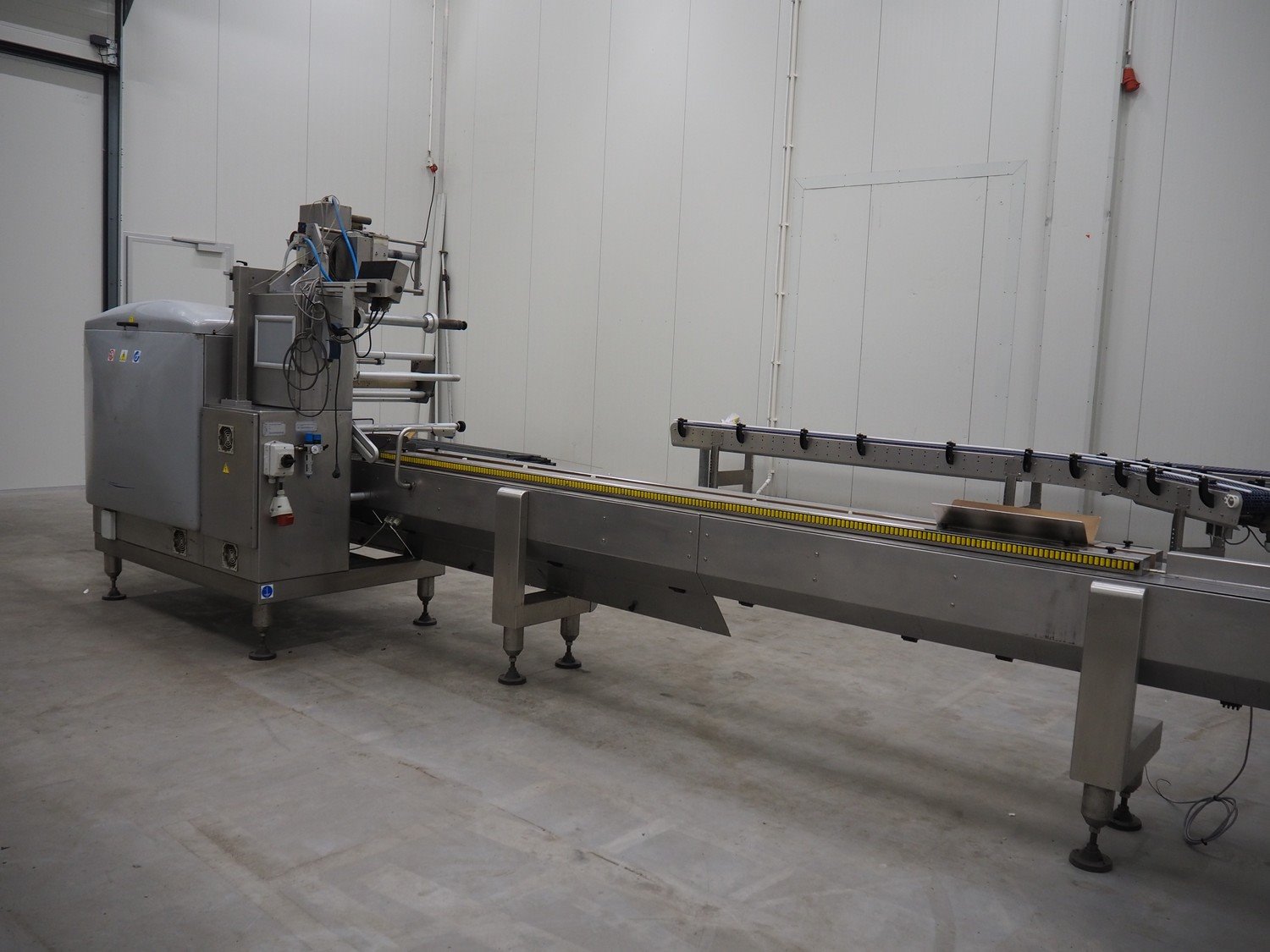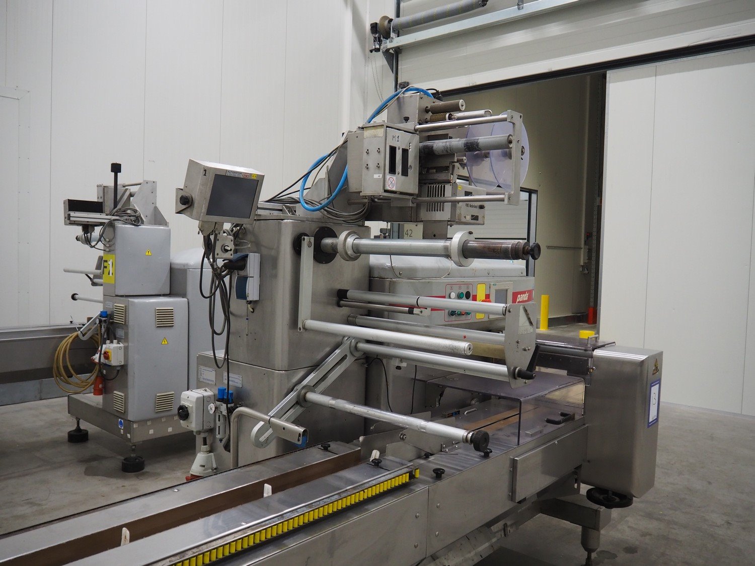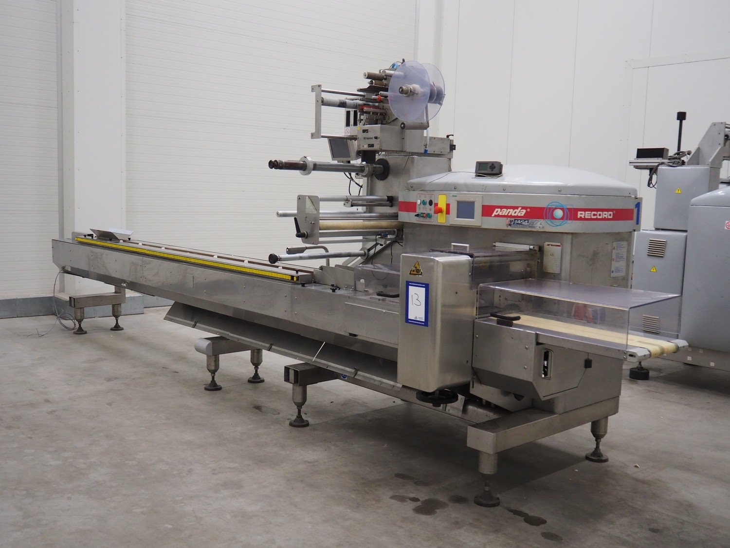 Record flowpacker with VWS Nederland B.V. labelling unit, type: PANDA.MD SP., serial number: 15-06-301, year of construction: 2007, weight: 1050 kg, distance between dividers: 410 mm, seal width: 350 mm, plastic belt, belt width: 210 mm, total dimensions: 6300 mm x 1500 mm x 2250 mm. Kavel locatie: ABC Westland 210, 2685 DC Poeldijk, Nederland