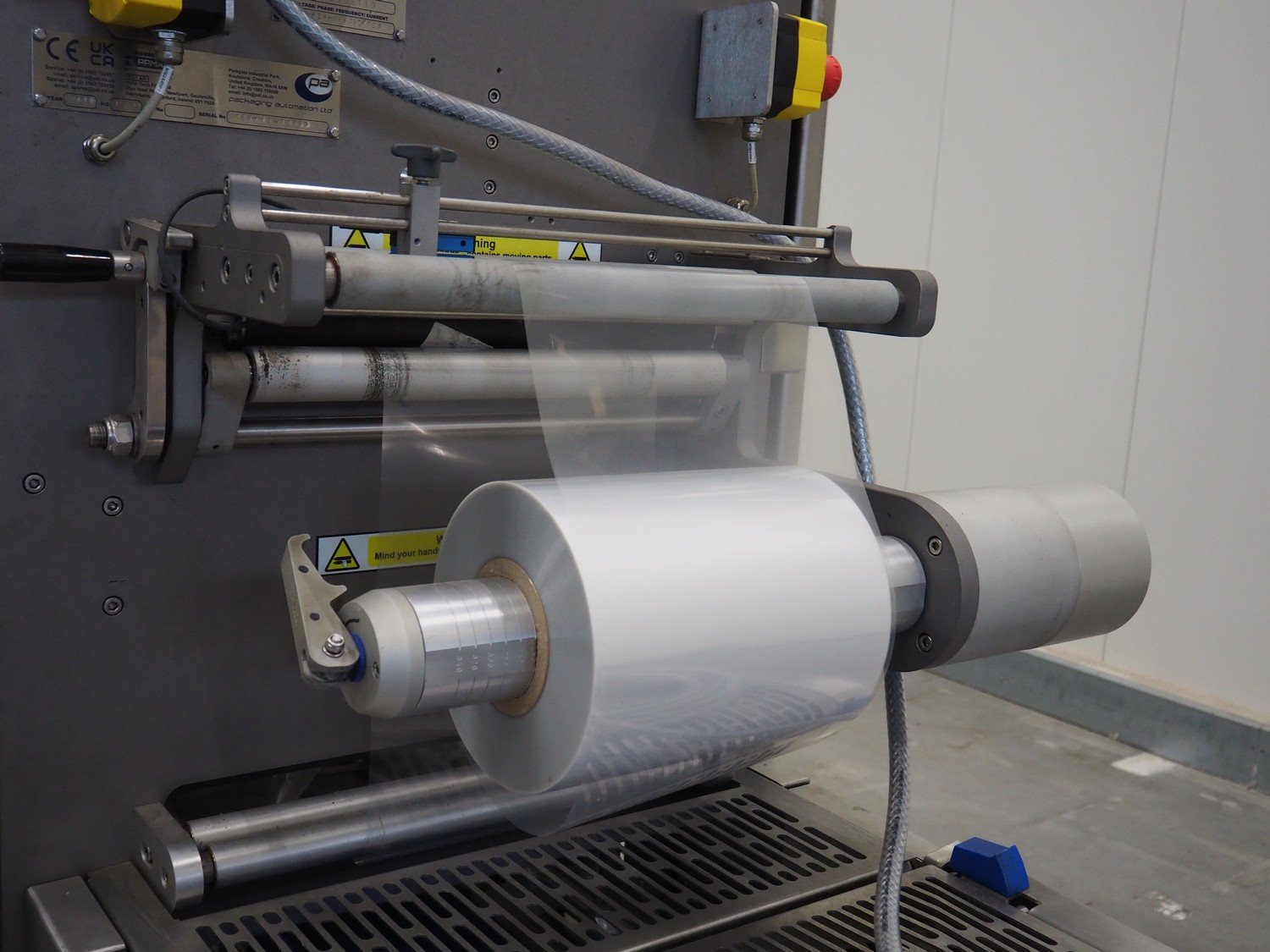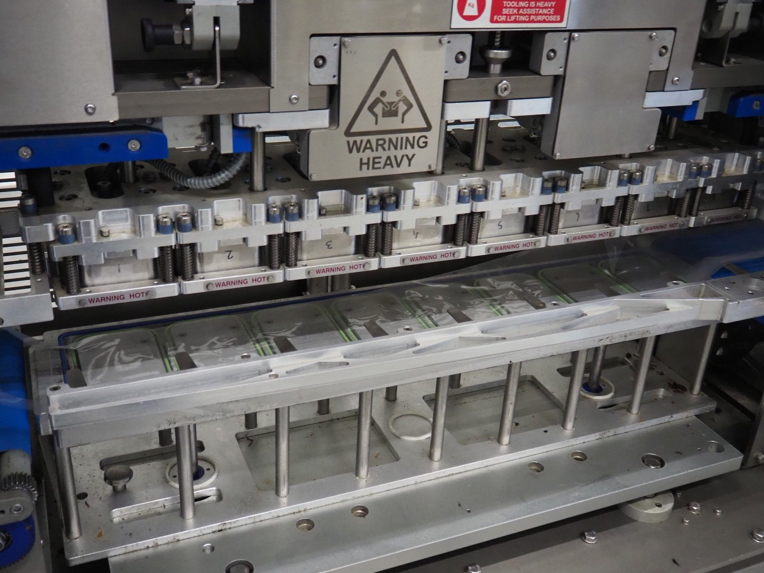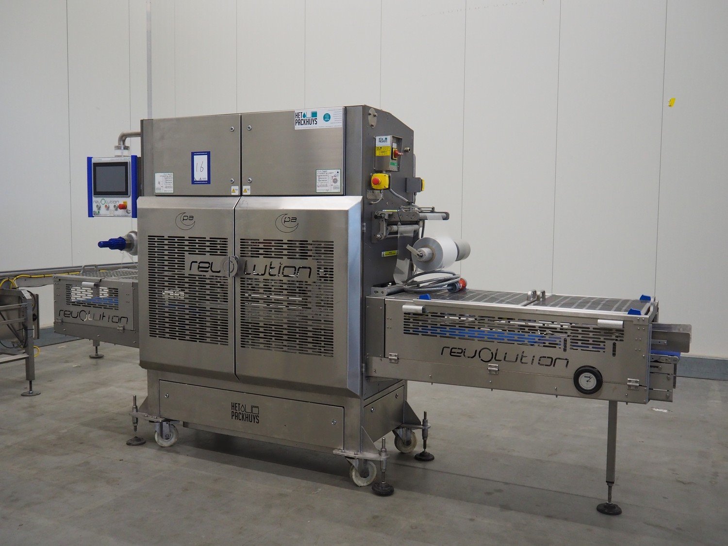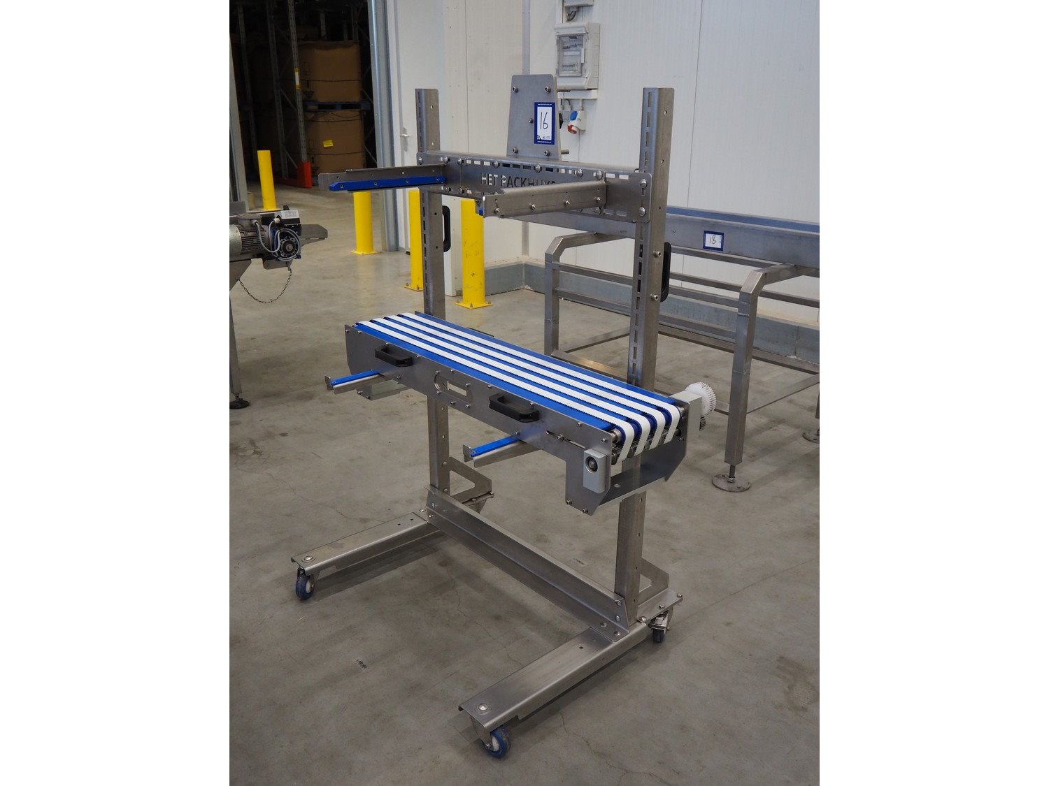 Packaging Automation Ltd traysealer, model: REVOLUTION (OPPOSITE HAND), serial number: REV-MC-00113, year of construction: 2021, 415 V, 3 Ph, 50 Hz, 32 A, plastic belt, belt width: 290 mm, film width: 235 mm, dimensions dyes: (8x) 110 mm x 180 mm, total dimensions: 4100 mm x 950 mm x 2150 mm. Including 2 s/s trolley with parts, dimensions dyes: (8x) 110 mm x 130 mm, dimensions trolleys: 750 mm x 1000 mm x 1400 mm, 750 mm x 1000 mm x 2450 mm. Kavel locatie: ABC Westland 210, 2685 DC Poeldijk, Nederland