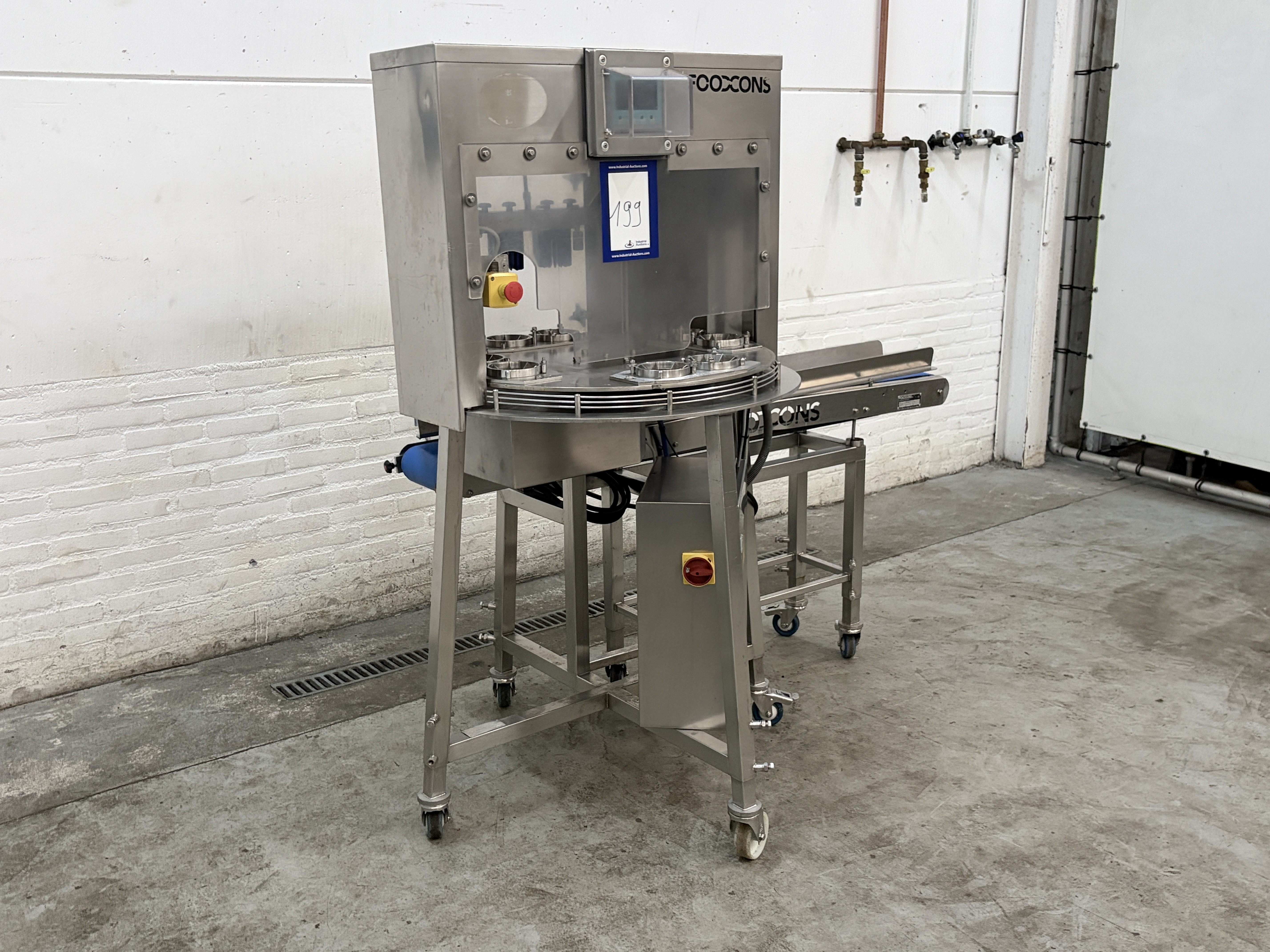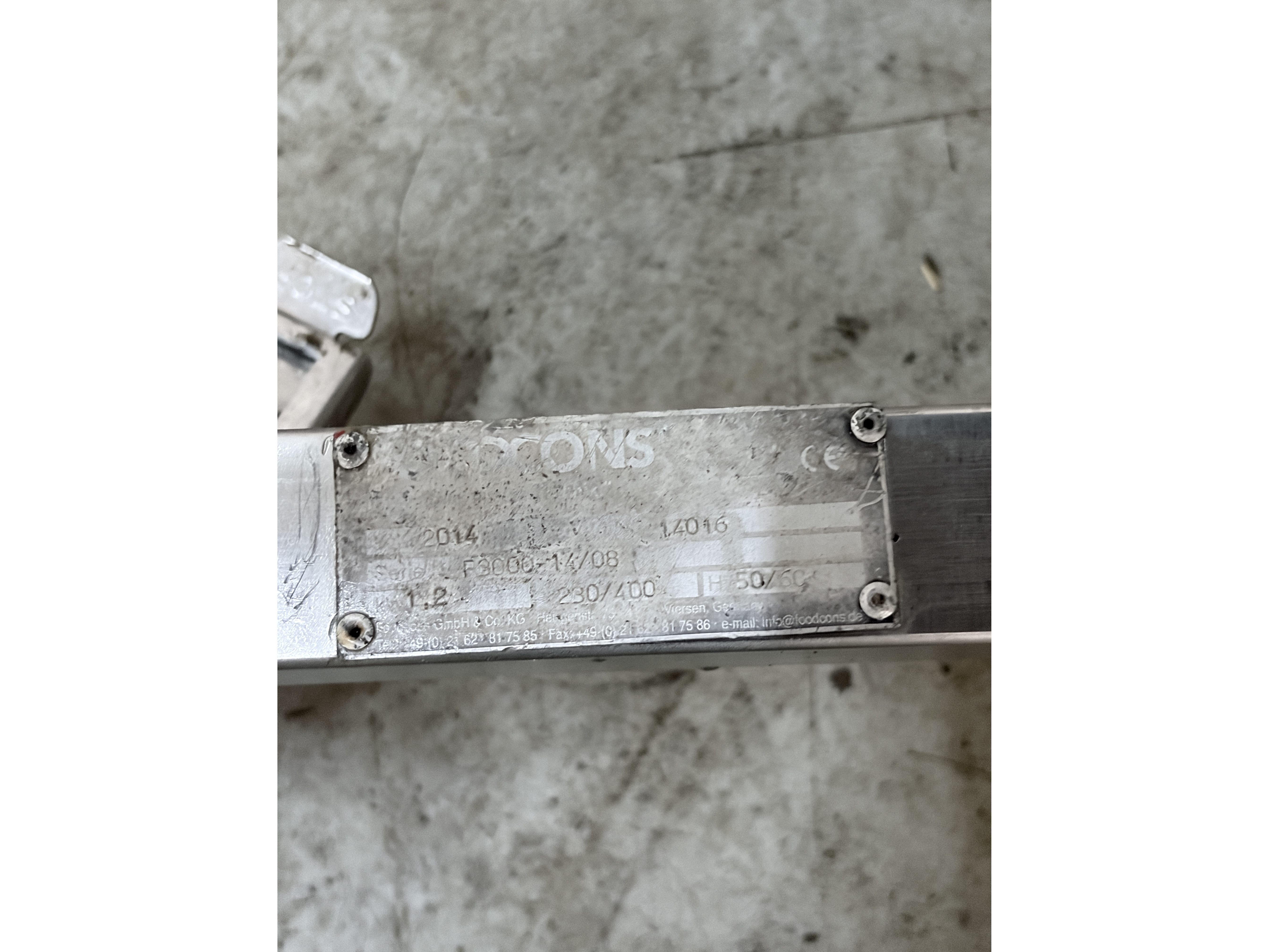 Foodcons slicer, type: F3000, serial number: F3000-14/08, year of construction: 2014, 230/400 V, 3 Ph, 50/60 Hz, 1.2 kW, capacity: 3600 pieces per hour, weight: 237 kg, dimensions: 1800 mm x 1000 mm x 1610 mm. Kavel locatie: Denariusstraat 20, 4903 RC Oosterhout, Nederland
