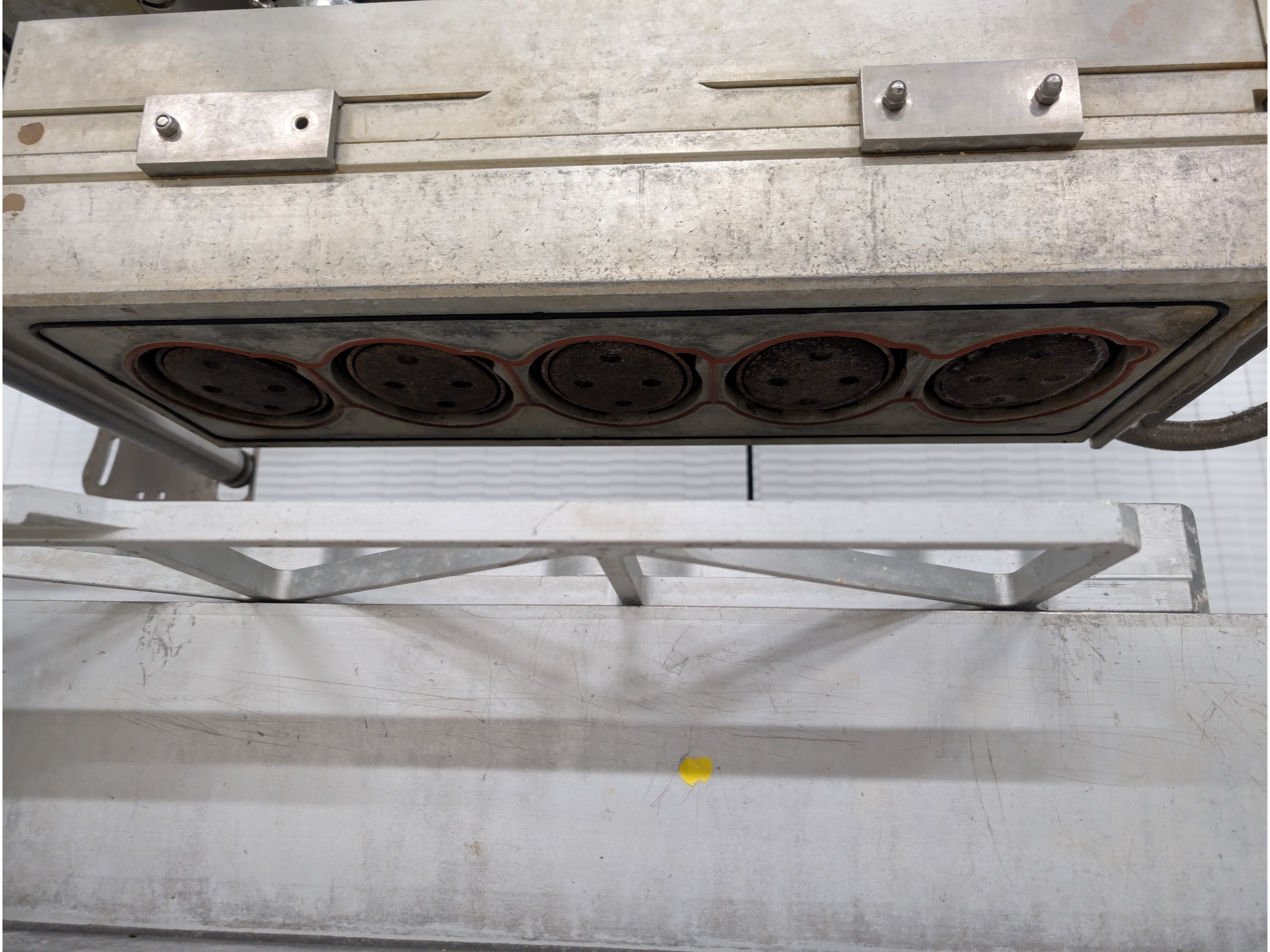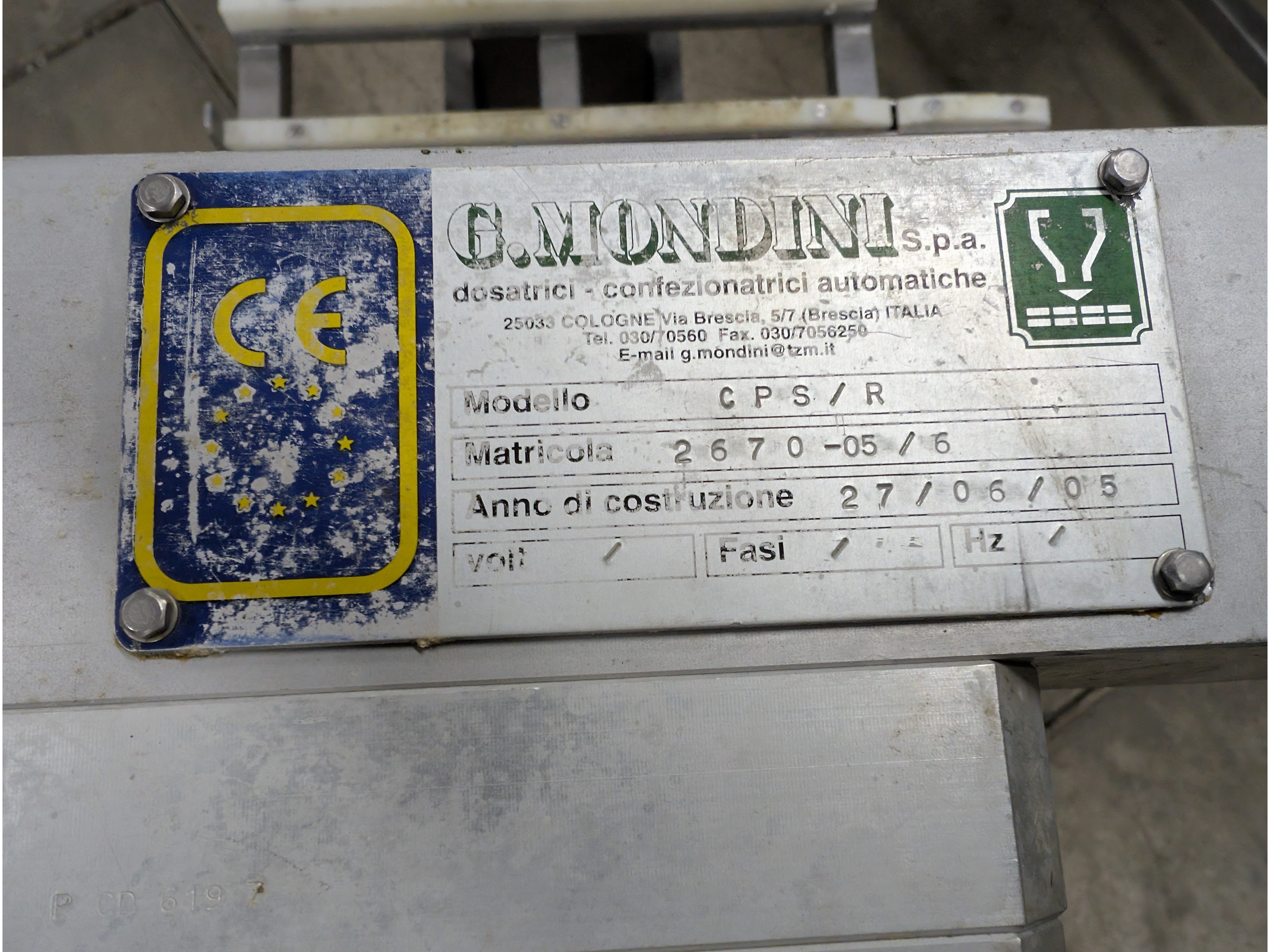 G. Mondini S.p.a. traysealer, model: TRAVE 367 VG, serial number: A/18/A-11784, year of construction: 2018, 400 V, 3 Ph, 50 Hz, plastic string belt, belt width: 300 mm, dimensions dye: (5x) 140 mm x 100 mm, total dimensions: 4100 mm x 1000 mm x 2400 mm. With chain infeed belt, additional dye sets, trolley and frames for dyes. Kavel locatie: Bedrijfsweg 7, 8304 AA Emmeloord, Nederland