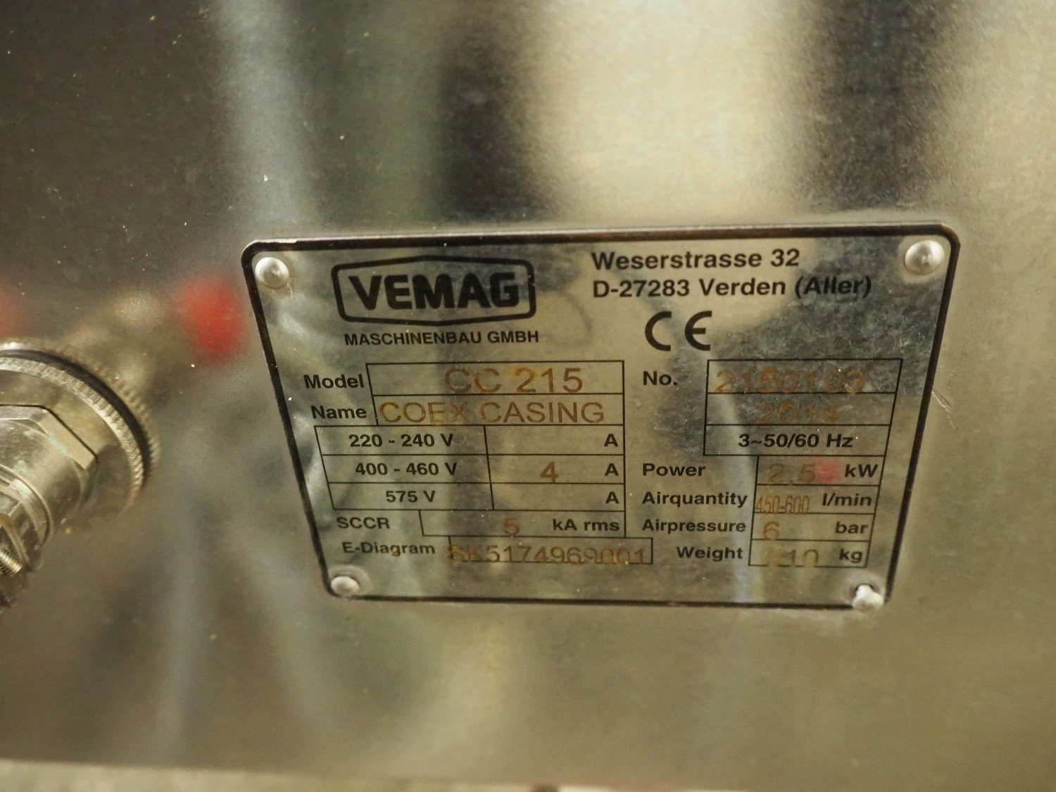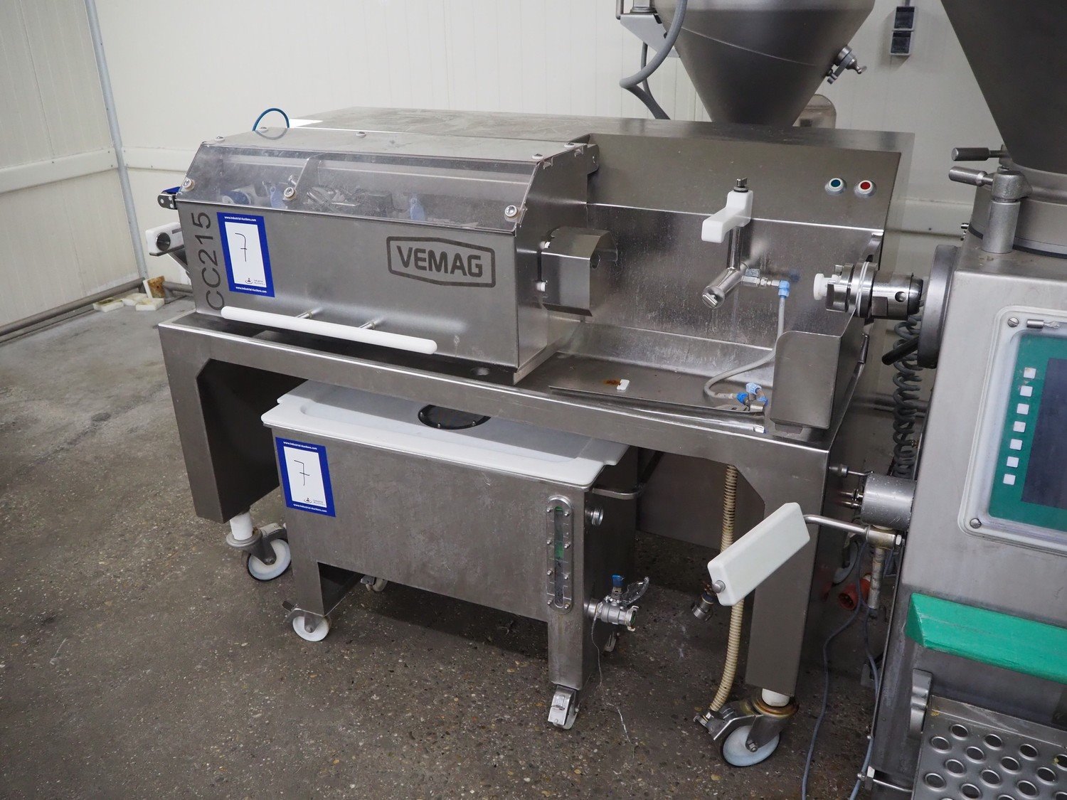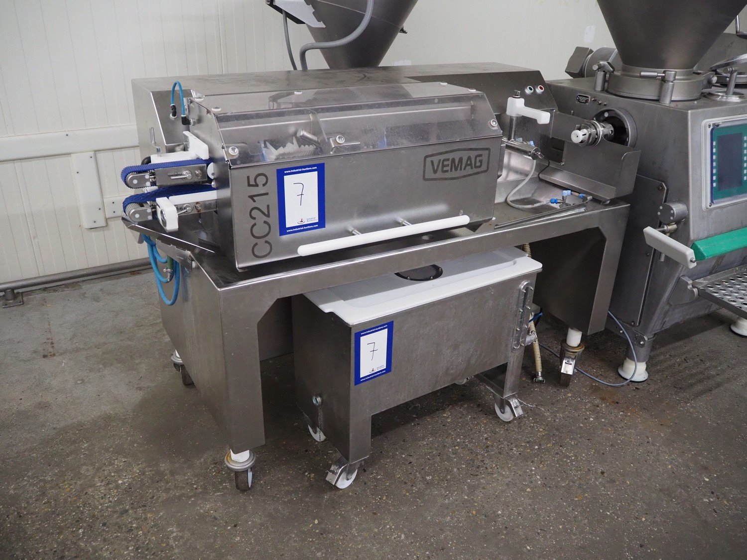Vemag Maschinenbau GmbH mobile co-extrusion, model: CC215, number: 2150103, year of construction: 2014, 400/460 V, 3 Ph, 50/60 Hz, 4 A, 2.5 kW, plastic belt, belt width: 50 mm, total dimensions: 1920 mm x 950 mm x 1300 mm. Including s/s trolley, dimensions: 940 mm x 440 mm x 700 mm. Including 10 boxes with parts. Kavel locatie: Kaldenkerkerweg 5, 5932 CS Tegelen, Nederland