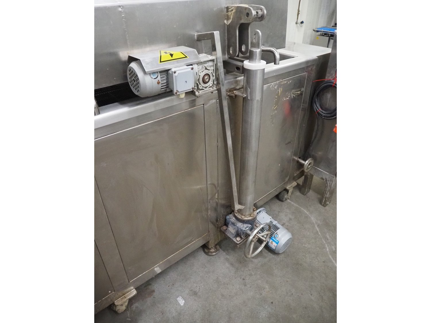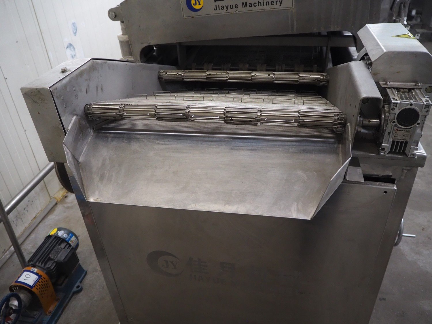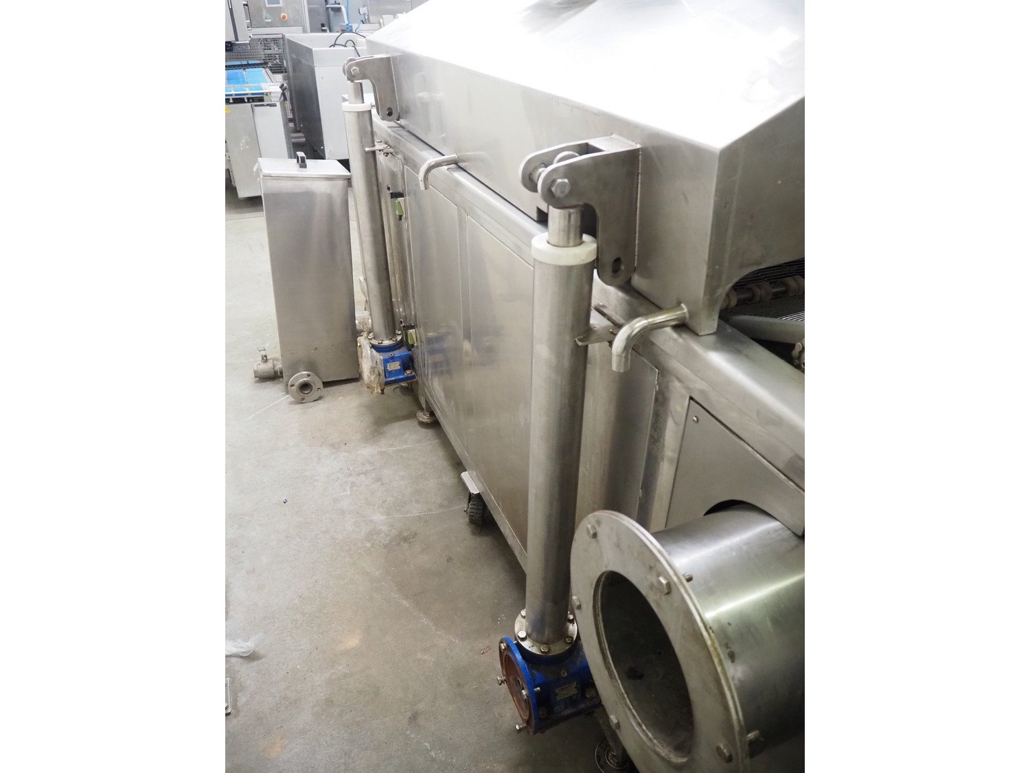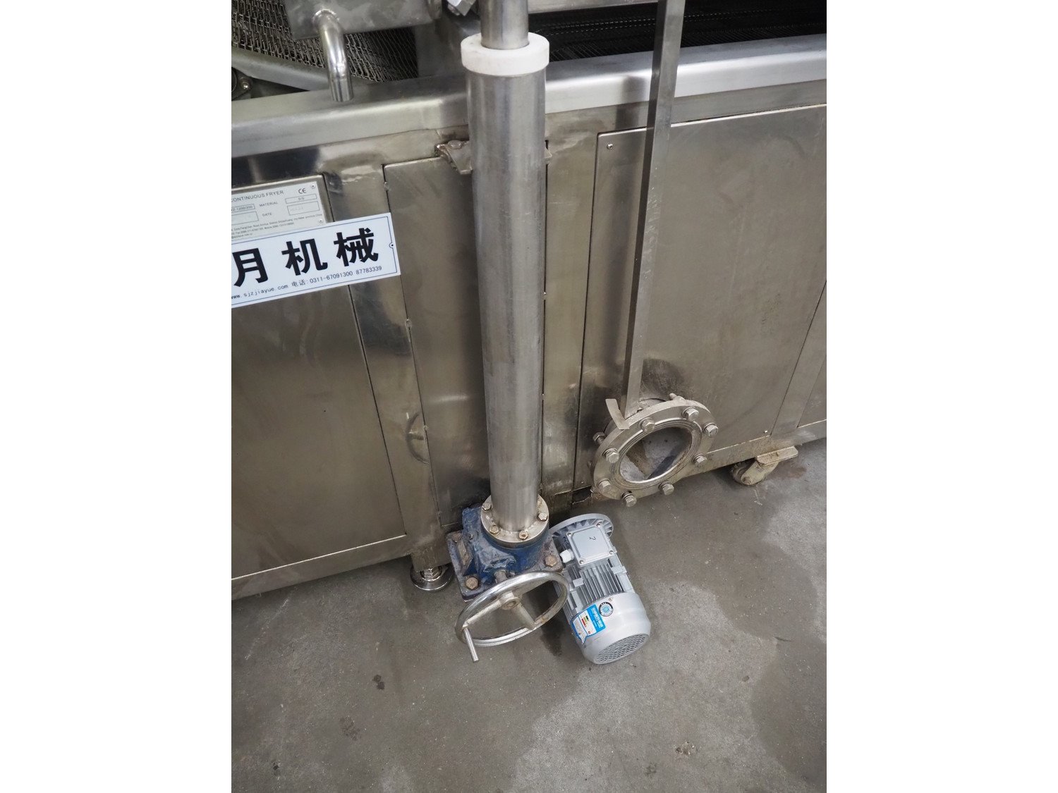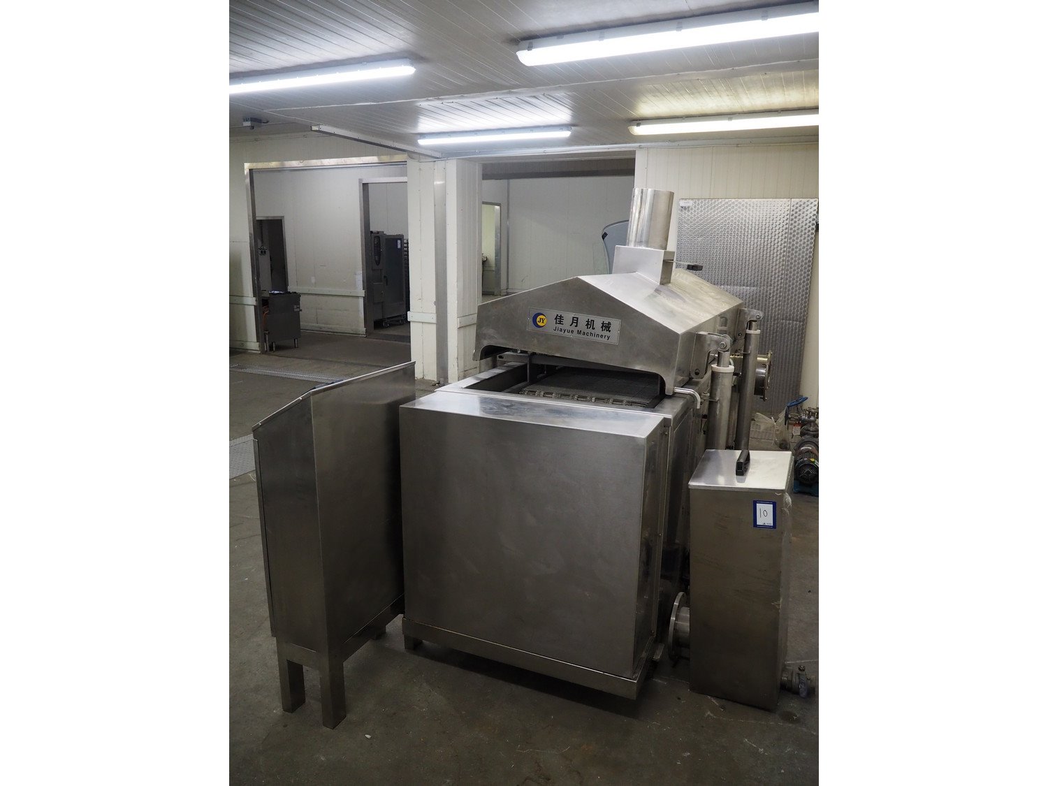 Jiayue Machinery mobile continuous fryer, model: JYWZ-1200/200, 380 V, 3 Ph, s/s mesh belt, belt width: 600 mm, distance between dividers: 200 mm, divider height: 15 mm, total dimensions: 3450 mm x 1400 mm x 2000 mm. Including switch cabinet, dimensions: 600 mm x 260 mm x 1250 mm. Kavel locatie: Kaldenkerkerweg 5, 5932 CS Tegelen, Nederland