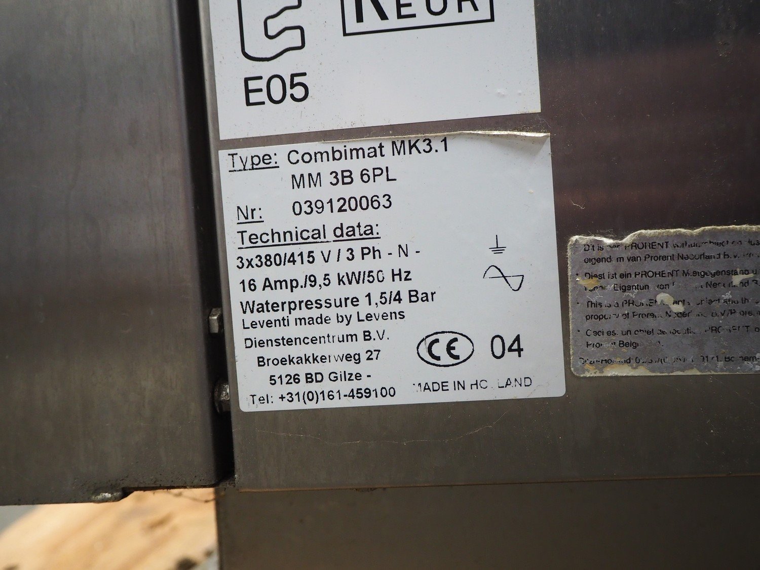 Leventi combi steamer, type: Combimat MK3.1 MM 3B 6PL, number: 039120063 , 380/415 V, 3 Ph, 16 A, 9.5 kW, 6 floors, dimensions each floor: 550 mm x 410 mm, total dimensions: 1000 mm x 850 mm x 780 mm. Kavel locatie: Kaldenkerkerweg 5, 5932 CS Tegelen, Nederland