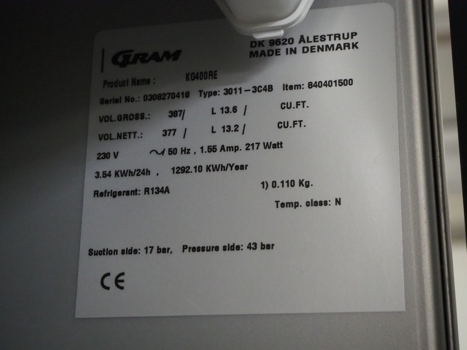 Gram refrigerator, type: 3011-3C4B, serial number: 0308270418 , 230 V, 50 Hz, 1.55 A, 217 W, refrigerant: R134A, 3 floors, dimensions each floor: 530 mm x 440 mm, total dimensions: 620 mm x 600 mm x 1800 mm. Kavel locatie: Kaldenkerkerweg 5, 5932 CS Tegelen, Nederland