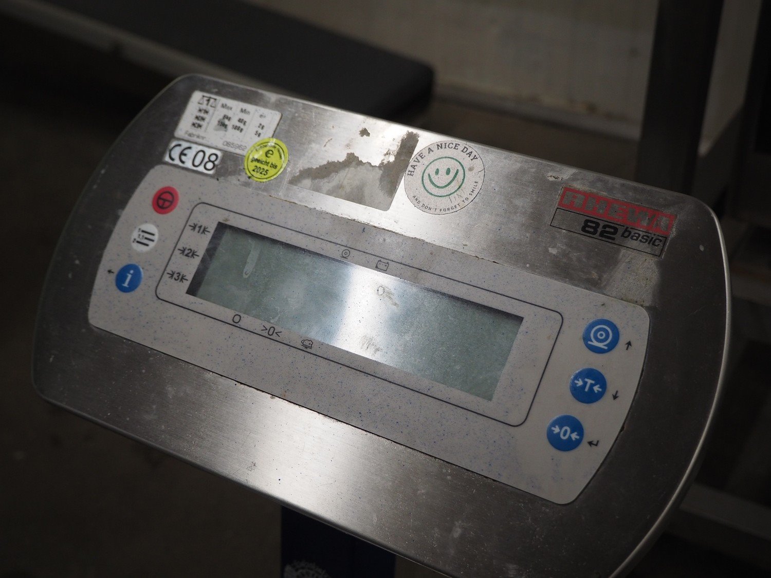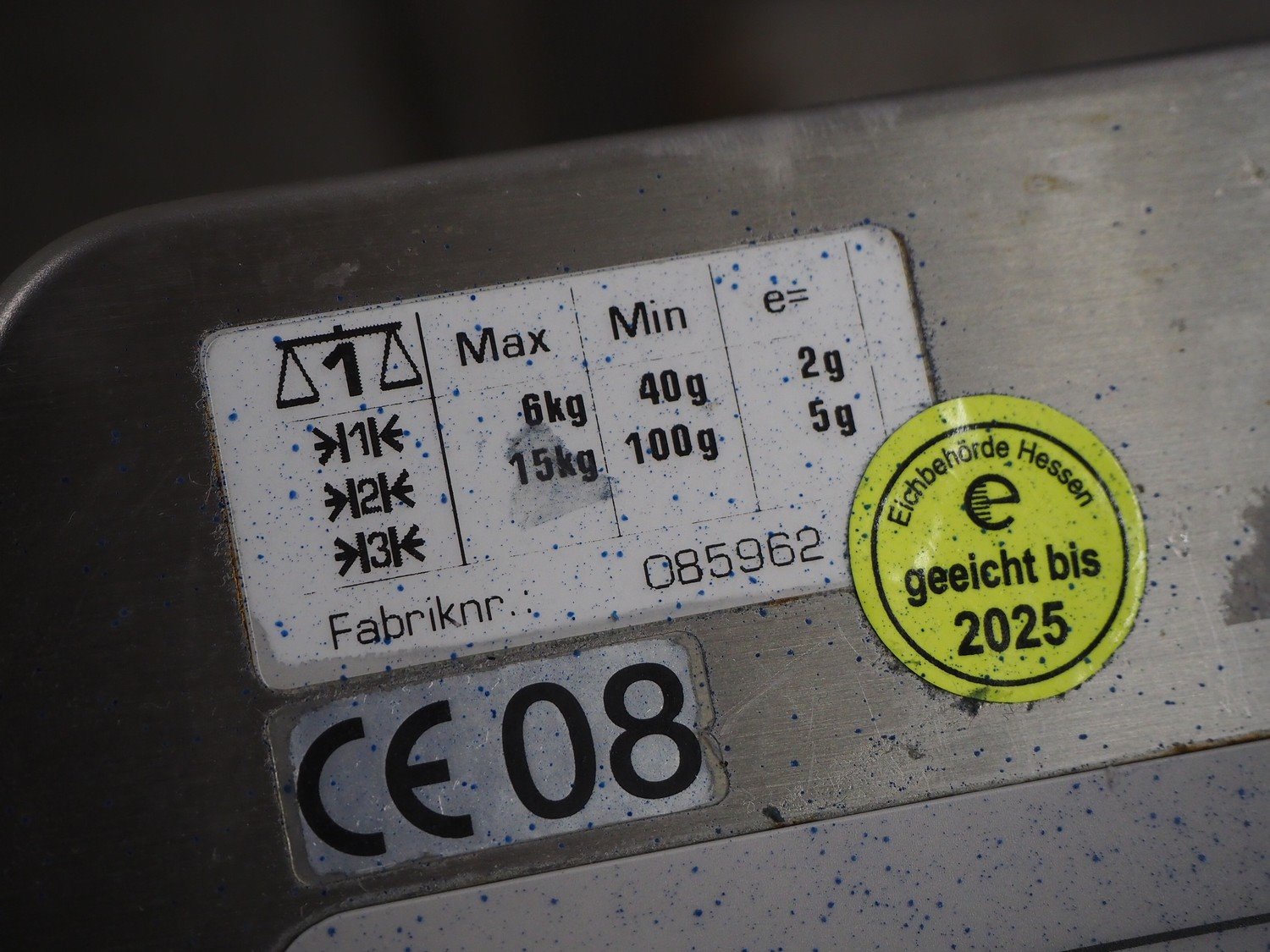 Rhewa weighing scale, min: 40/100 g, max: 6/15 Kg, e=2/5 g, dimensions scale: 500 mm x 400 mm, total dimensions: 500 mm x 470 mm x 700 mm. Kavel locatie: Kaldenkerkerweg 5, 5932 CS Tegelen, Nederland