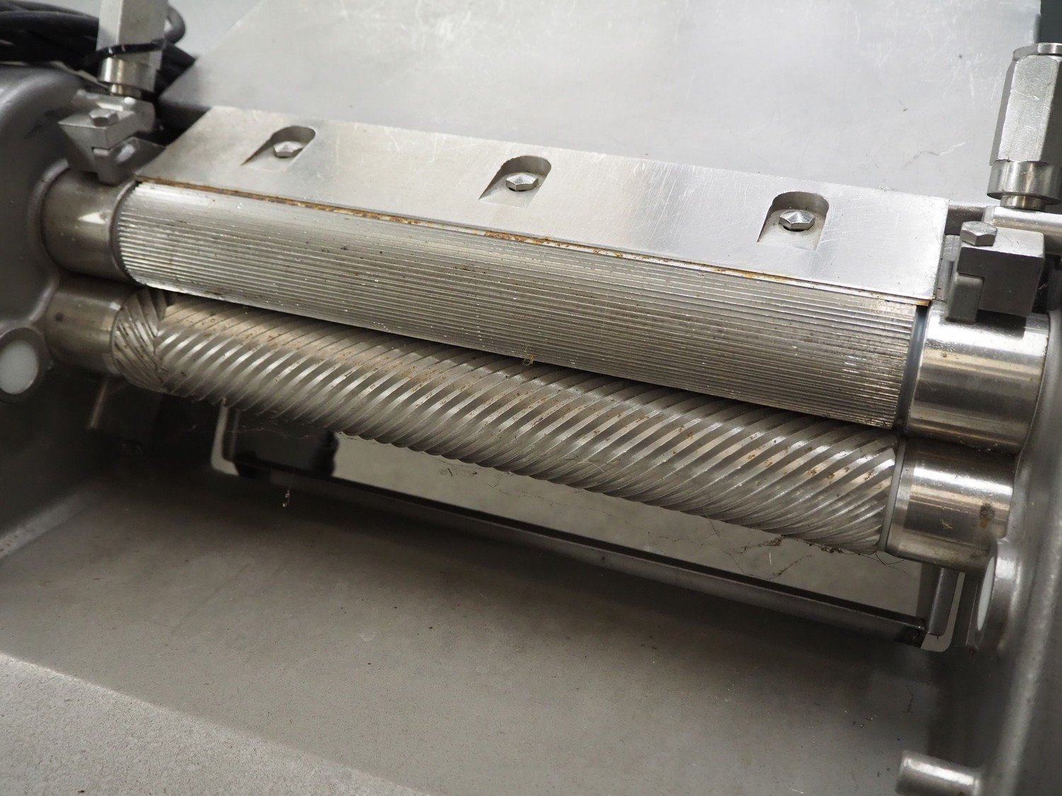 Townsend Engineering BV mobile skinning machine, model: 1520, serial number: 121, year of construction: 1997, 220 V, 1 Ph, 50 Hz, 5.6 A, working width: 380 mm, total dimensions: 700 mm x 610 mm x 1000 mm. Kavel locatie: Kaldenkerkerweg 5, 5932 CS Tegelen, Nederland