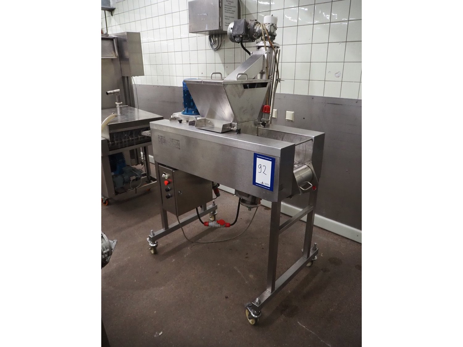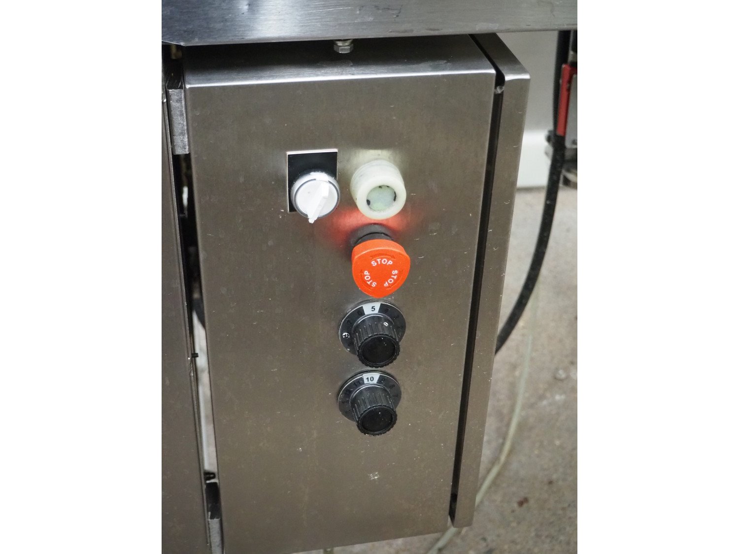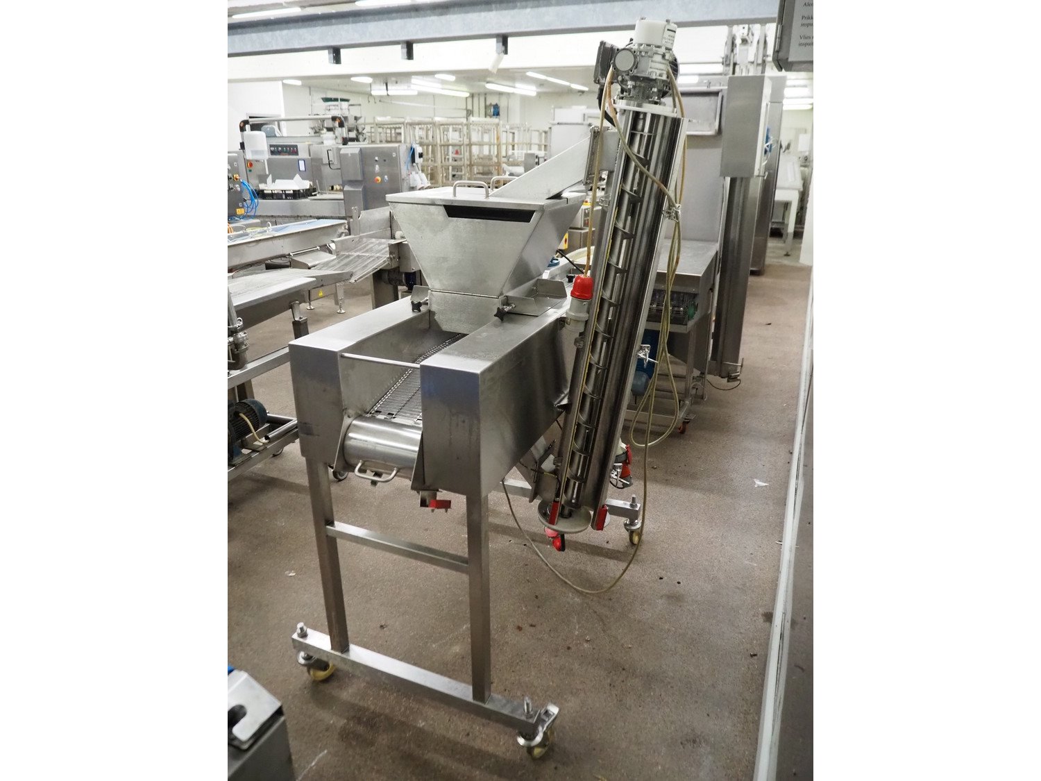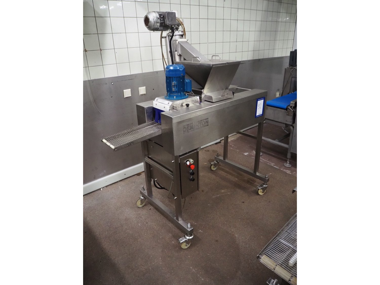 Deighton Manufacturing UK LTD mobile breading machine, s/s mesh belt, belt width: 200 mm, total dimensions: 1600 mm x 900 mm x 1900 mm. Kavel locatie: Kaldenkerkerweg 5, 5932 CS Tegelen, Nederland