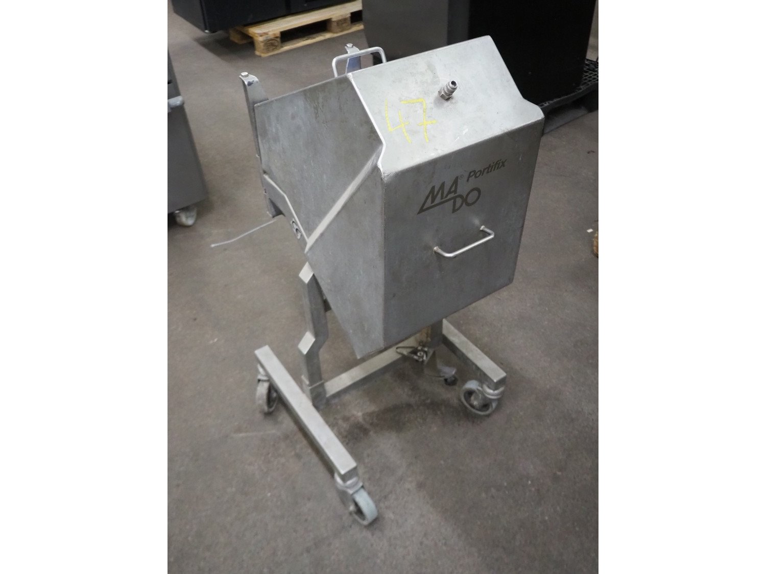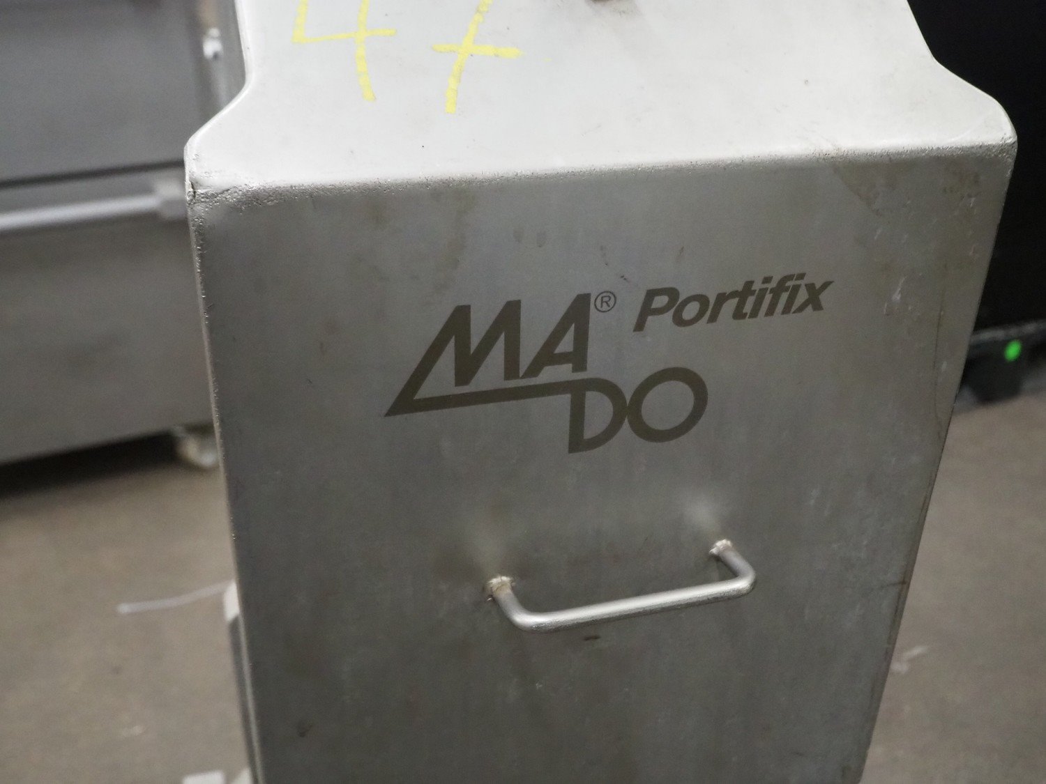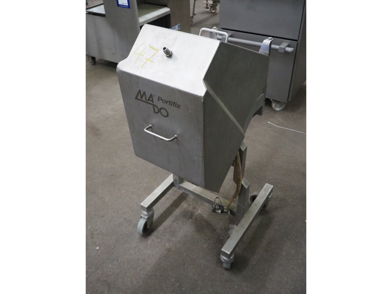 MaDo mobile portioning machine, type: POG 420, number: 30064, year of construction: 2000, working width: 180 mm, total dimensions: 580 mm x 480 mm x 1020 mm. Kavel locatie: Kaldenkerkerweg 5, 5932 CS Tegelen, Nederland
