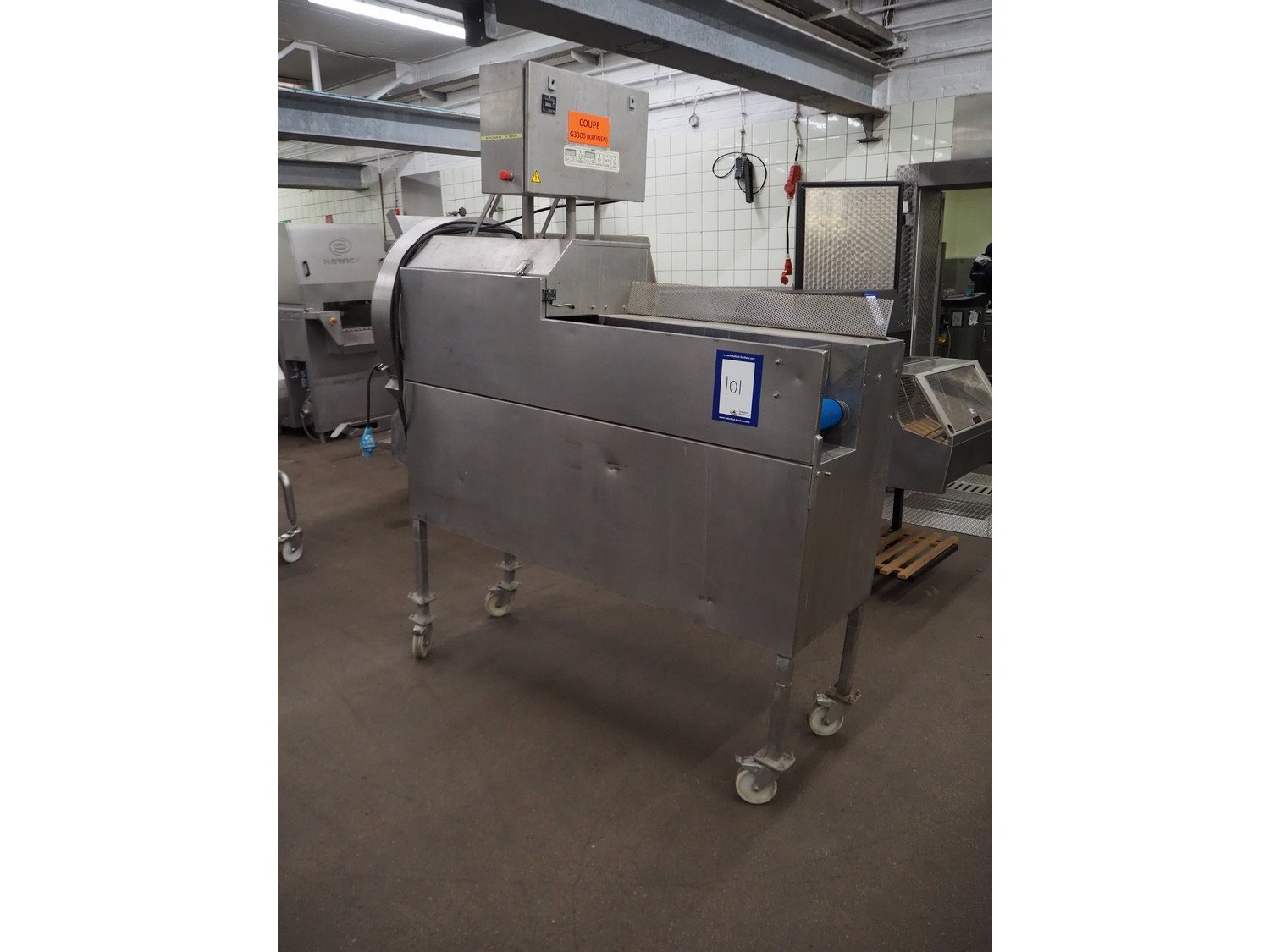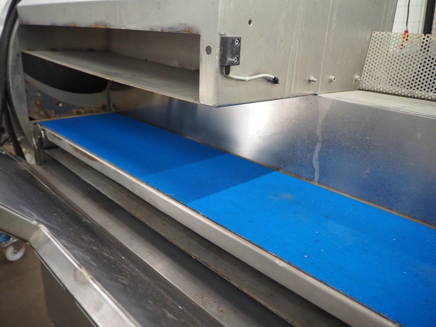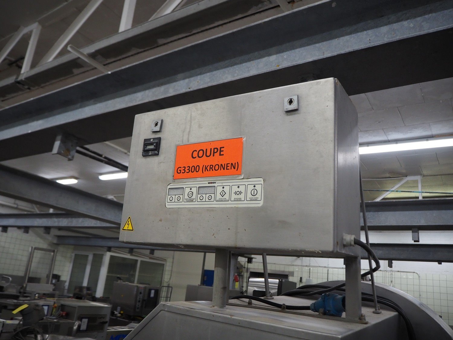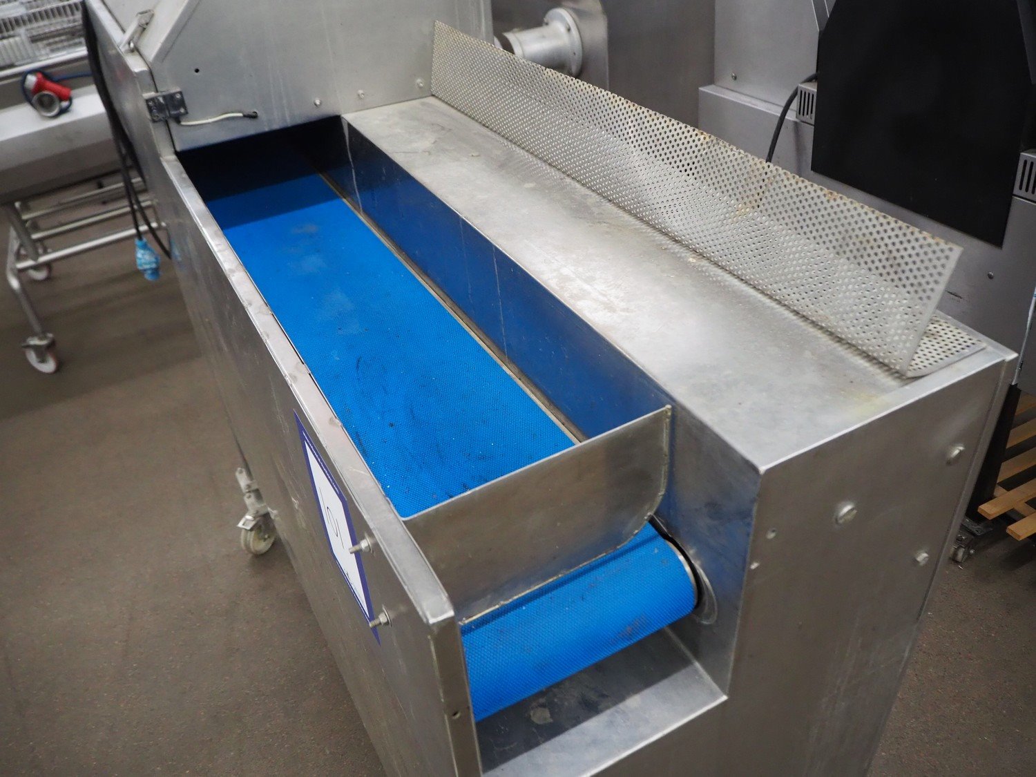 Eillert B.V. mobile slicer, type G3300, plastic belt, belt width: 240 mm, total dimensions: 2100 mm x 900 mm x 2250 mm. Kronen control system. Kavel locatie: Kaldenkerkerweg 5, 5932 CS Tegelen, Nederland