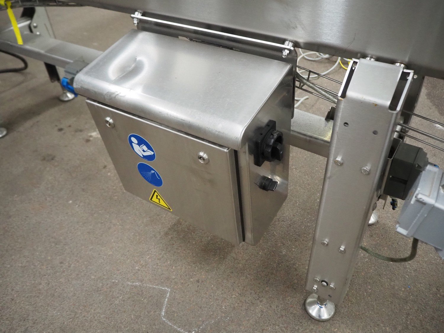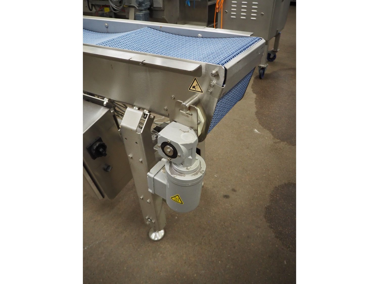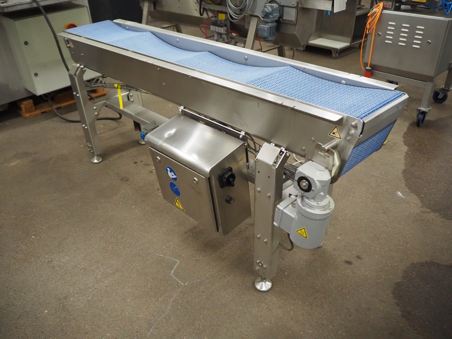 Transport belt, s/s frame, plastic mesh belt, belt width: 300 mm, total dimensions: 2020 mm x 440 mm x 910 mm. Kavel locatie: Kaldenkerkerweg 5, 5932 CS Tegelen, Nederland