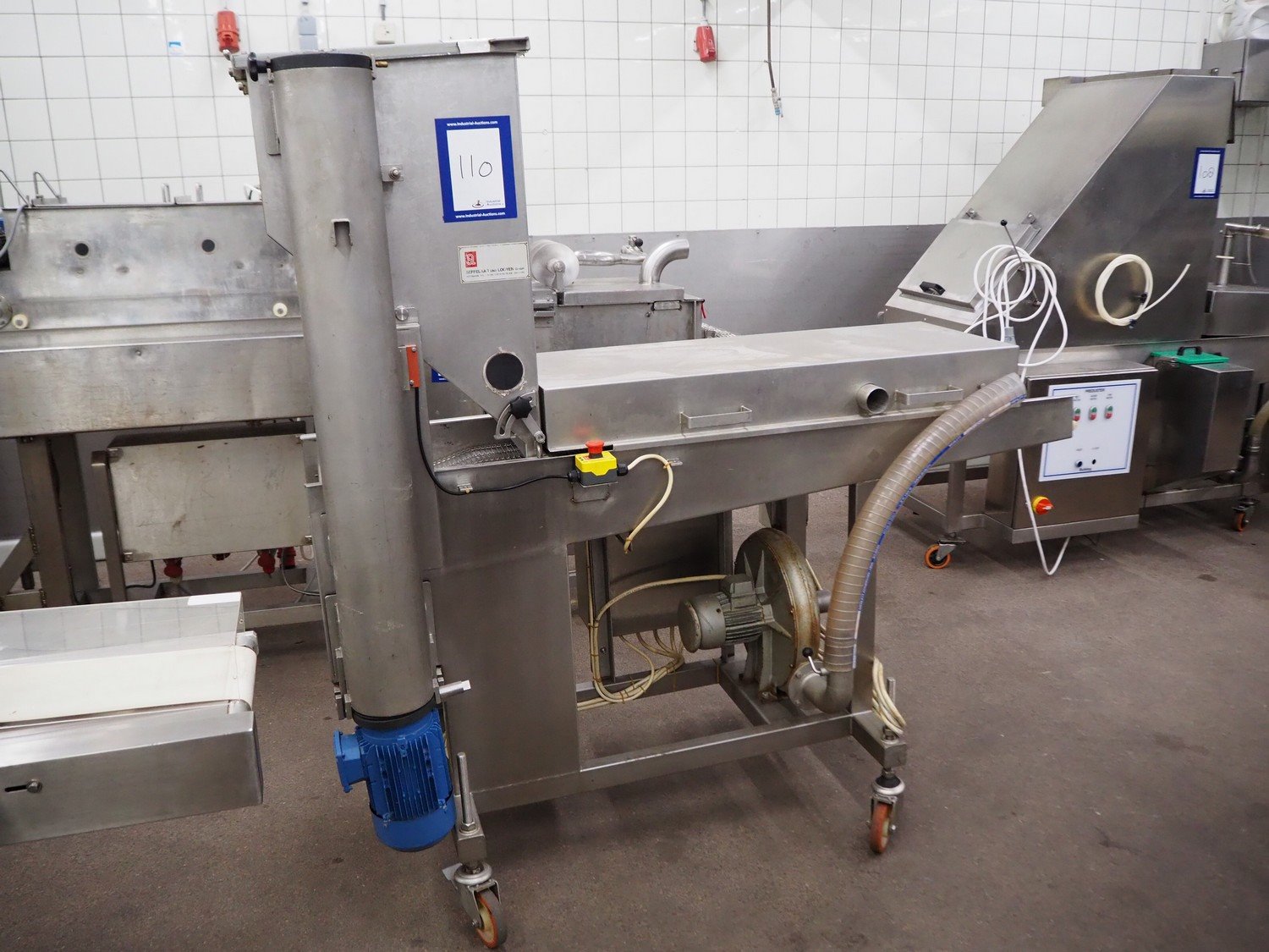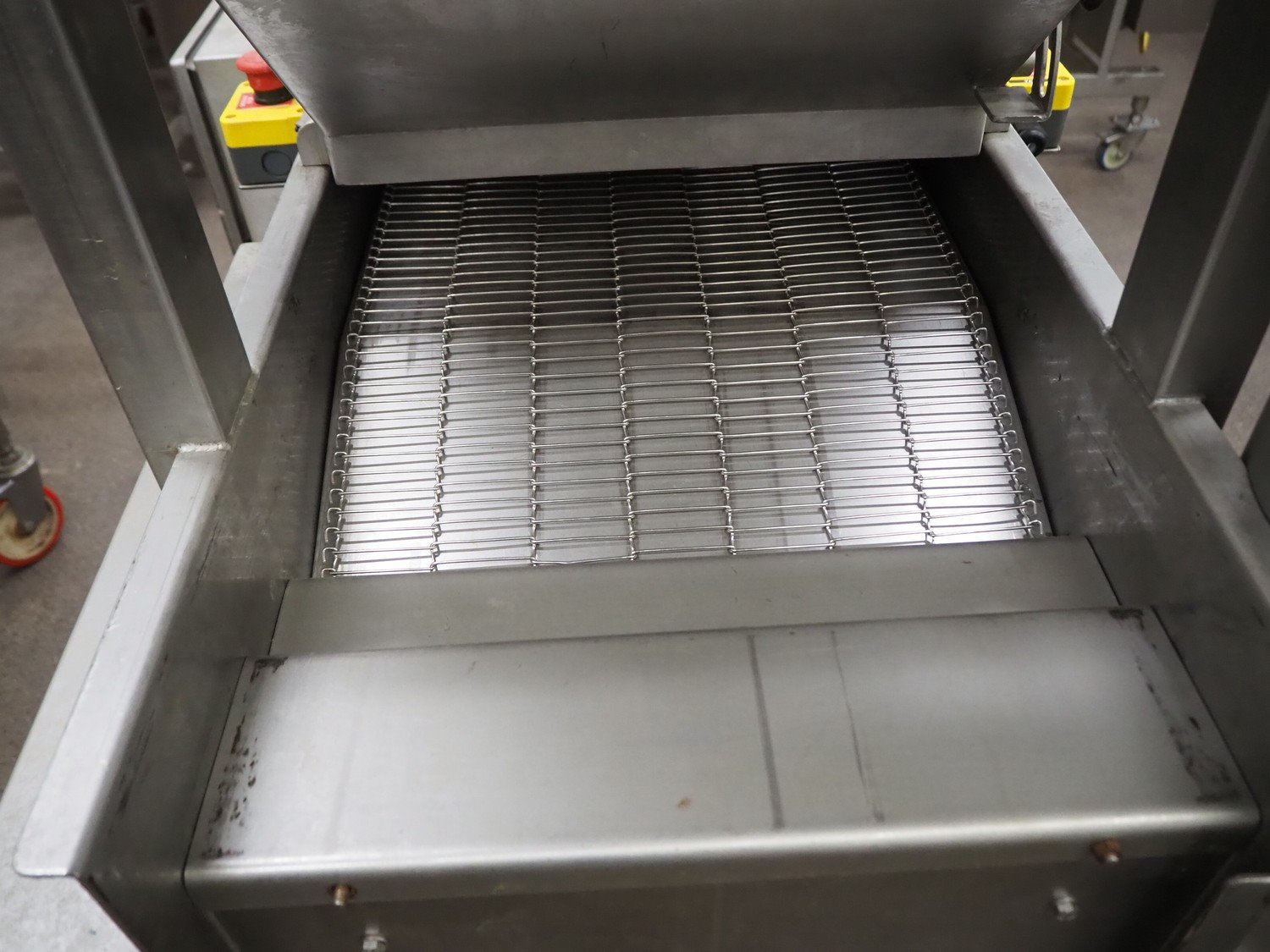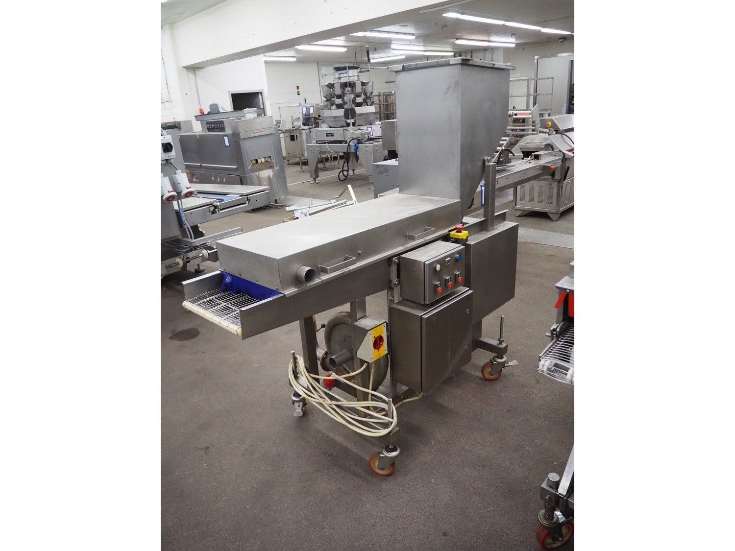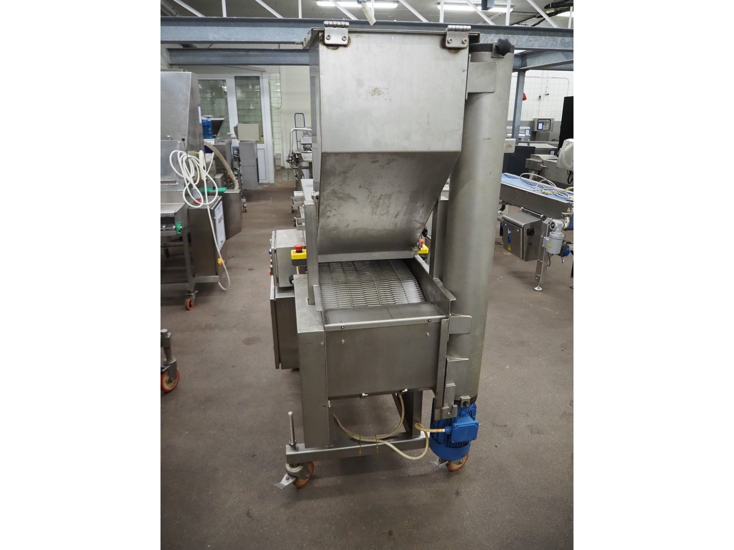 Seffelaar und Looyen GmbH mobile breading machine, s/s mesh belt, belt width: 400 mm, total dimensions: 1900 mm x 900 mm x 1800 mm. Kavel locatie: Kaldenkerkerweg 5, 5932 CS Tegelen, Nederland