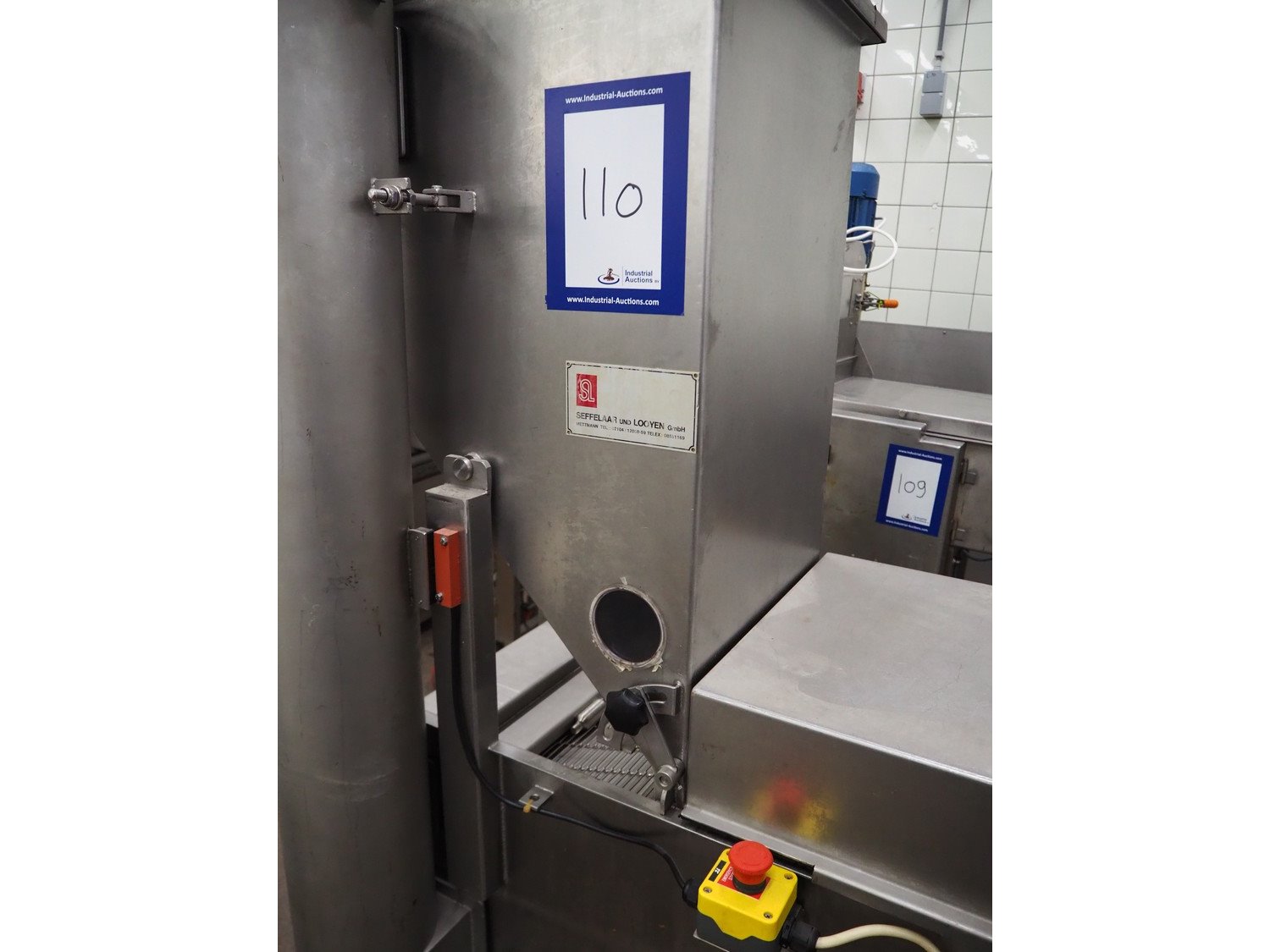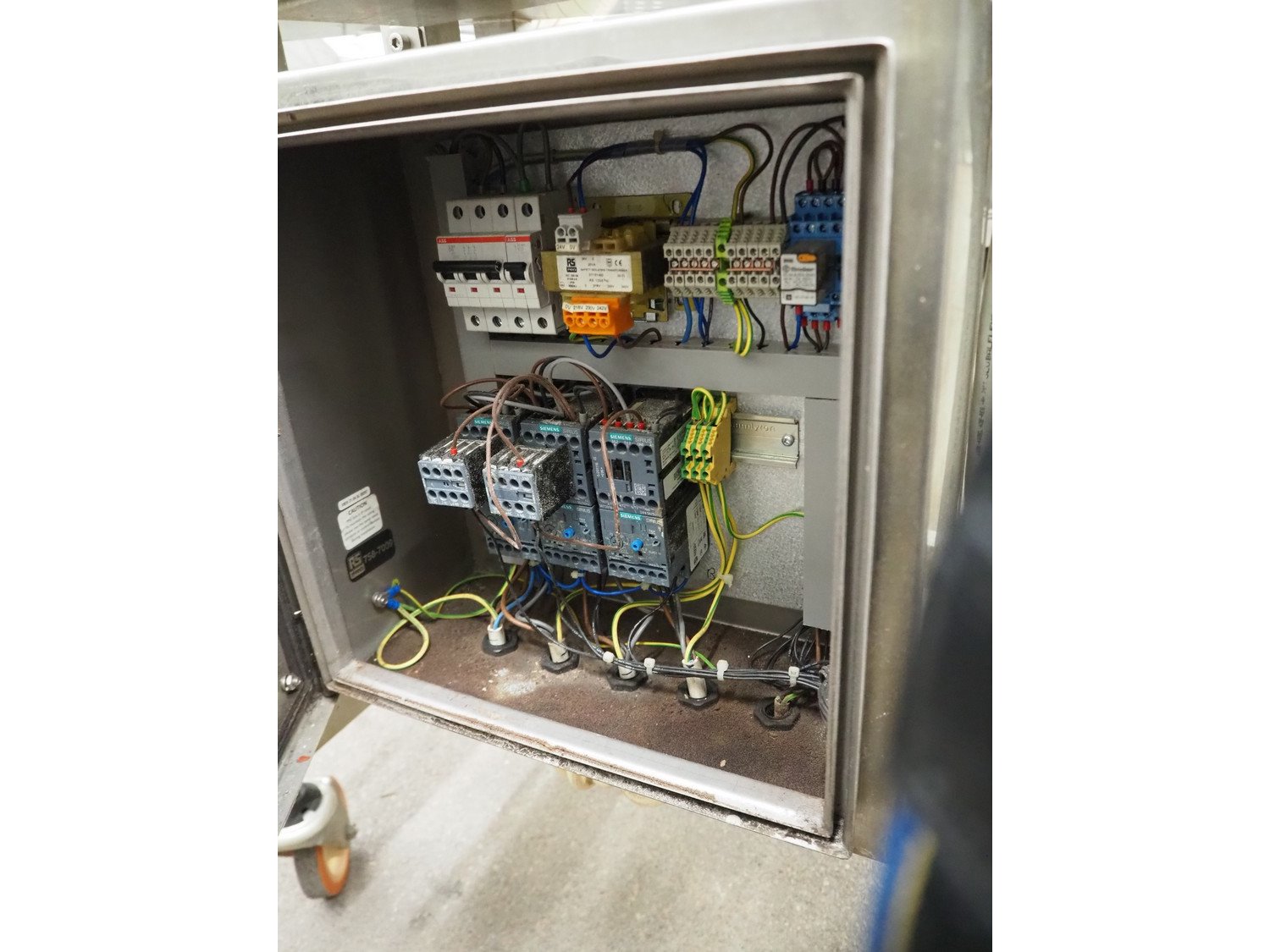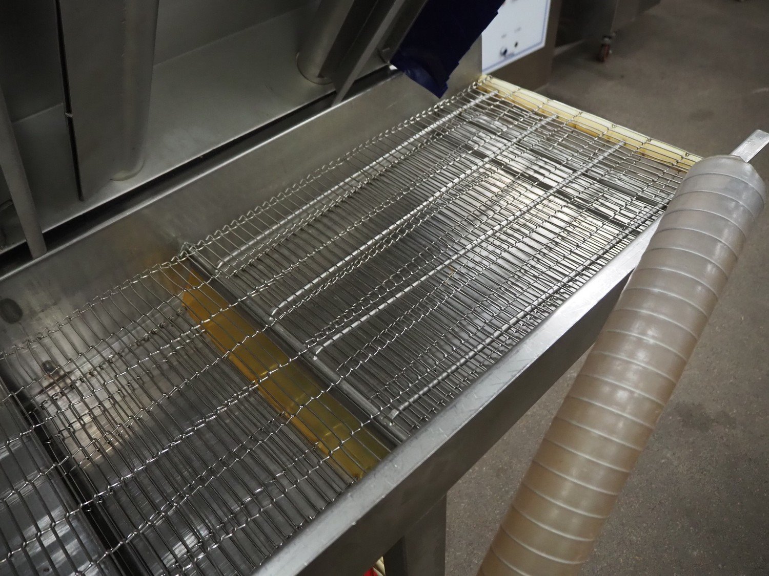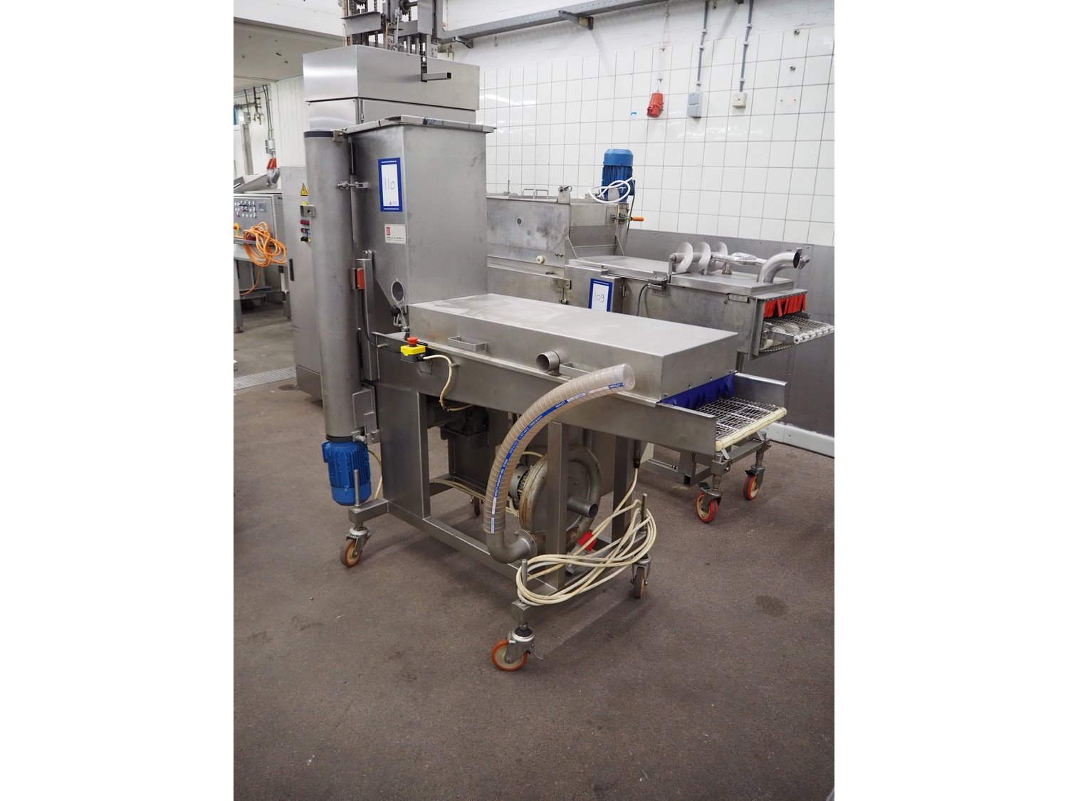 Seffelaar und Looyen GmbH mobile breading machine, s/s mesh belt, belt width: 400 mm, total dimensions: 1900 mm x 900 mm x 1800 mm. Kavel locatie: Kaldenkerkerweg 5, 5932 CS Tegelen, Nederland