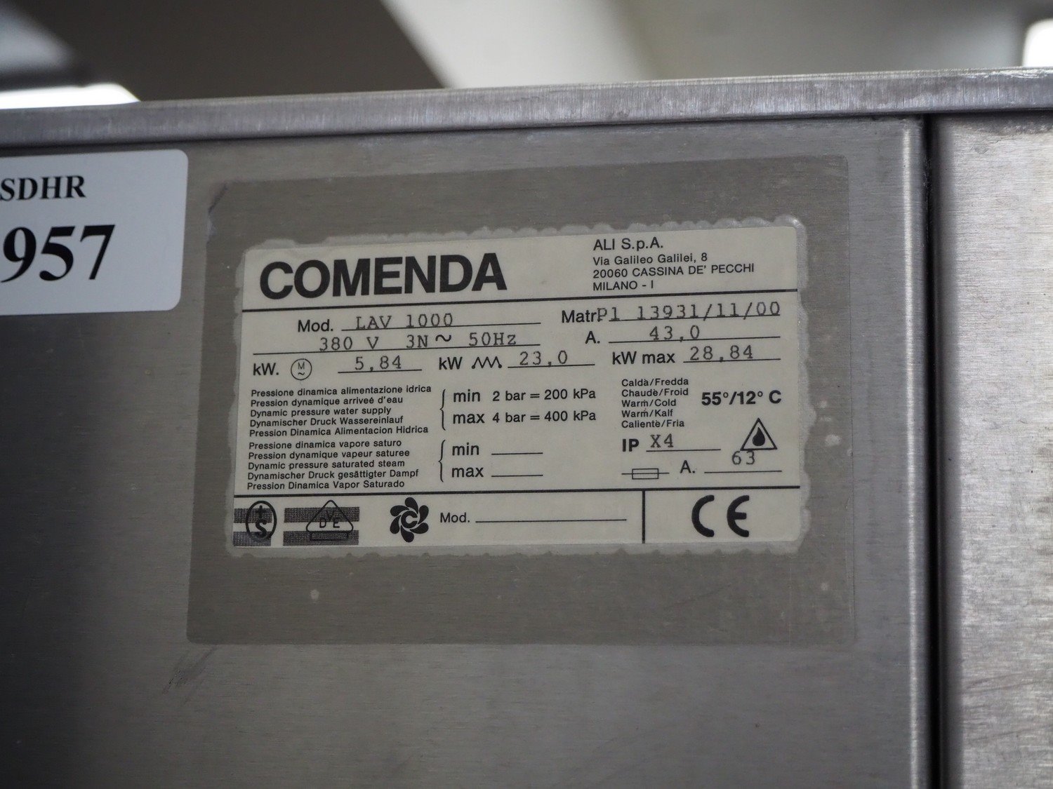 Comenda plate washer, type: LAV 1000, model: P1 13931/11/00, 380 V, 3 Ph, 50 Hz, 43 A, 28.84 kW, clearance: 385 mm x 35 mm, total dimensions: 2460 mm x 900 mm x 1950 mm. Kavel locatie: Kaldenkerkerweg 5, 5932 CS Tegelen, Nederland