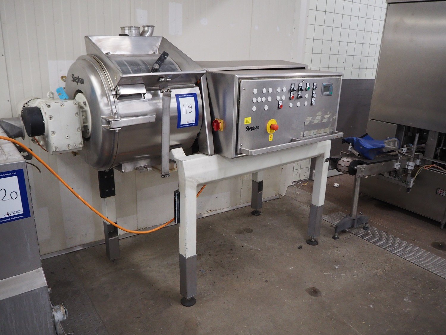 Stephan high speed cutter, type: TK 150, machine number: 714.539.01, year of construction: 1989, 380 V, 50 Hz, 14 kW, dimensions infeed: 350 mm x 220 mm, diameter drum: 560 mm, dimensions outfeed: 430 mm x 220 mm, total dimensions: 1880 mm x 1000 mm x 1730 mm. Missing knife. Kavel locatie: Kaldenkerkerweg 5, 5932 CS Tegelen, Nederland