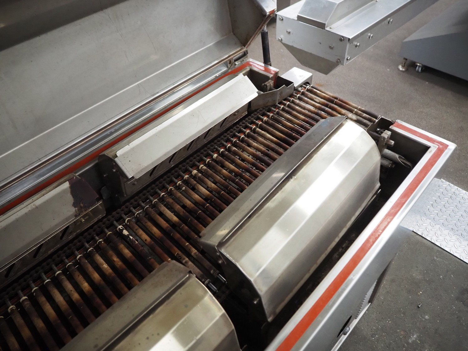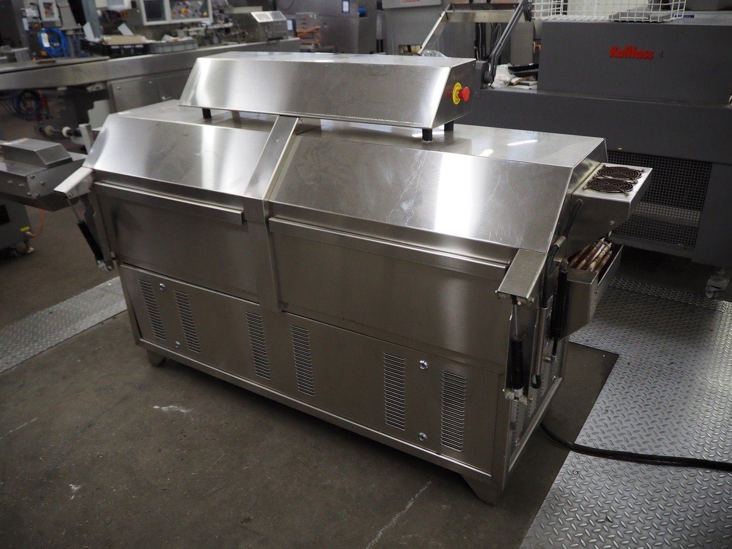 Cryovac shrink tunnel, model: CJ51T RH, serial number: 02073, year of construction: 1994, 380 V, 50 Hz, 23 A, 15 kW, plastic roller conveyor, roller width: 300 mm, clearance: 300 mm x 100 mm, total dimensions: 2100 mm x 900 mm x 1300 mm. Kavel locatie: Kaldenkerkerweg 5, 5932 CS Tegelen, Nederland