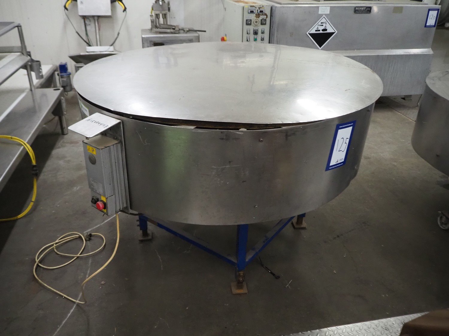 MSF-Technik turning table, type: FD 370 KR IP54, 230 V, 3 Ph, 50/60 Hz, 0-250 Hz, s/s top, steel frame, dimensions: ø 1500 mm x 1030 mm. Kavel locatie: Kaldenkerkerweg 5, 5932 CS Tegelen, Nederland