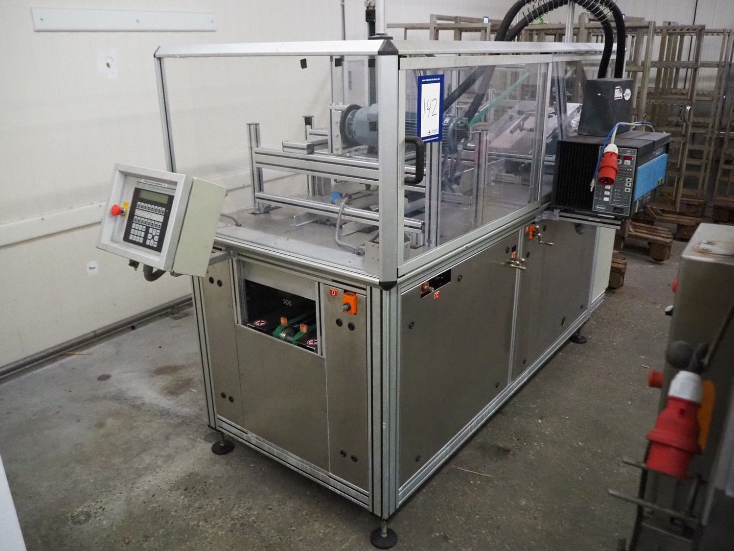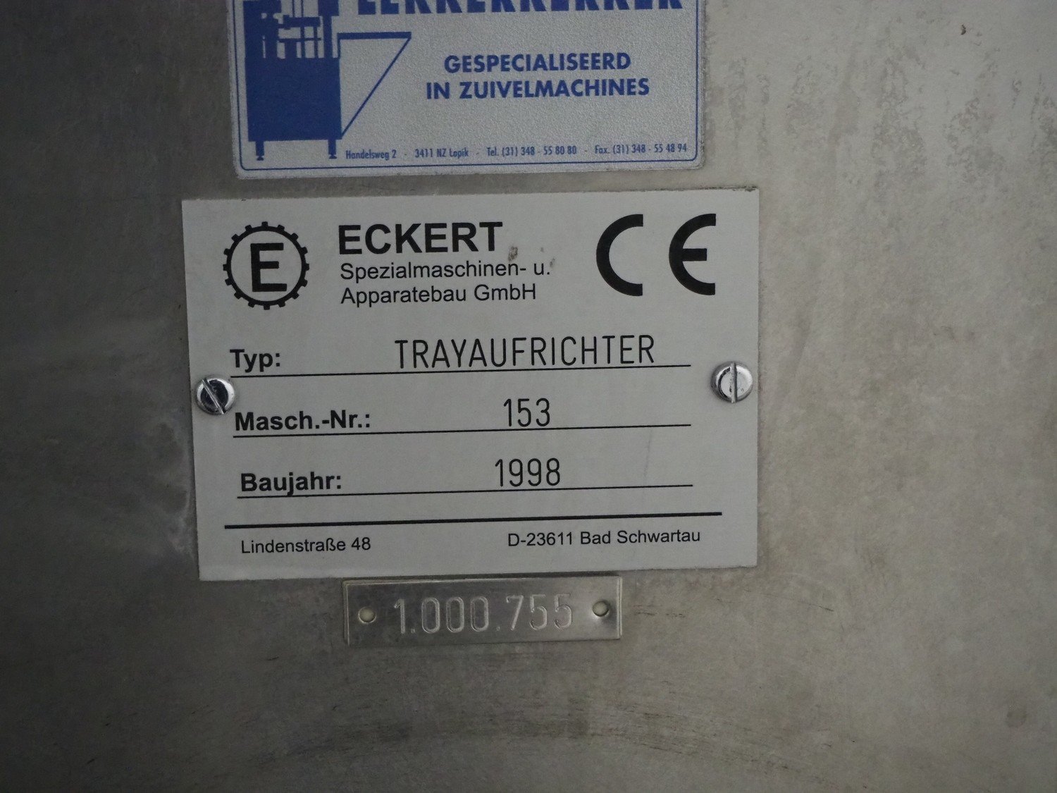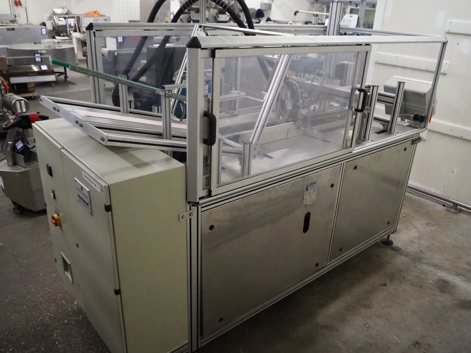 Eckert case erector, type: TRAYAUFRICHTER, machine number: 153, year of construction: 1998, plastic belt, belt width: 130 mm, 30 mm, Nordson glue unit, total dimensions: 3200 mm x 1500 mm x 2260 mm. Kavel locatie: Kaldenkerkerweg 5, 5932 CS Tegelen, Nederland