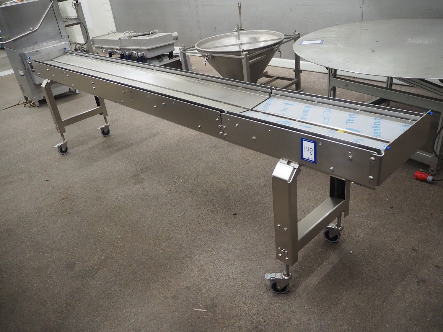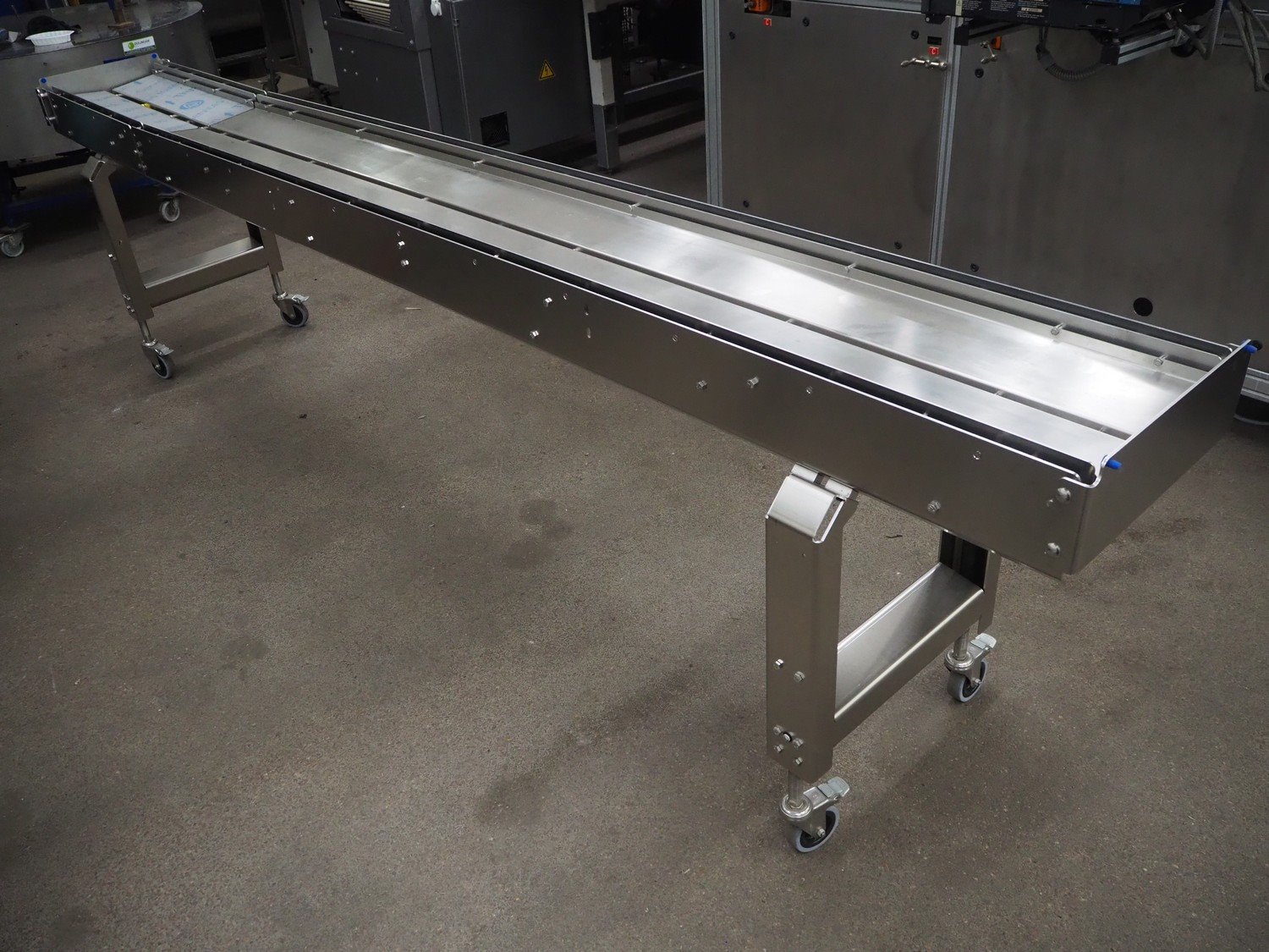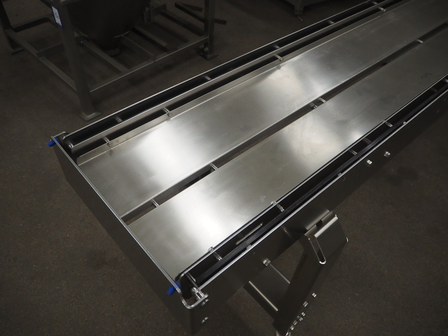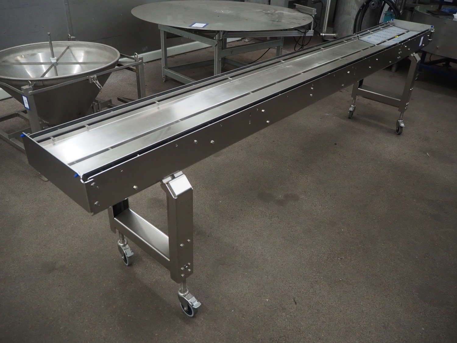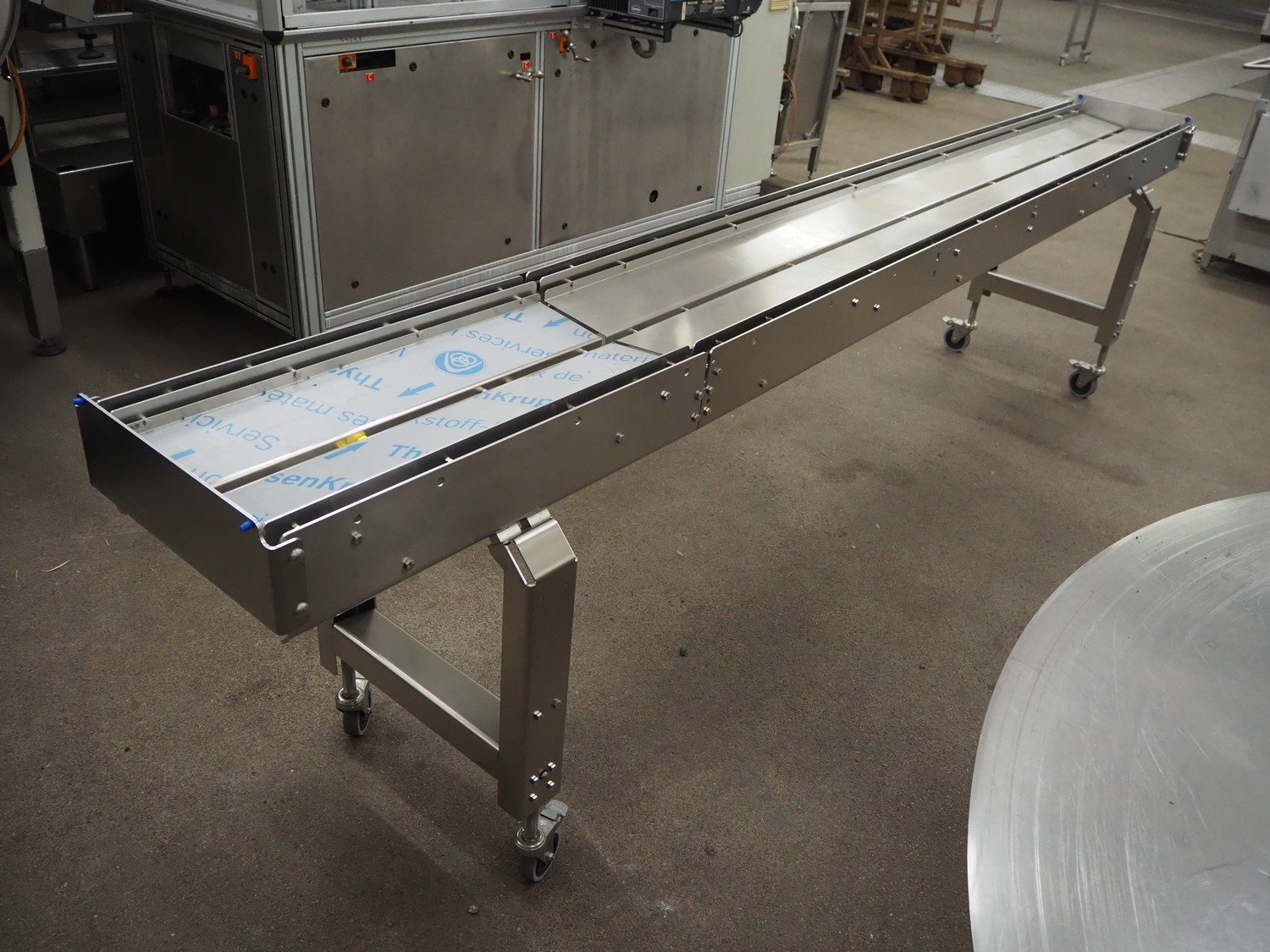 S/s mobile transport belt, dimensions: 3600 mm x 550 mm x 950 mm. Incomplete, belt and motor are missing. Kavel locatie: Kaldenkerkerweg 5, 5932 CS Tegelen, Nederland