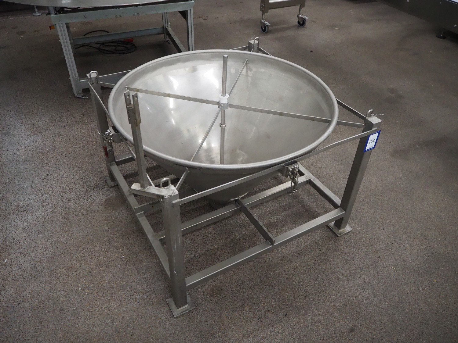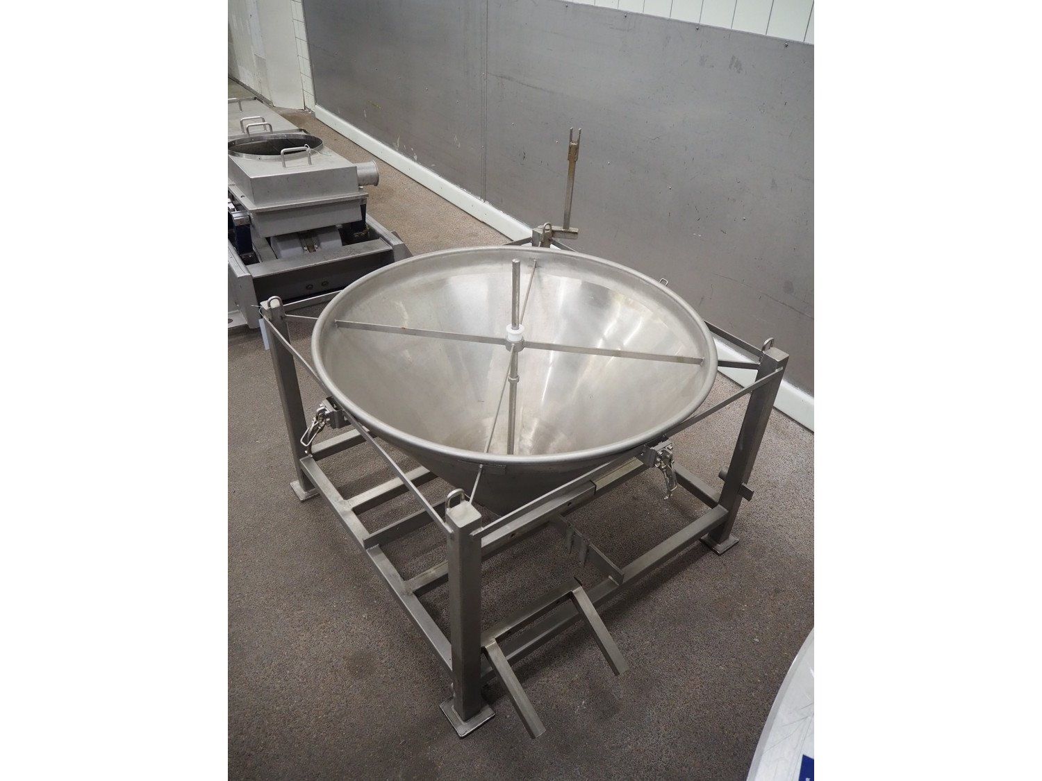 S/s infeed bunker, dimensions: 1000 mm x 1000 mm x 1050 mm. Kavel locatie: Kaldenkerkerweg 5, 5932 CS Tegelen, Nederland