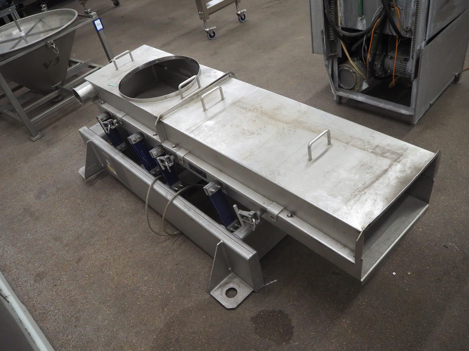 Key Technology Inc. vibrating gutter, model: 427281-1, serial number: 99-46401, dimensions: 2080 mm x 1000 mm x 700 mm. Kavel locatie: Kaldenkerkerweg 5, 5932 CS Tegelen, Nederland