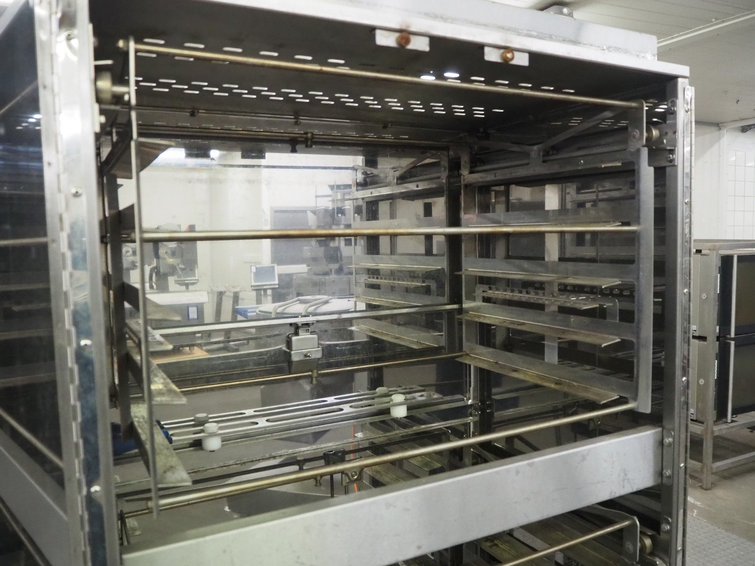 DEBAG loading trolley for oven, type: ZBL000164-E, serial number: P-00-0756, 10 floors, dimensions each floor: 620 mm x 355 mm, total dimensions: 765 mm x 530 mm x 1985 mm. Kavel locatie: Kaldenkerkerweg 5, 5932 CS Tegelen, Nederland