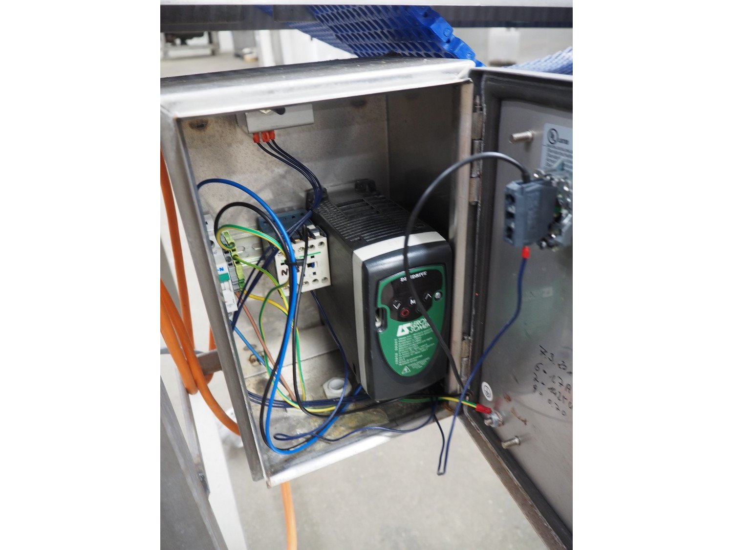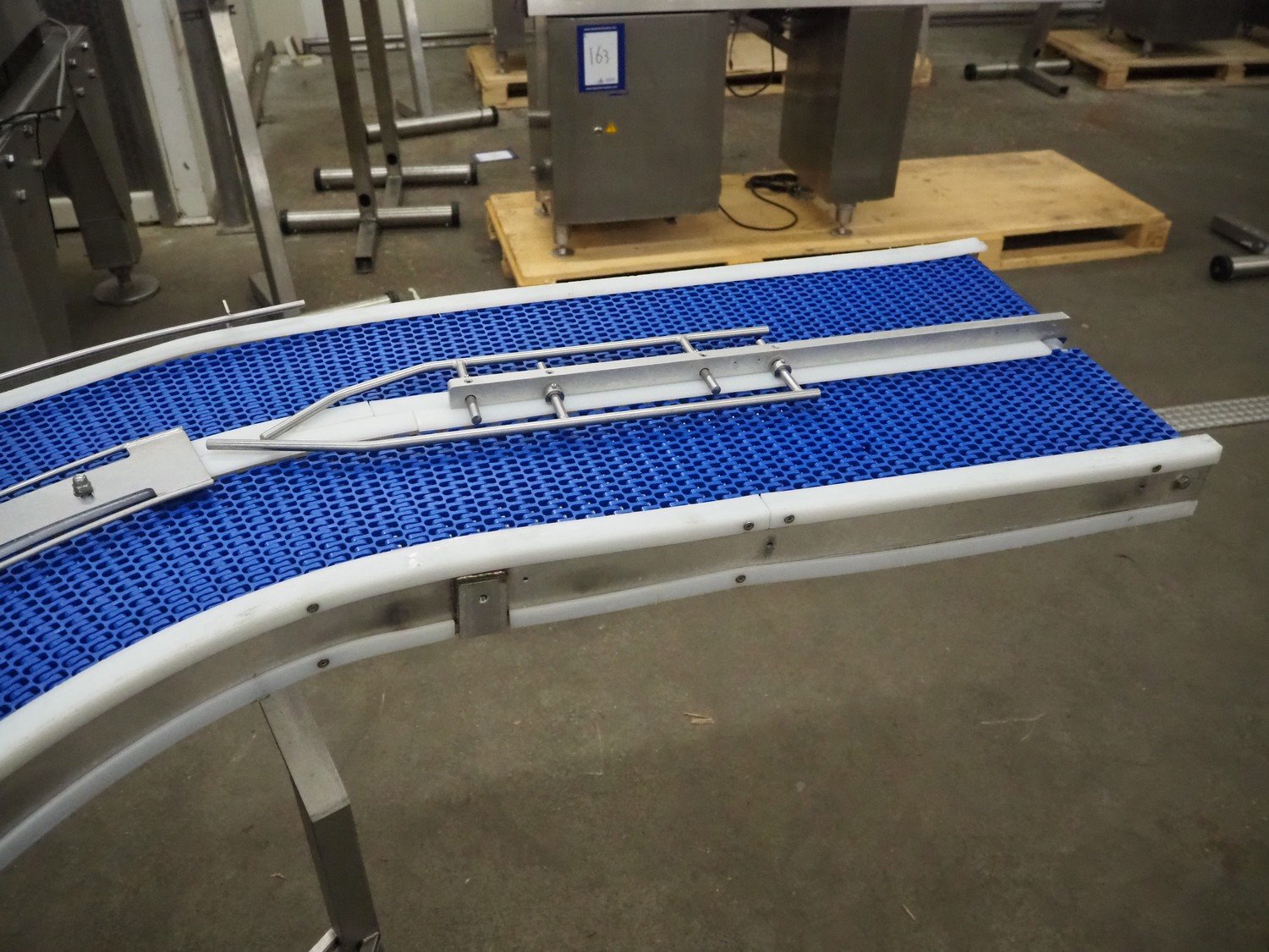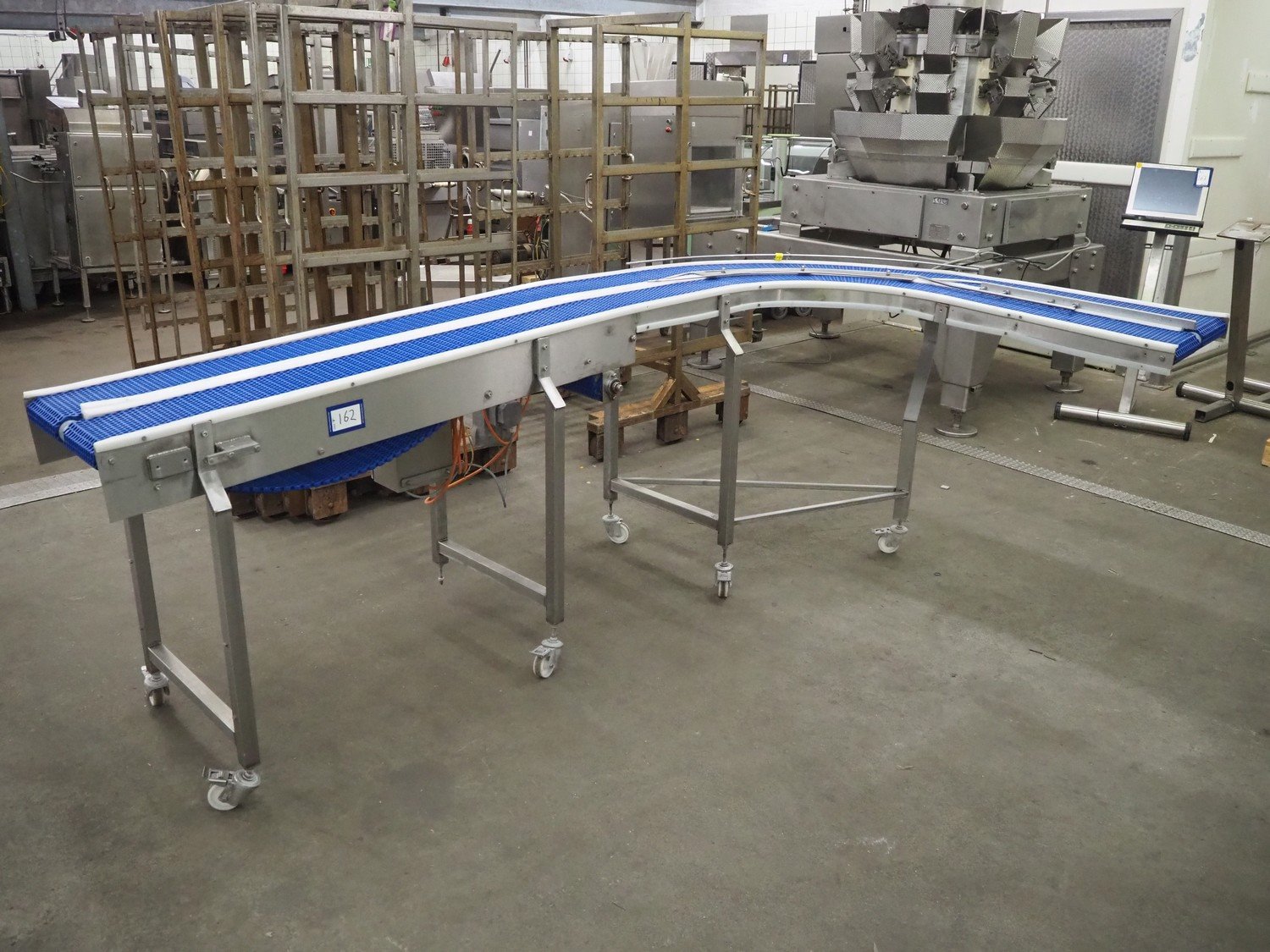 Mobile transport belt, s/s frame, plastic mesh belt, belt width: (2x) 200 mm, total dimensions: 3000 mm x 1700 mm x 1120 mm. Kavel locatie: Kaldenkerkerweg 5, 5932 CS Tegelen, Nederland