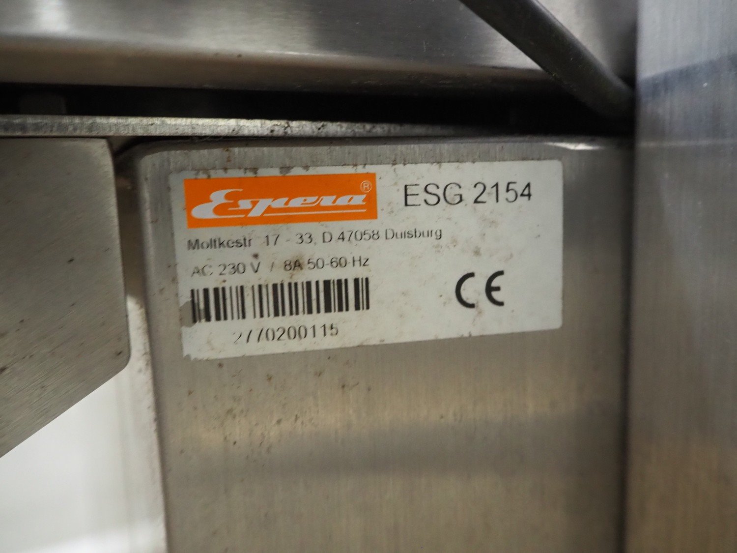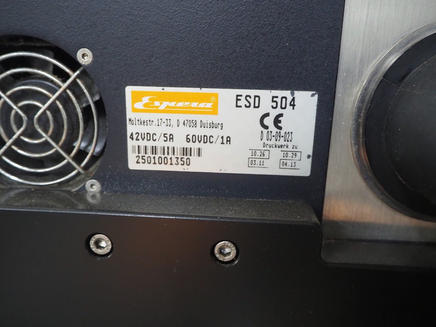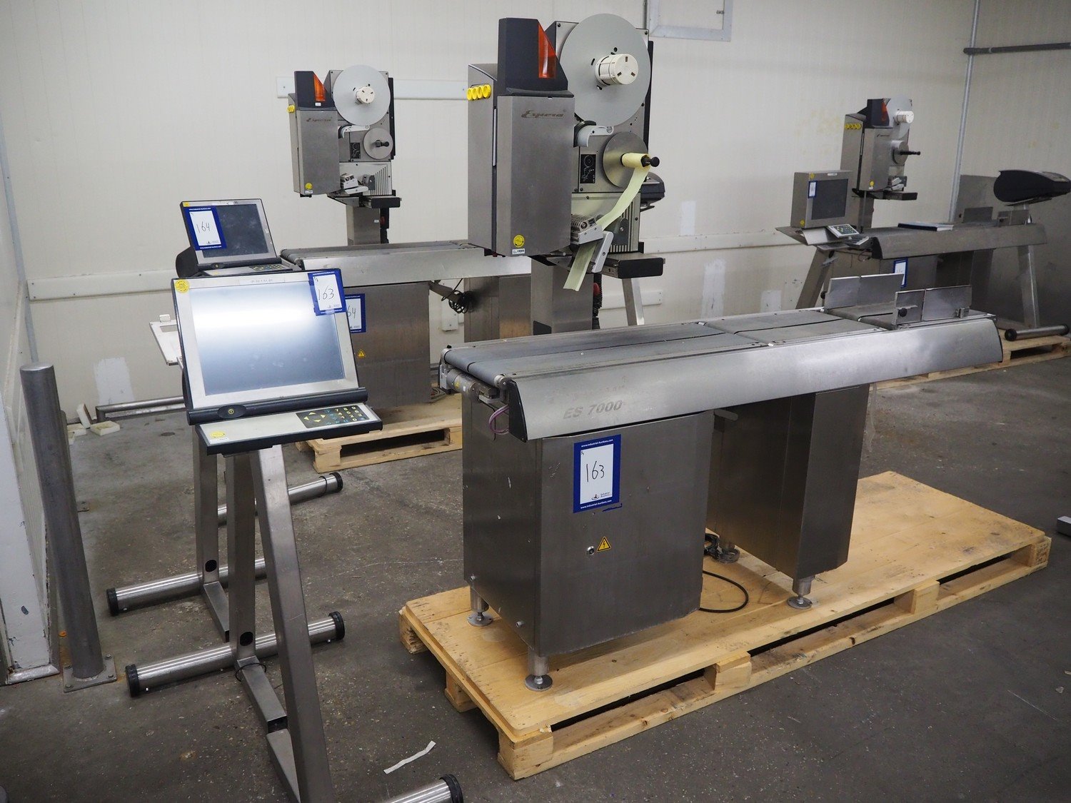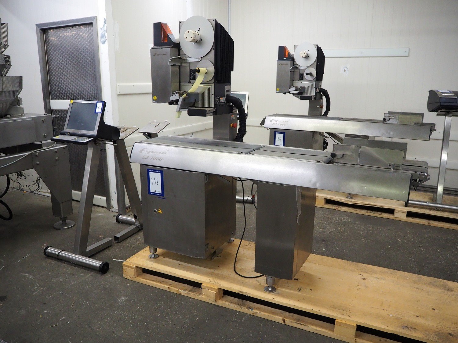 Espera labelling machine, model: ES 7000, model labeller: ESD 504, plastic belt, belt with: (2x) 145 mm, total dimensions: 2000 mm x 750 mm x 1800 mm. Including Espera control panel, model: ESC 964 and 2 frames for control panel, model: ESV 104, dimensions: (2x) 680 mm x 470 mm x 1100 mm and (1x) 680 mm x 470 mm x 1370 mm. Kavel locatie: Kaldenkerkerweg 5, 5932 CS Tegelen, Nederland
