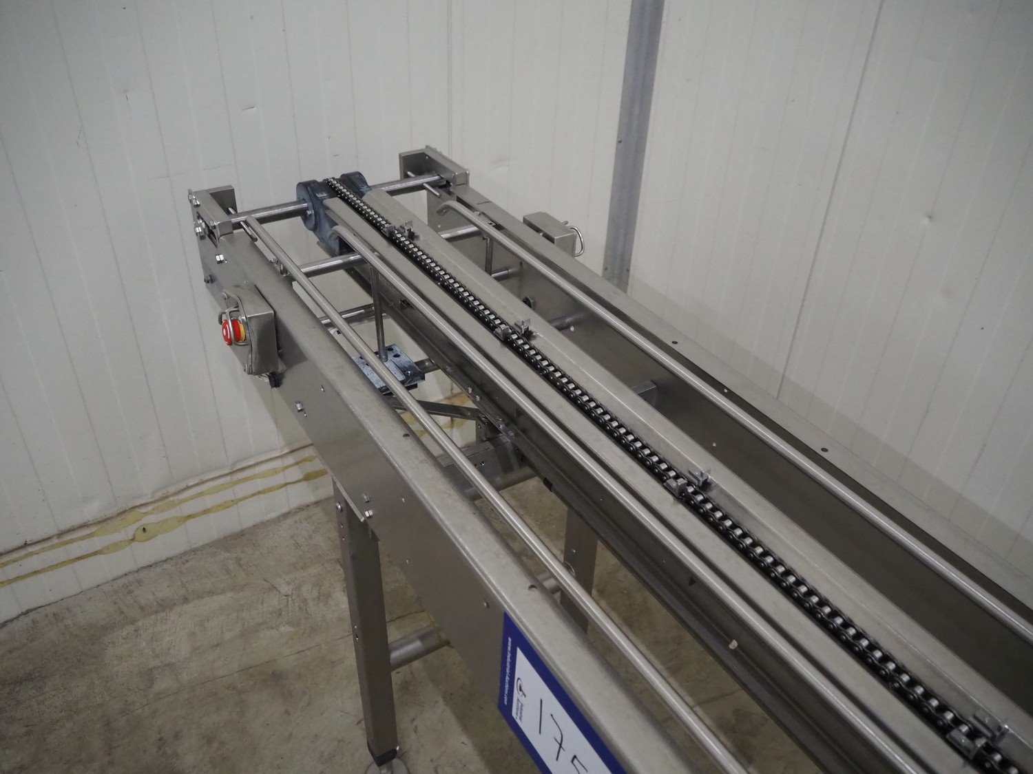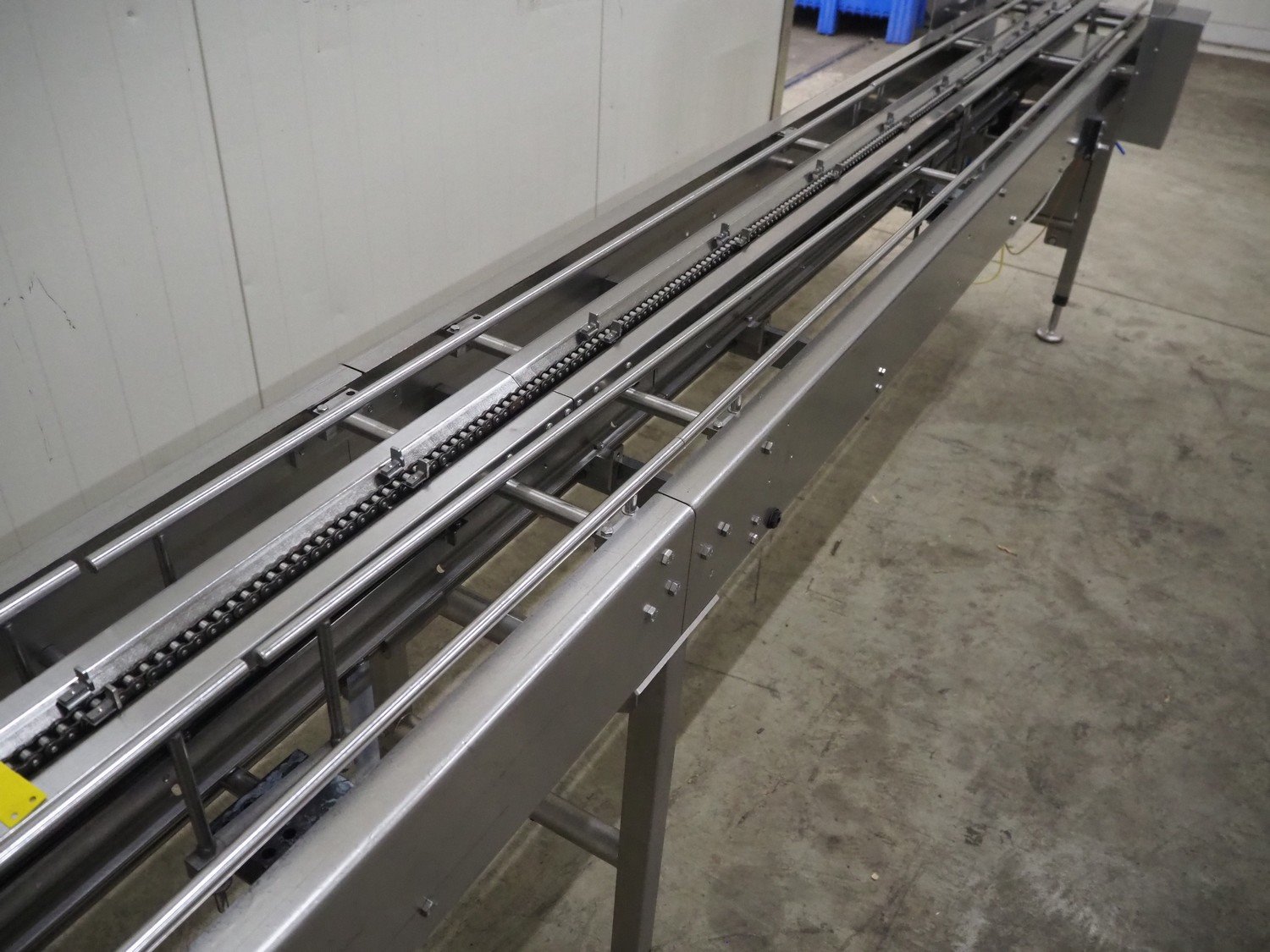 Transport belt, chain belt, belt width: 20 mm, working width: 160 mm, total dimensions: 4950 mm x 700 mm x 1200 mm. Kavel locatie: Kaldenkerkerweg 5, 5932 CS Tegelen, Nederland