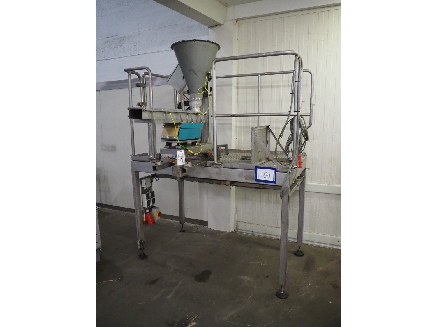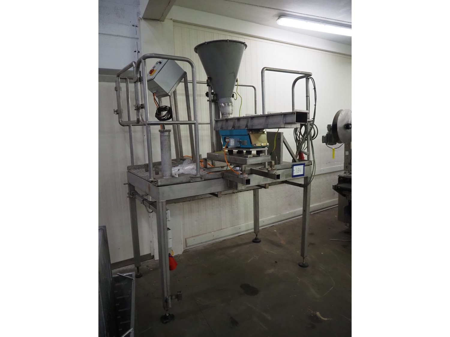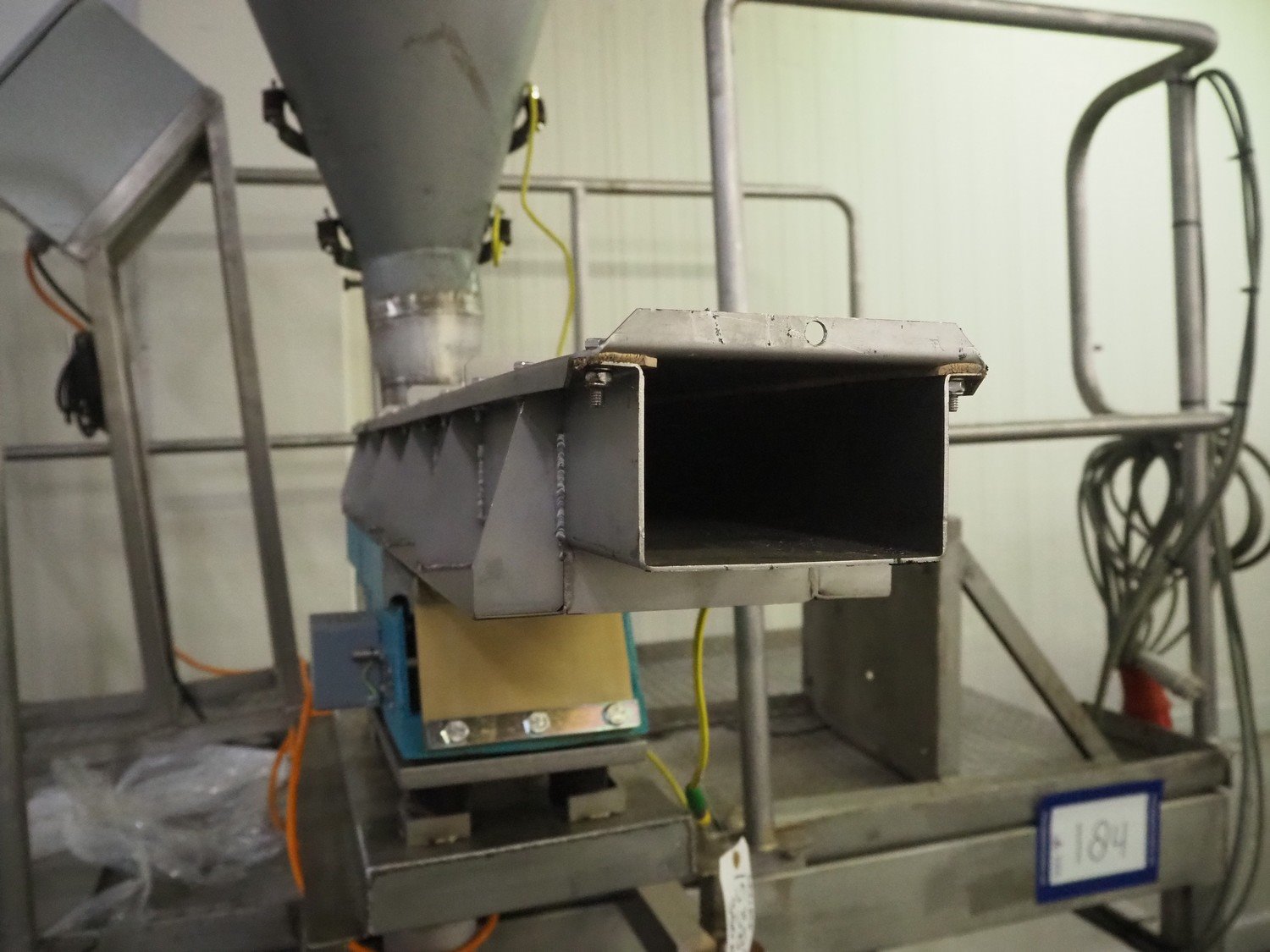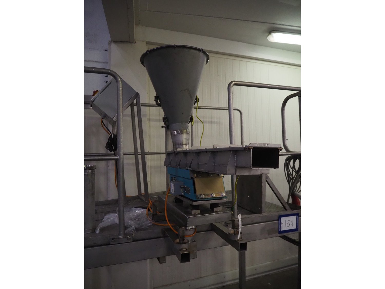 S/s platform with Spaleck vibrating gutter, type: SFDU 120-70-1000, fabrication number: 153316, year of construction: 2006, gutter width: 120 mm, working height platform: 1220 mm, total dimensions: 1800 mm x 1800 mm x 2400 mm. Kavel locatie: Kaldenkerkerweg 5, 5932 CS Tegelen, Nederland