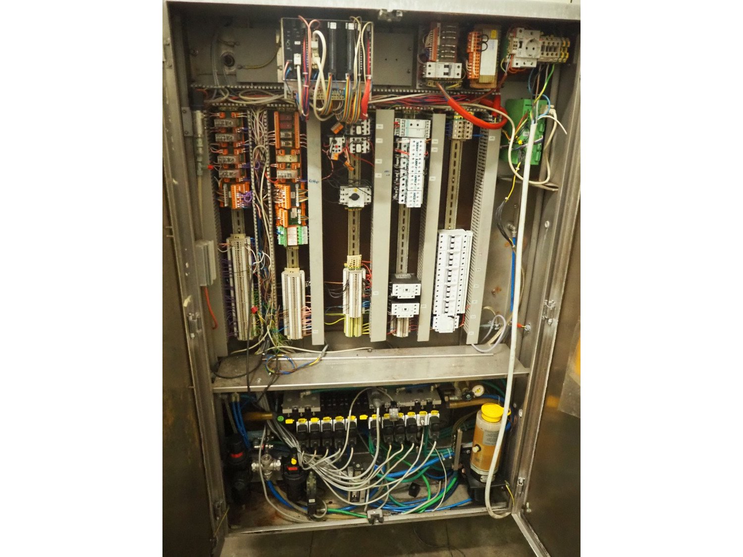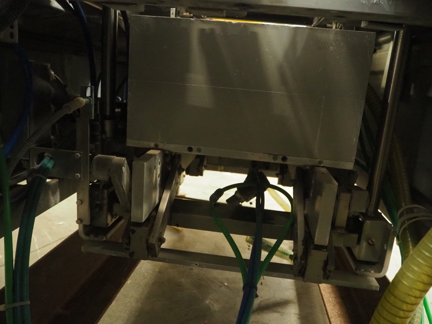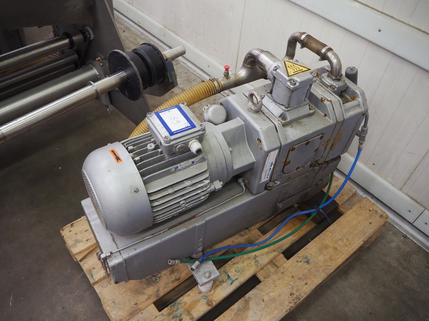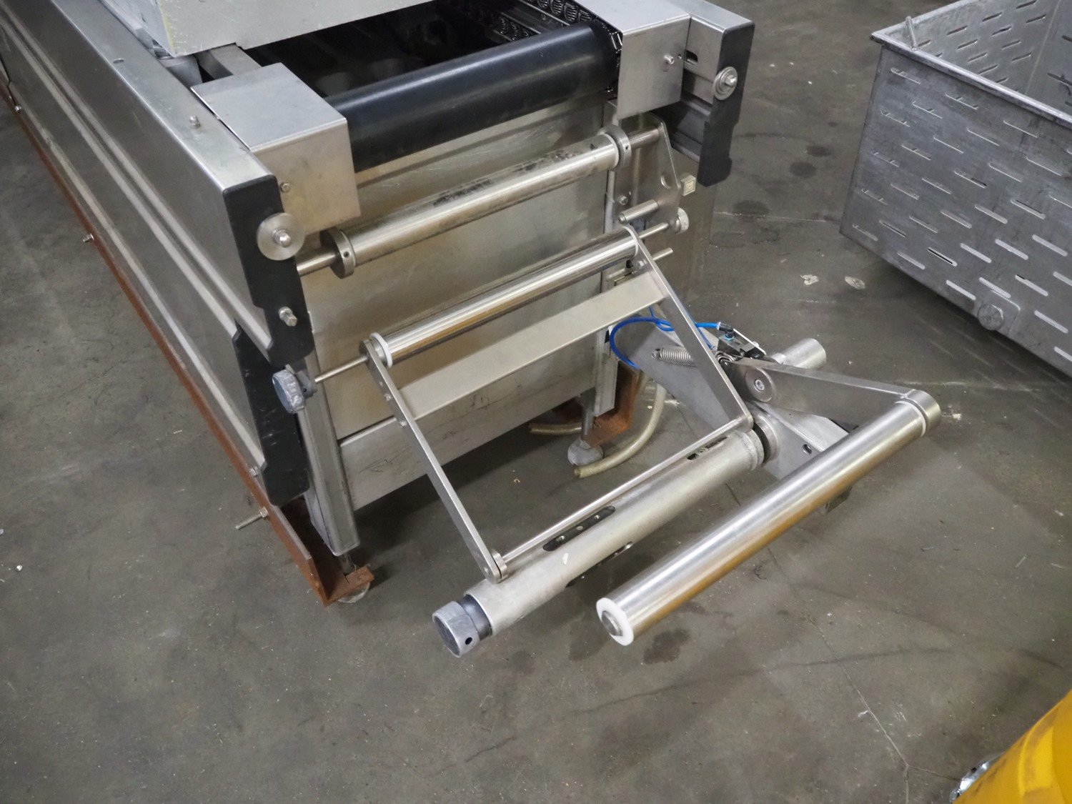 Multivac thermoformer, type: R530, dimensions dye: (8x) 78 mm x 325 mm, plastic belt, belt width: 378 mm, total dimensions: 7660 mm x 1040 mm x 1870 mm. Including Busch vacuum pump, dimensions pump: 1100 mm x 370 mm x 7200 mm. Kavel locatie: Kaldenkerkerweg 5, 5932 CS Tegelen, Nederland