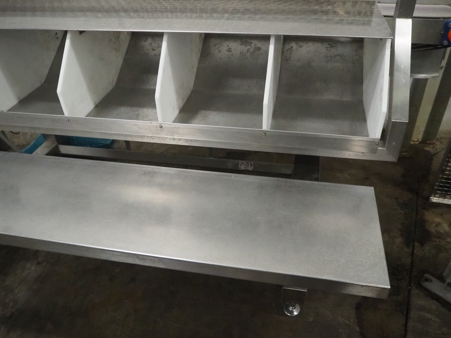 Sorting station with 6 rejectors, plastic belt, belt width: 200 mm, total dimensions: 2750 mm x 1600 mm x 1450 mm. Kavel locatie: Kaldenkerkerweg 5, 5932 CS Tegelen, Nederland