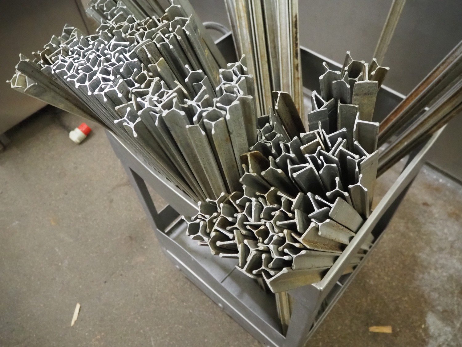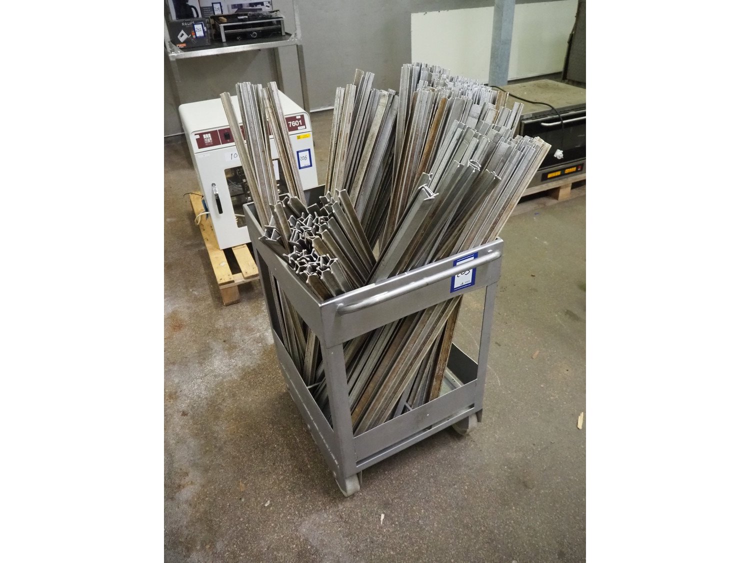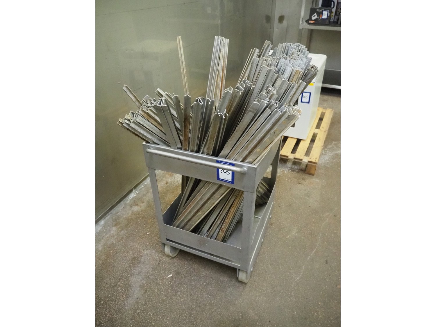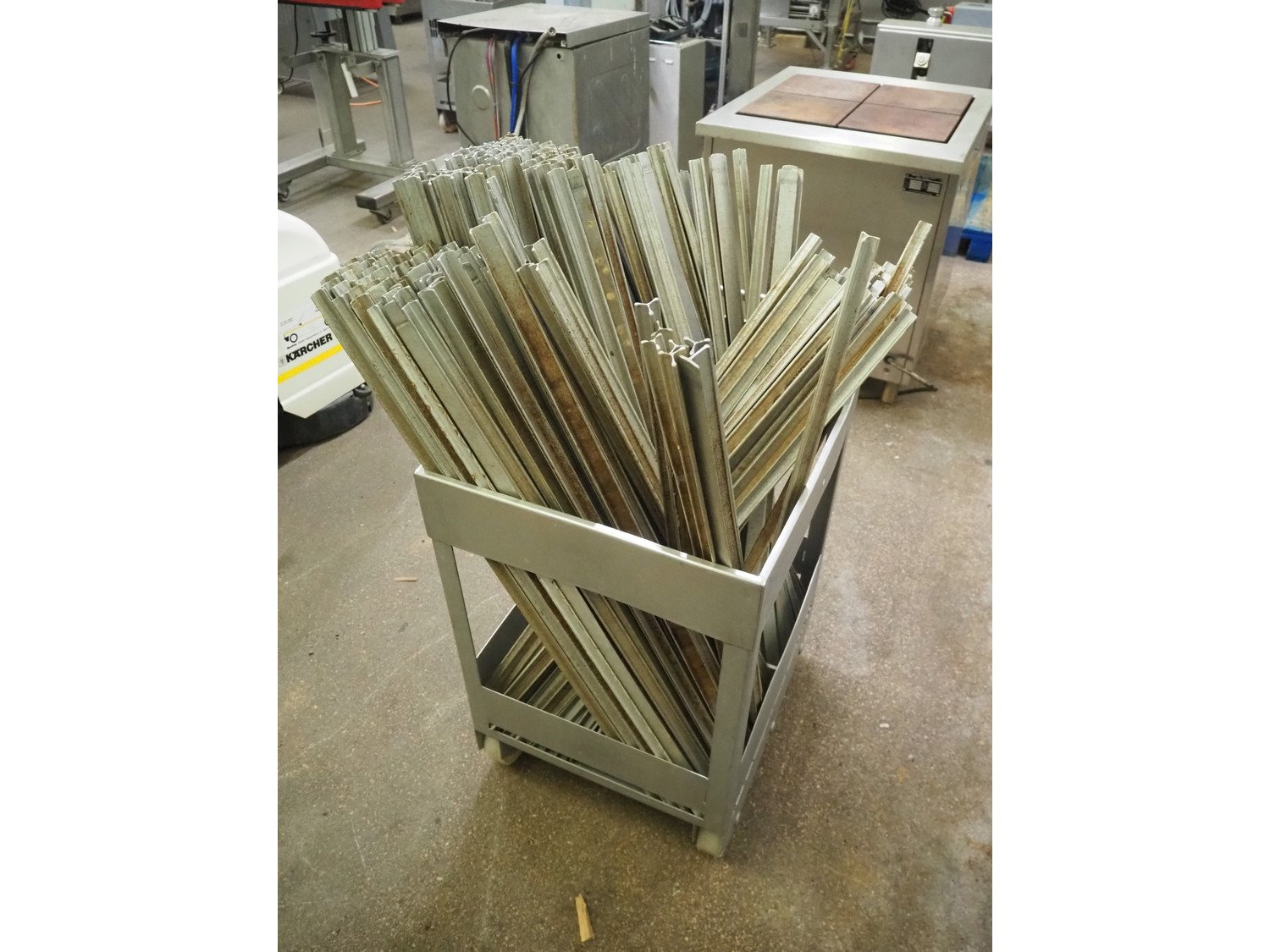 S/s trolley with approximately 300 y shaped smoke sticks, length smoke stick: 1000 mm, total dimensions: 700 mm x 700 mm x 1100 mm. Kavel locatie: Kaldenkerkerweg 5, 5932 CS Tegelen, Nederland