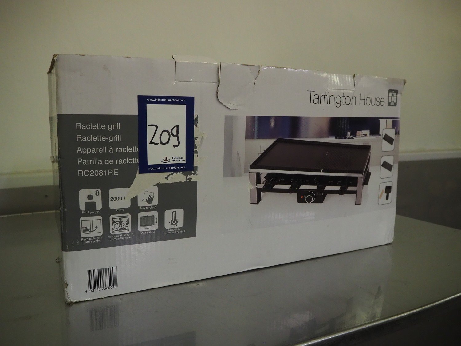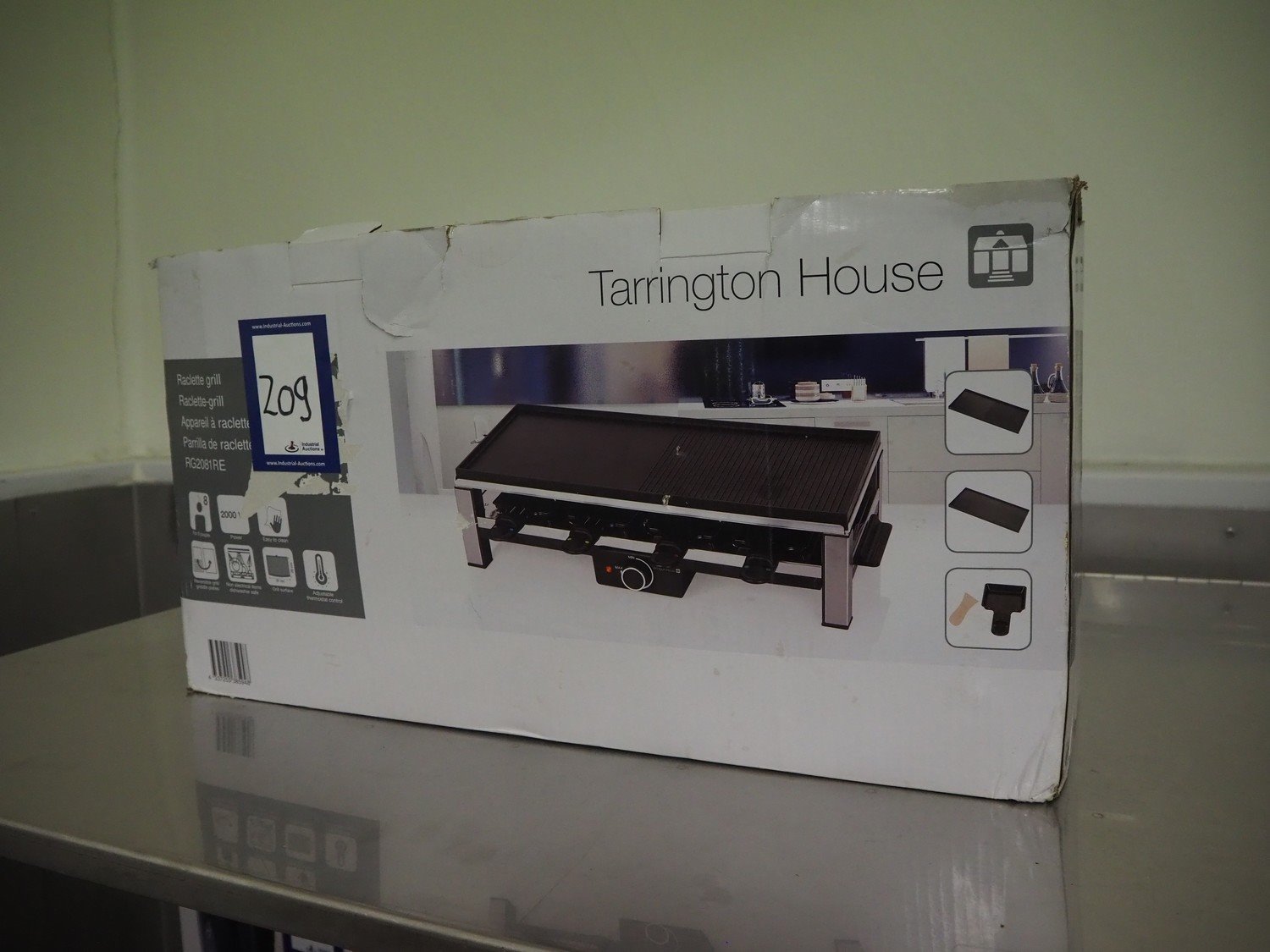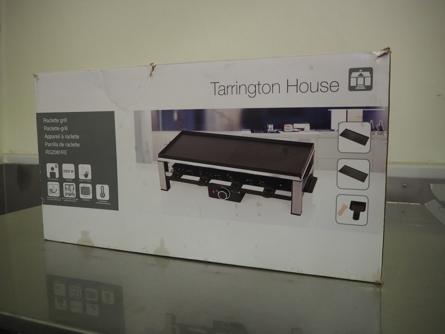 Tarrington House raclette grill, type: RG2081 RE, 230 V, 50 Hz, 2000 W, dimensions box: 200 mm x 620 mm x 320 mm. Kavel locatie: Kaldenkerkerweg 5, 5932 CS Tegelen, Nederland