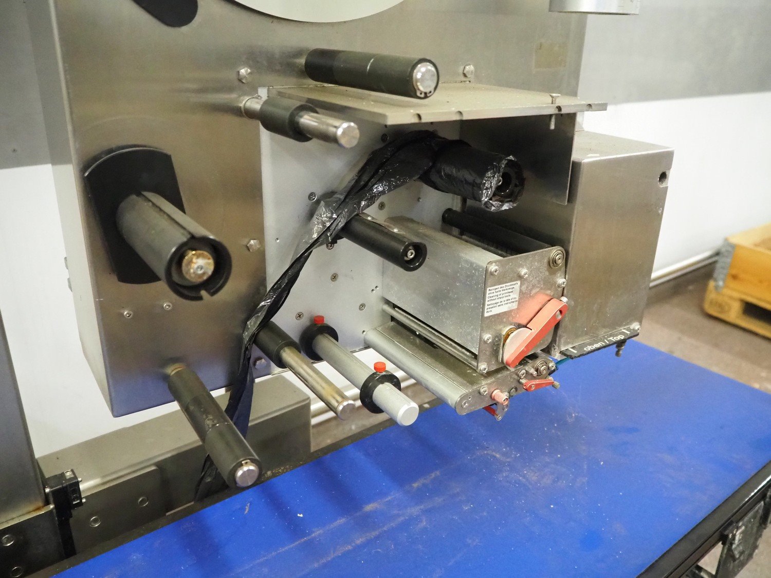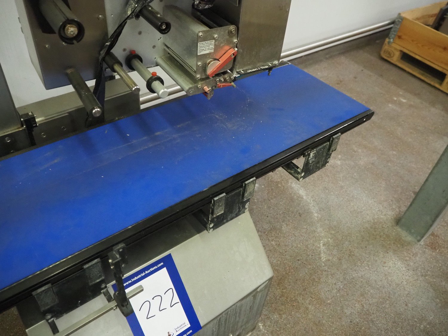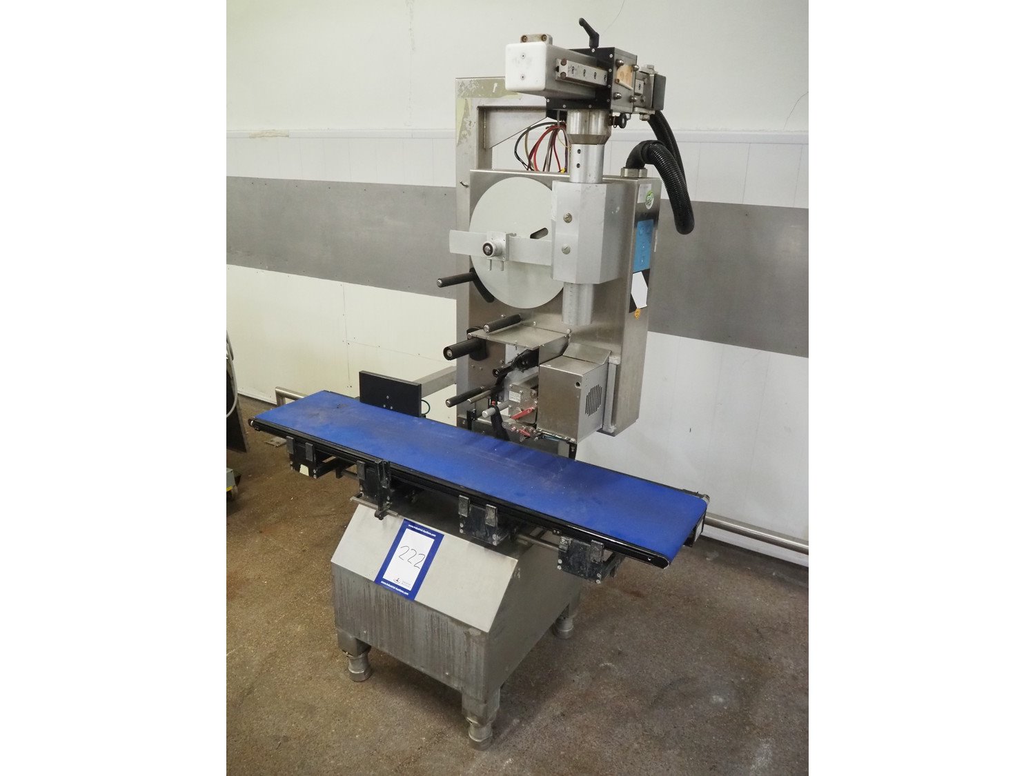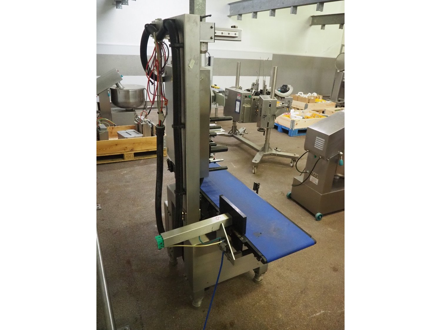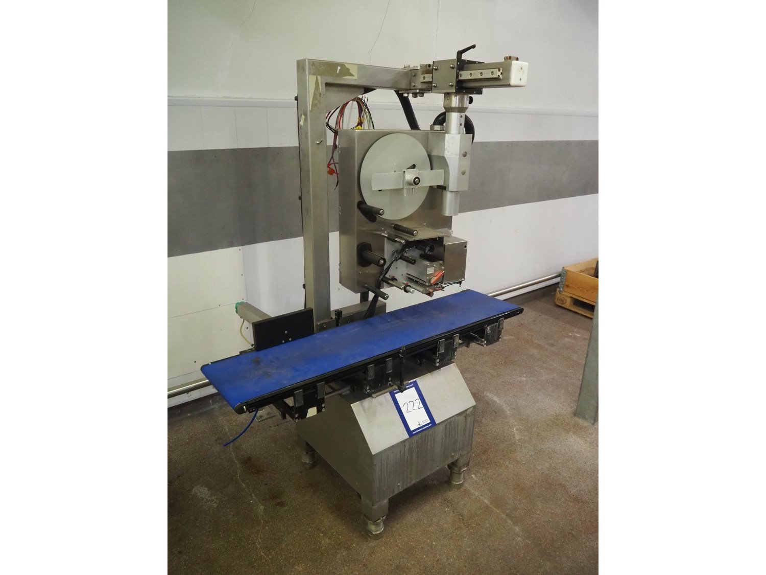 Wipotec labelling machine, serial number: 0003733, year of production: 2006, plastic belt, belt width: 300 mm, total dimensions: 1400 mm x 650 mm x 1800 mm. Kavel locatie: Kaldenkerkerweg 5, 5932 CS Tegelen, Nederland