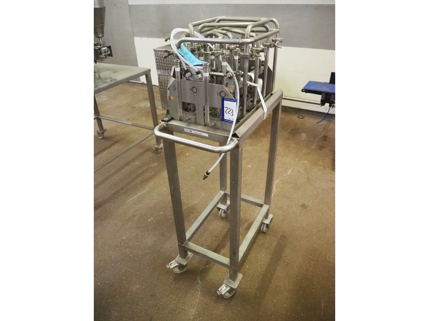Mobile frame with filling head, 8x4 filling heads, dimensions: 740 mm x 400 mm x 1500 mm. Kavel locatie: Kaldenkerkerweg 5, 5932 CS Tegelen, Nederland