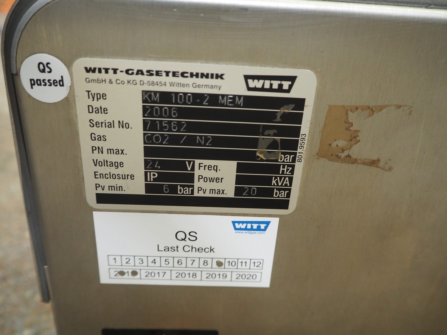 Witt-Gaserechnik gas mixing station, type: KM 100-2 MEM, serial number: 71562, year of construction: 2006, gas: CO2, dimensions: 340 mm x 340 mm x 220 mm. Kavel locatie: Kaldenkerkerweg 5, 5932 CS Tegelen, Nederland