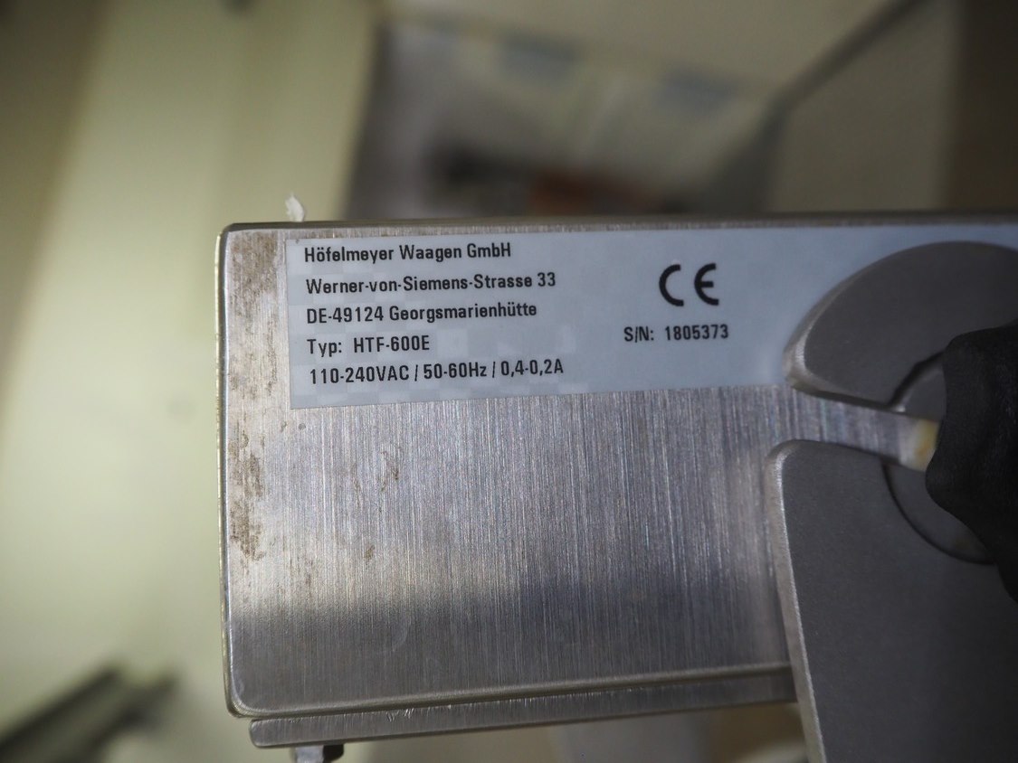 Höfelmeyer indicator for weighing scale, model: HKW2843HE-C7.55-A-3.75-S, serial number: 6113276, year of construction: 2018, 400 V, 50 Hz, 1.55 kVA, weighing range: 150 gram - 2500 gram, dimensions: 800 mm x 870 mm x 1850 mm. Kavel locatie: Kaldenkerkerweg 5, 5932 CS Tegelen, Nederland