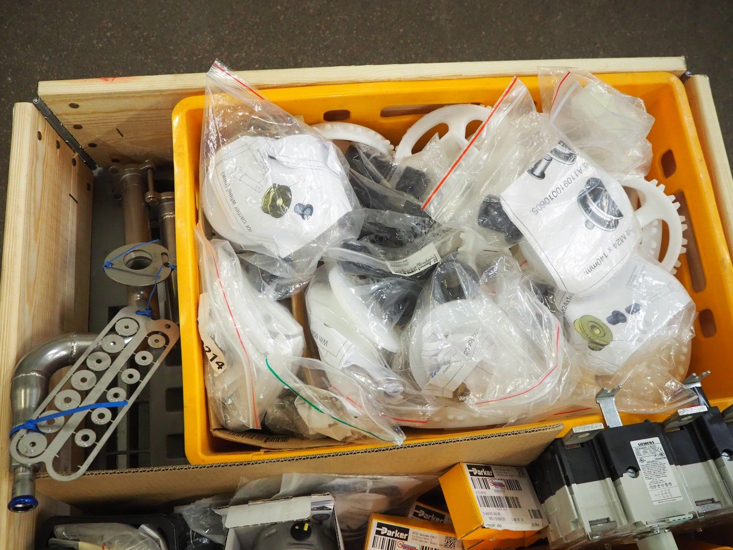 Pallet box with parts for Brüel crate washer. Kavel locatie: Kaldenkerkerweg 5, 5932 CS Tegelen, Nederland