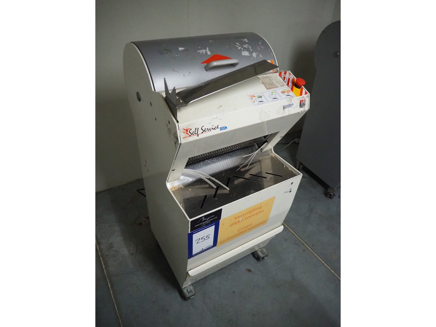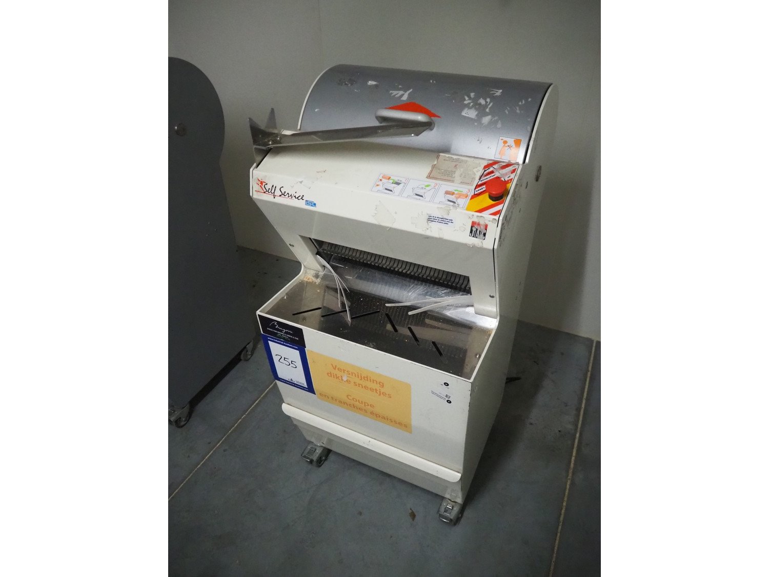 Jac mobile bread slicer, model: SLD 450/11, machine number: 11/3433/02, year of construction: 3-08-2011, 400 V, 3 Ph, 50 Hz, 1.8 A, 0.49 kW, weight: 180 kg, working width: 440 mm, 40 knifes, distance between knifes: 11 mm, total dimensions: 700 mm x 600 mm x 1300 mm. Kavel locatie: Kaldenkerkerweg 5, 5932 CS Tegelen, Nederland