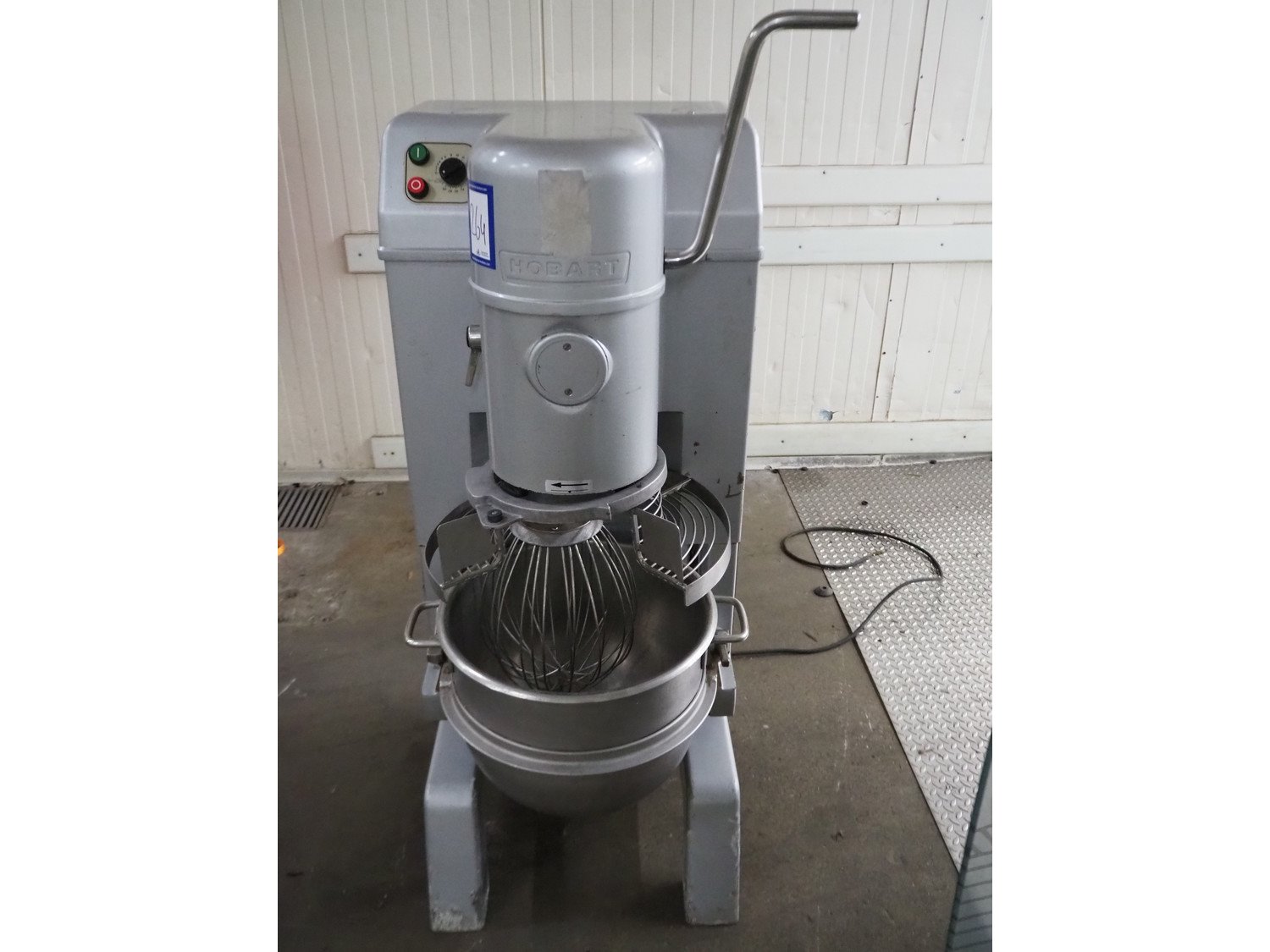 Hobart mixer, model: NCM40, serial number: 97130702, 400 V, 3 Ph, 50 Hz, 2.6 A, 1.1 kW, volume: 40 liter, total dimensions: 700 mm x 560 mm x 1460 mm. Including whisk and mixing arm. Kavel locatie: Kaldenkerkerweg 5, 5932 CS Tegelen, Nederland