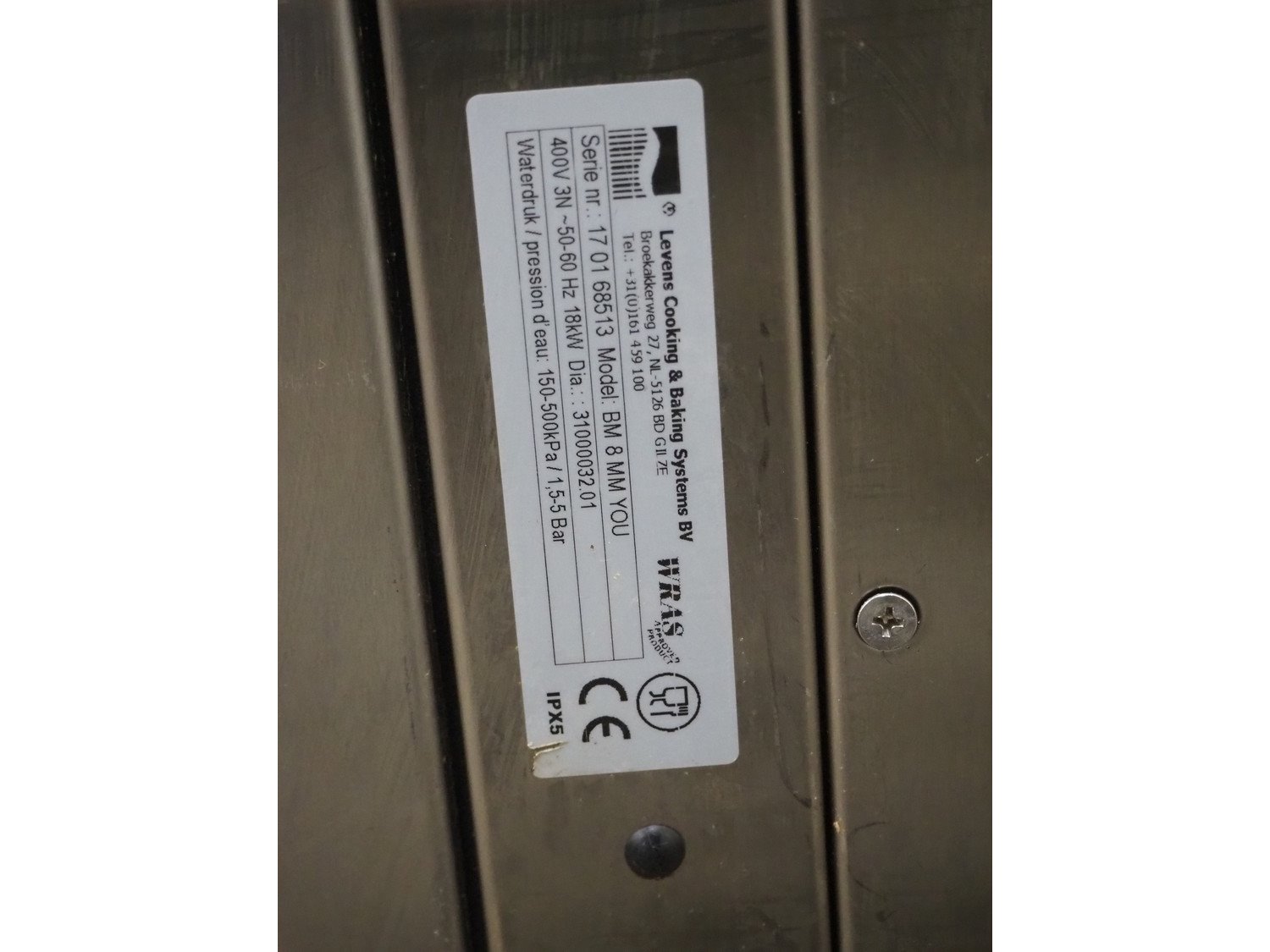 Leventi combi steamer, type: BM 8 MM YOU, serial number: 17 01 68513 , 400 V, 3 Ph, 50/60 Hz, 18 kW, 8 floors, dimensions each floor: 600 mm x 400 mm, total dimensions: 930 mm x 880 mm x 2080 mm. Kavel locatie: Kaldenkerkerweg 5, 5932 CS Tegelen, Nederland