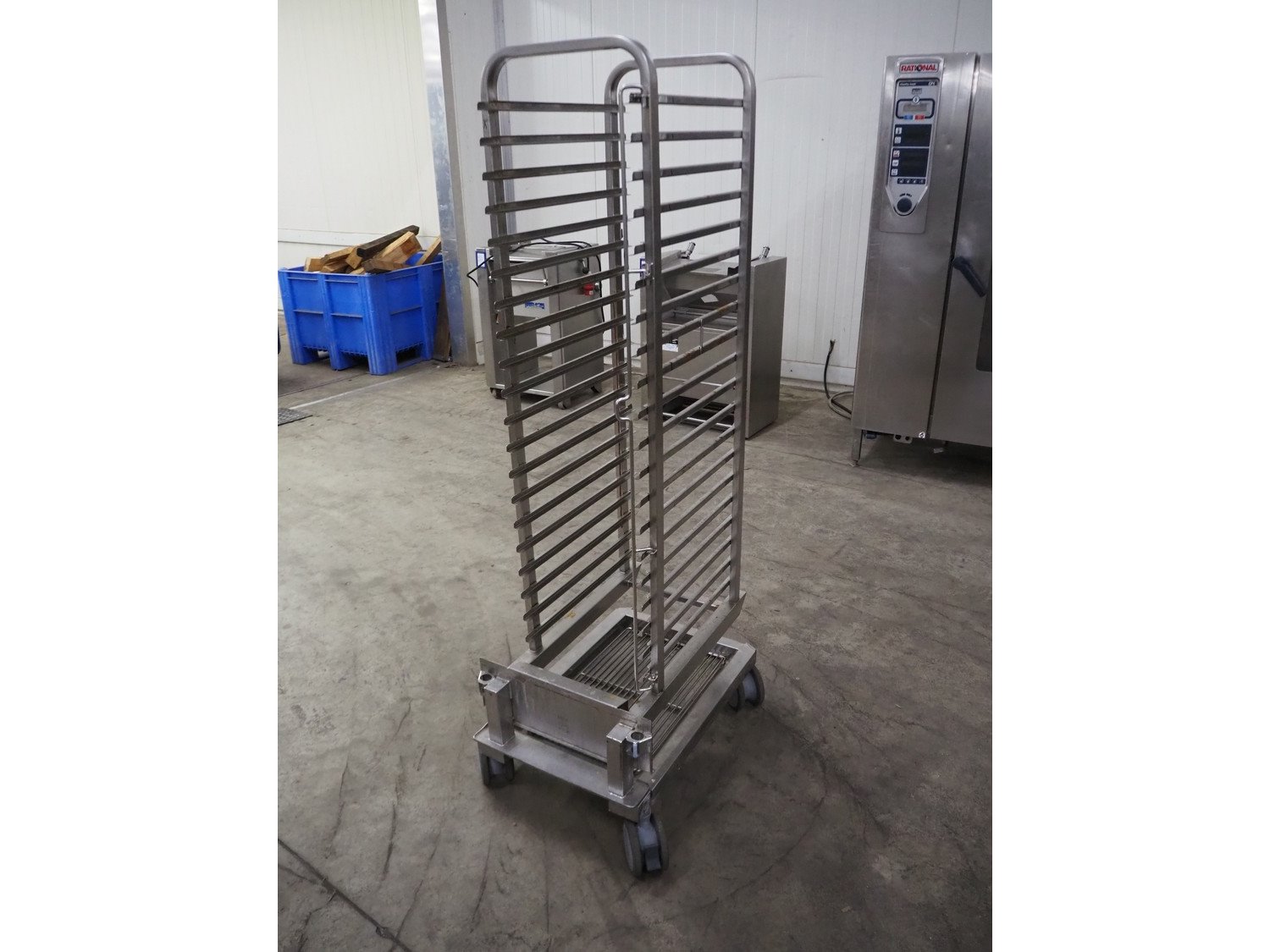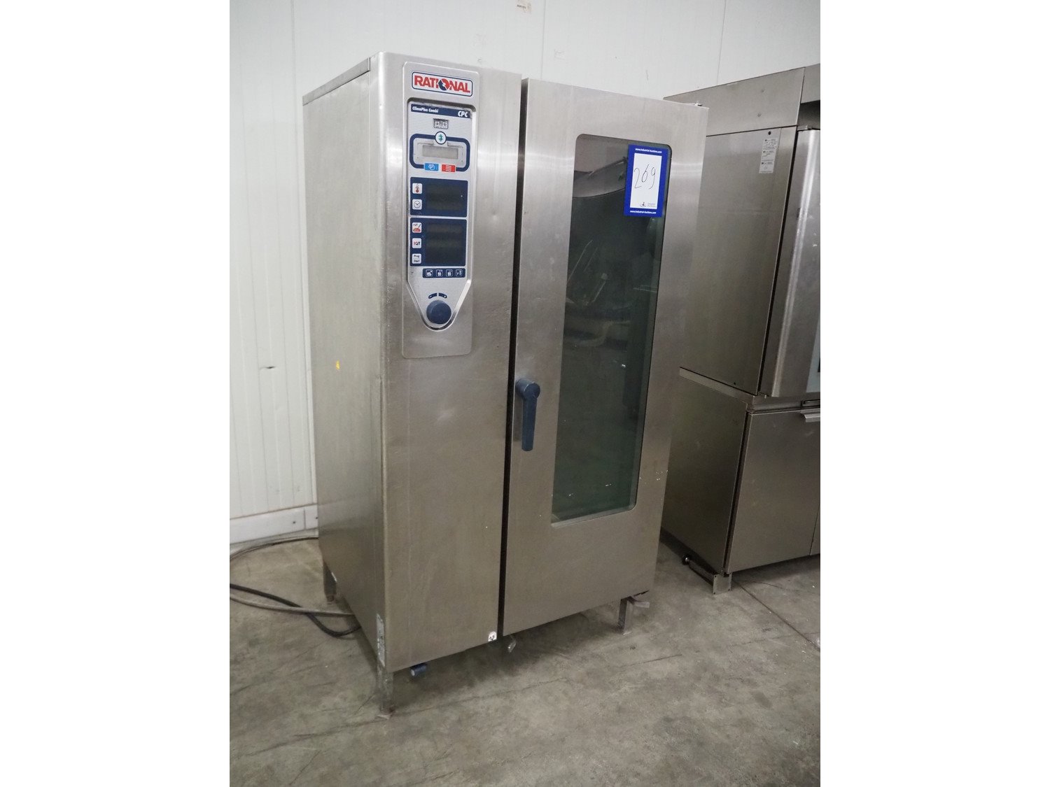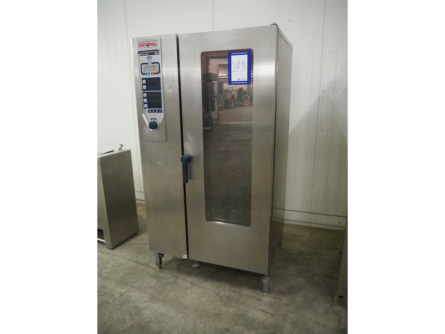 Rational combi steamer, dimensions: 1000 mm x 900 mm x 1900 mm. Including s/s trolleys, 20 floors, dimensions each floor: 530 mm x 335 mm. Kavel locatie: Kaldenkerkerweg 5, 5932 CS Tegelen, Nederland