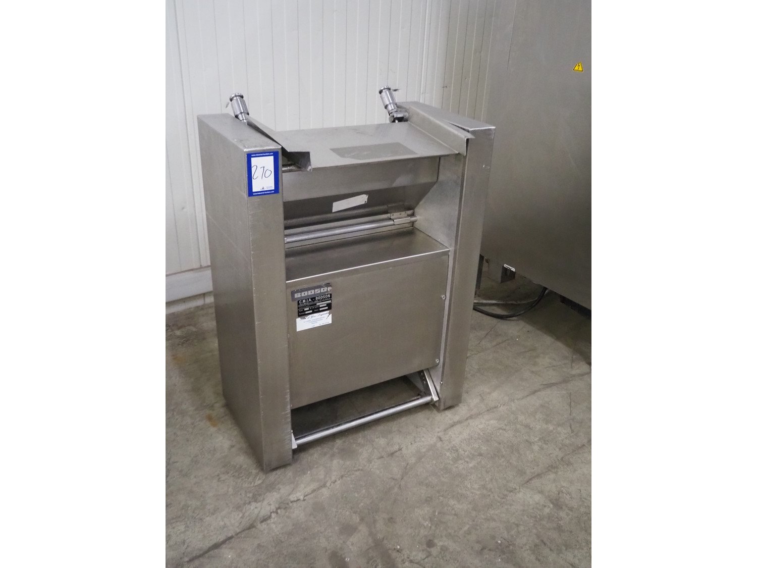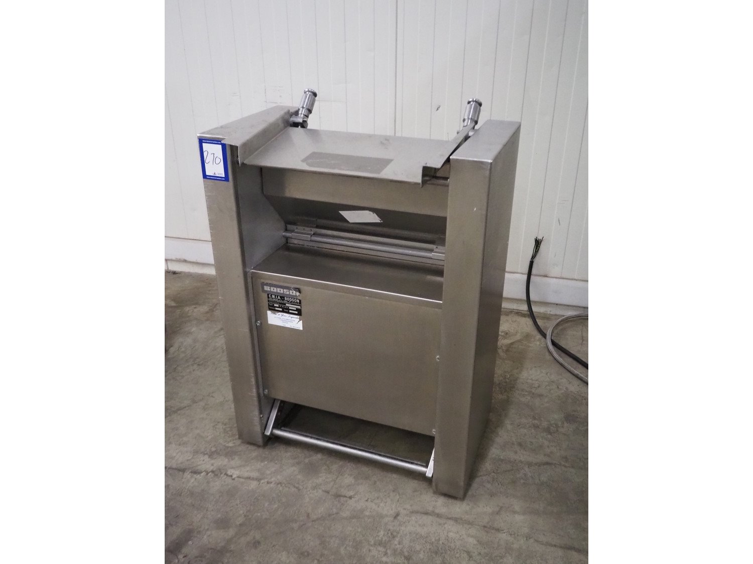 C.M.I.A. - BODSON mobile skinning machine, type: D112, serial number: 327, year of construction: 11-06-82, 220/380 V, working width: 440 mm, total dimensions: 710 mm x 450 mm x 1000 mm. Incomplete. Kavel locatie: Kaldenkerkerweg 5, 5932 CS Tegelen, Nederland