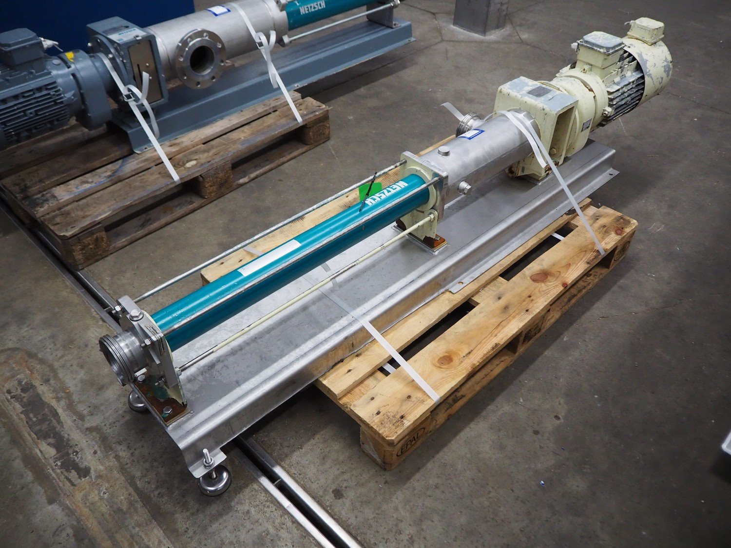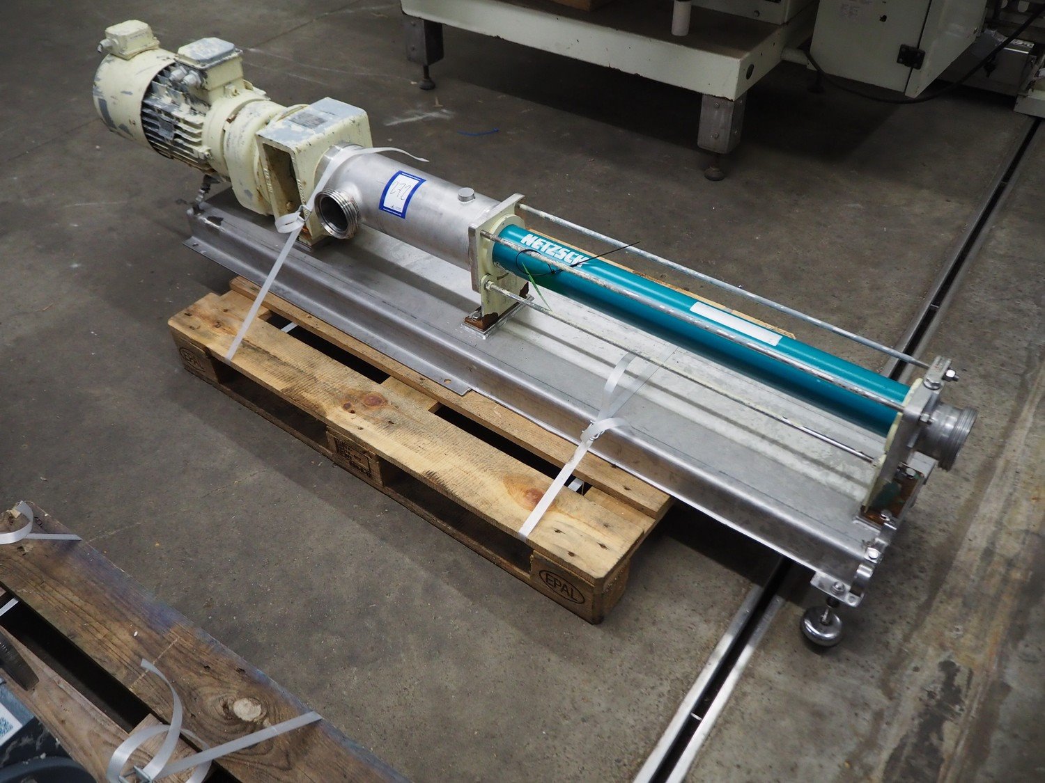 Netzsch progressing cavity pump, type: NM0383Y04SZ43, serial number: 386990, year of construction: 2007, capacity: 400-1700-3000 l/h, dimensions: 220 mm x 350 mm x 450 mm. Kavel locatie: Kaldenkerkerweg 5, 5932 CS Tegelen, Nederland