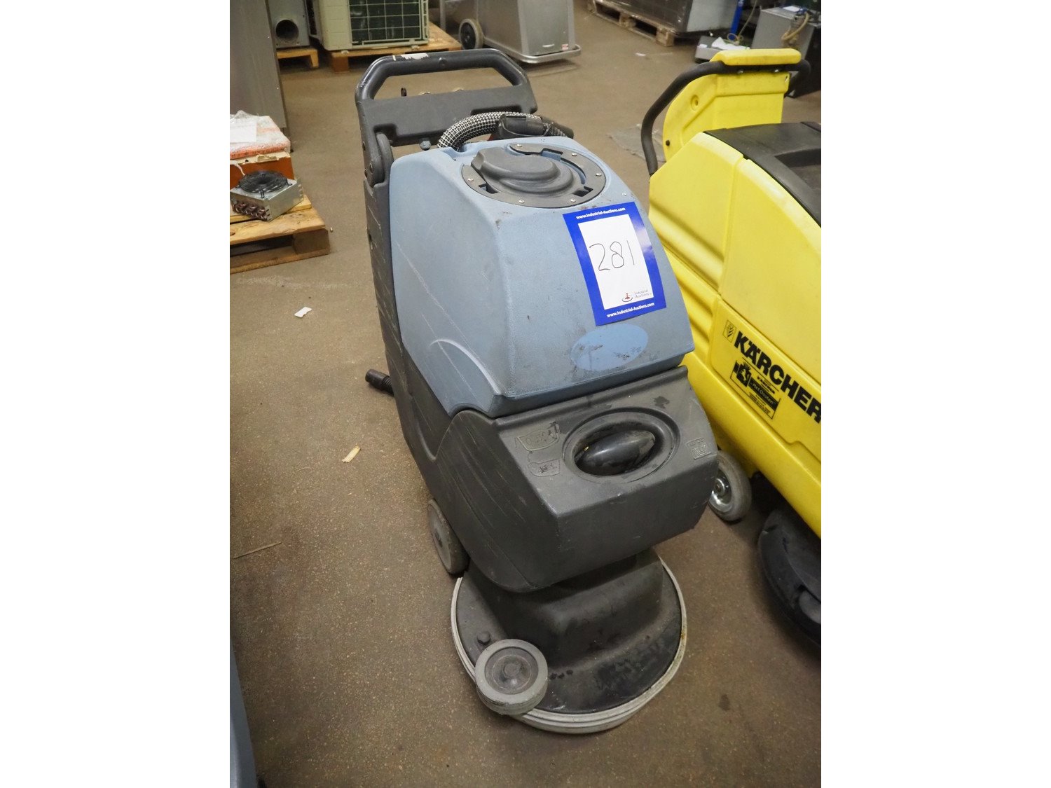 Reima floor scrubbing machine, dimensions: 1150 mm x 500 mm x 1100 mm. Kavel locatie: Kaldenkerkerweg 5, 5932 CS Tegelen, Nederland