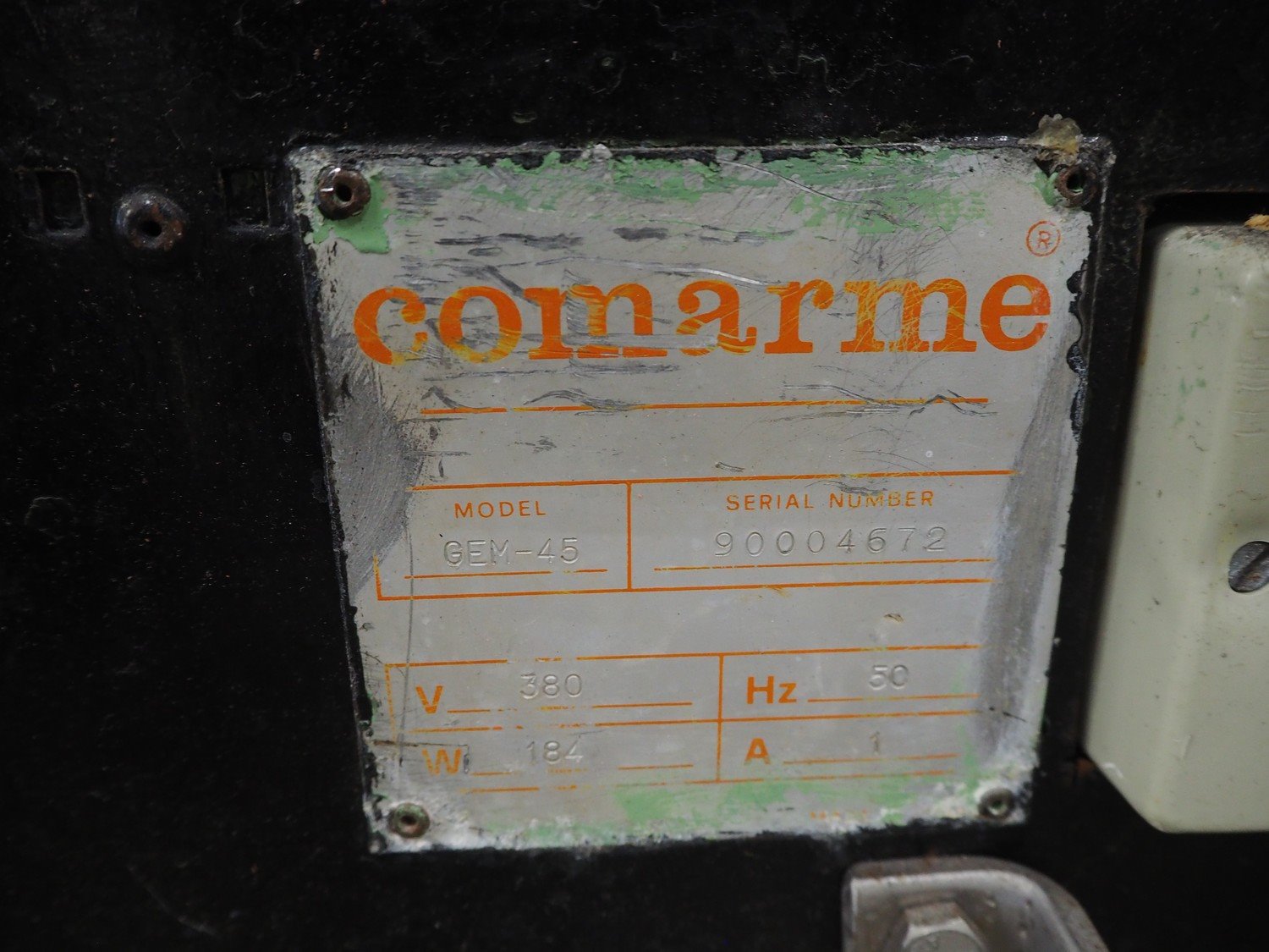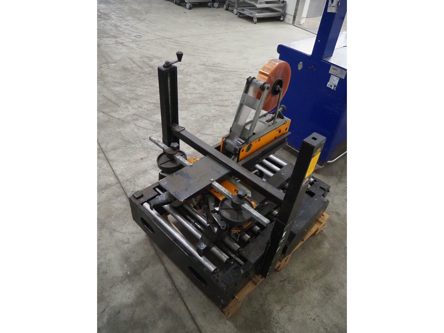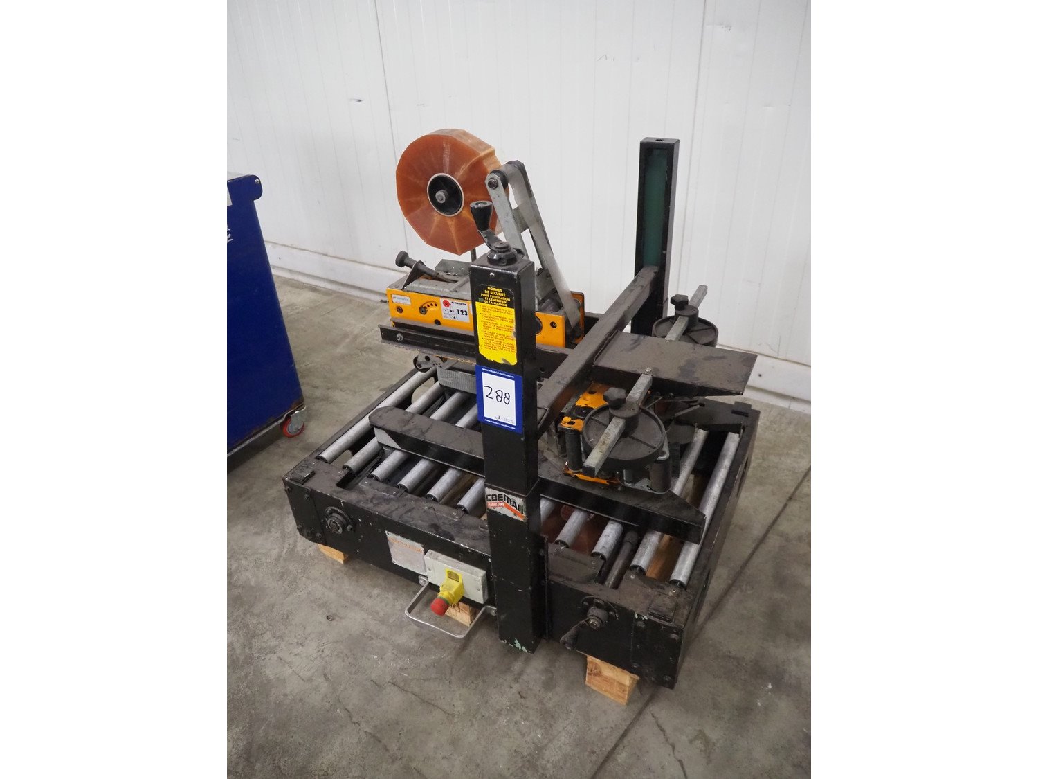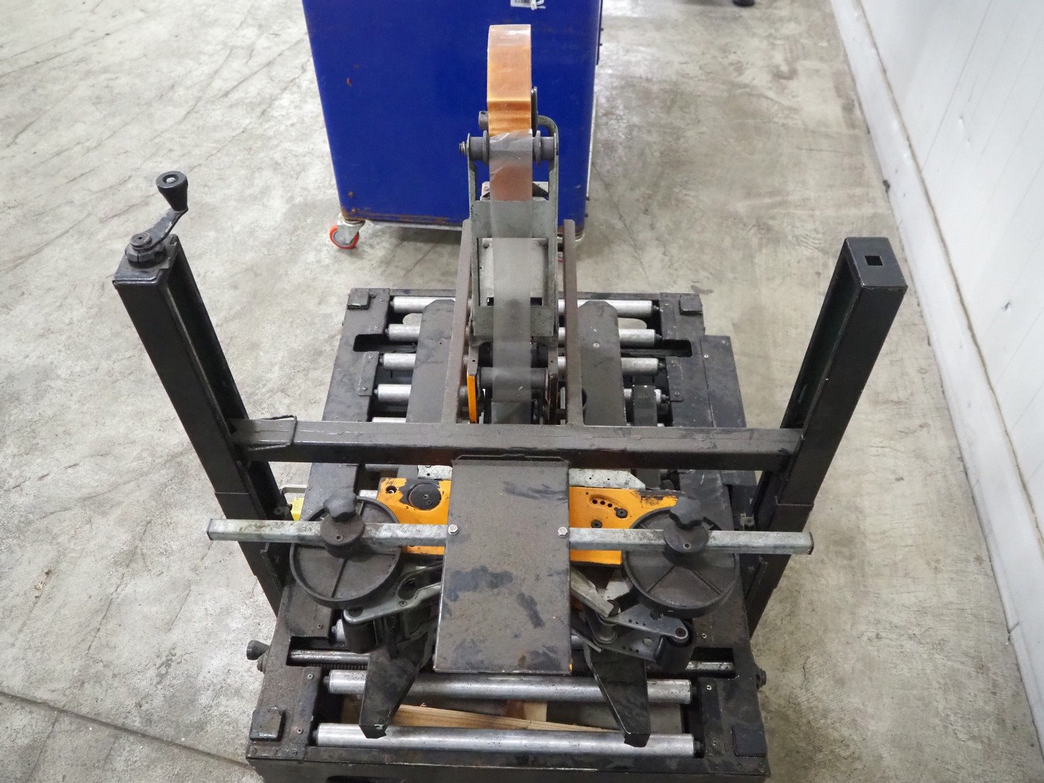 Comarme box closing machine, model: GEM-45, serial number: 90004672, 380 V, 50 Hz, 1 A, 184 W, roller width: 500 mm, total dimensions: 900 mm x 800 mm x 900 mm. Missing legs. Kavel locatie: Kaldenkerkerweg 5, 5932 CS Tegelen, Nederland