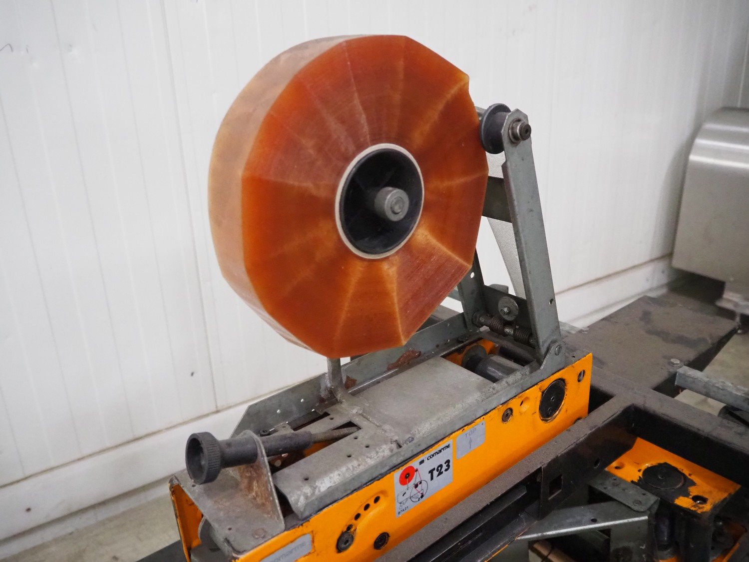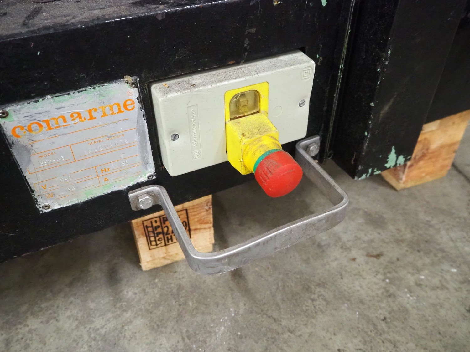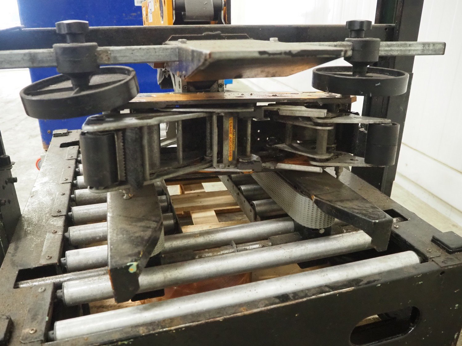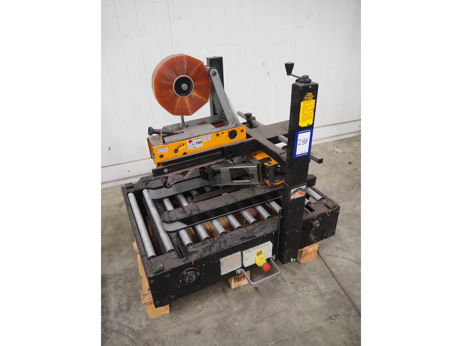 Comarme box closing machine, model: GEM-45, serial number: 90004672, 380 V, 50 Hz, 1 A, 184 W, roller width: 500 mm, total dimensions: 900 mm x 800 mm x 900 mm. Missing legs. Kavel locatie: Kaldenkerkerweg 5, 5932 CS Tegelen, Nederland