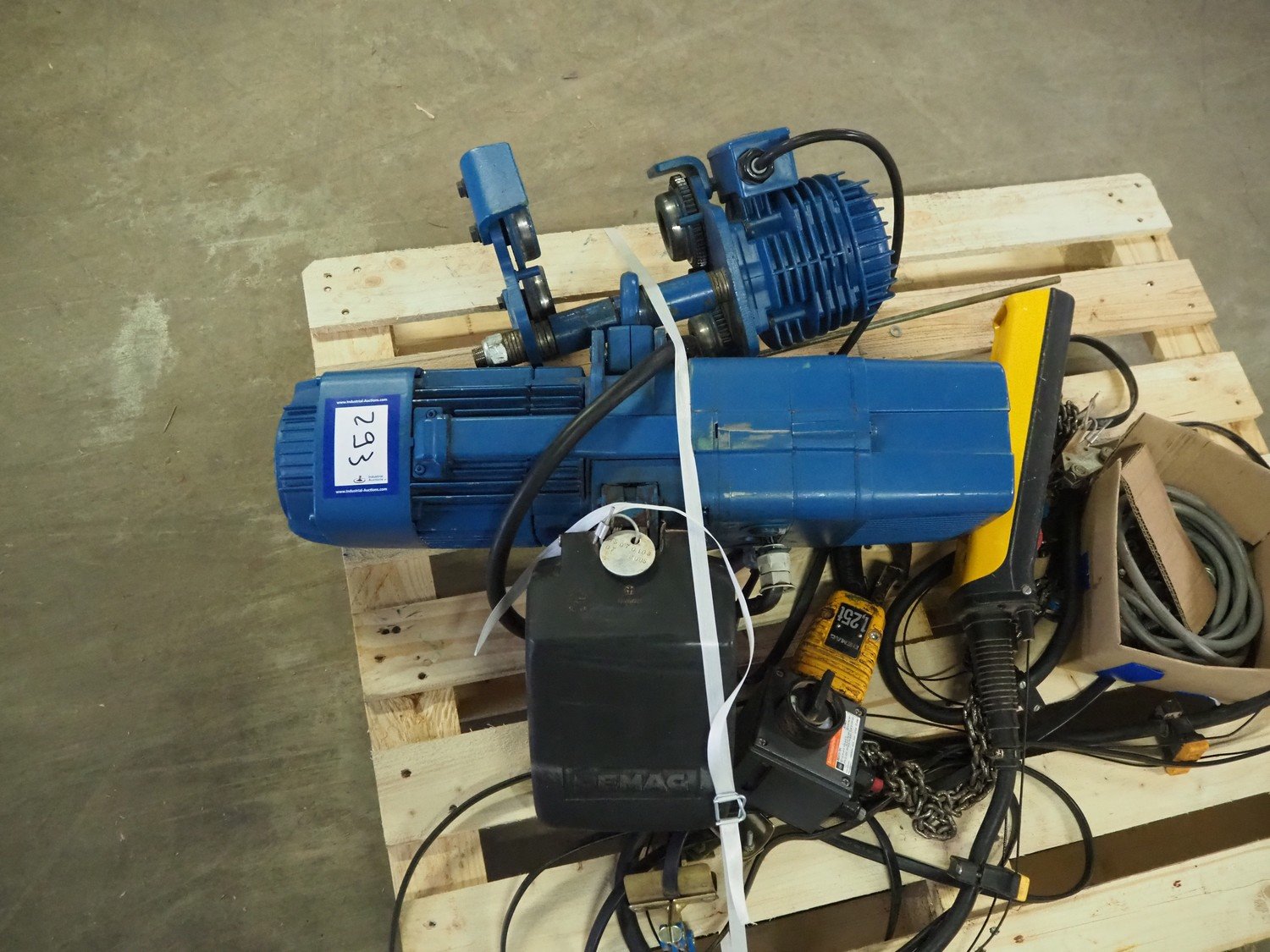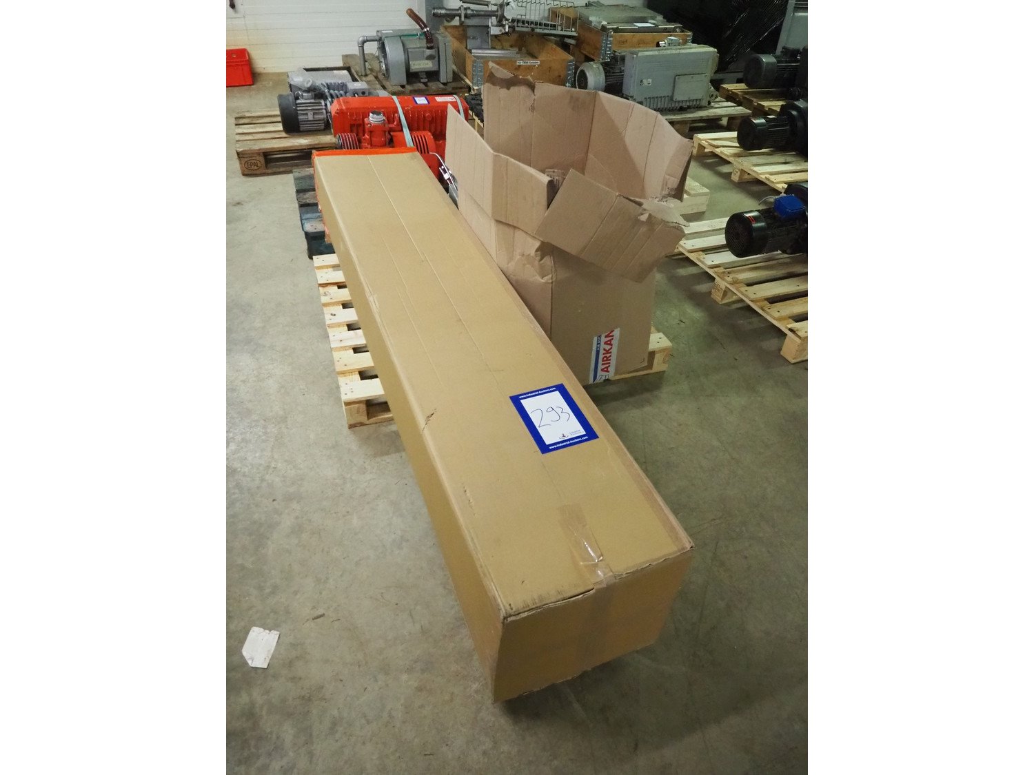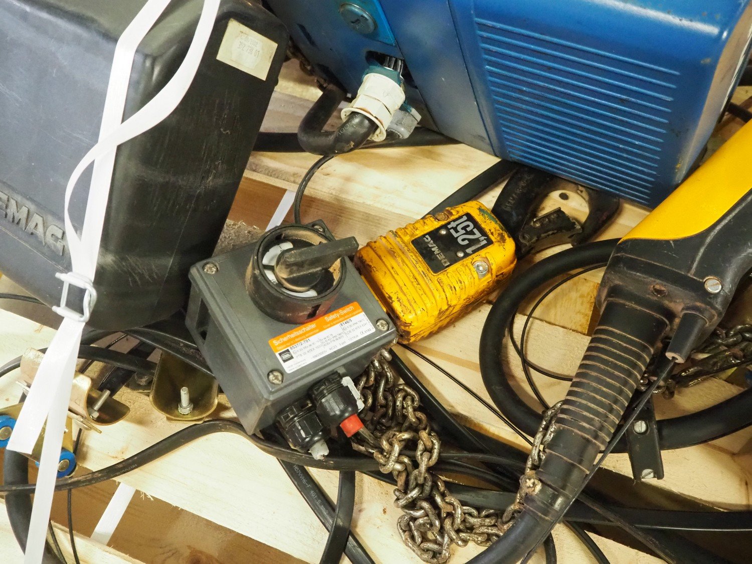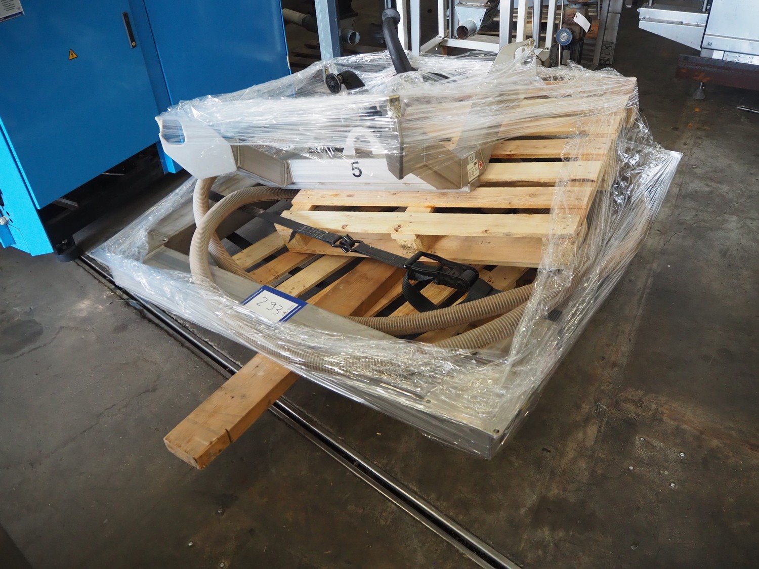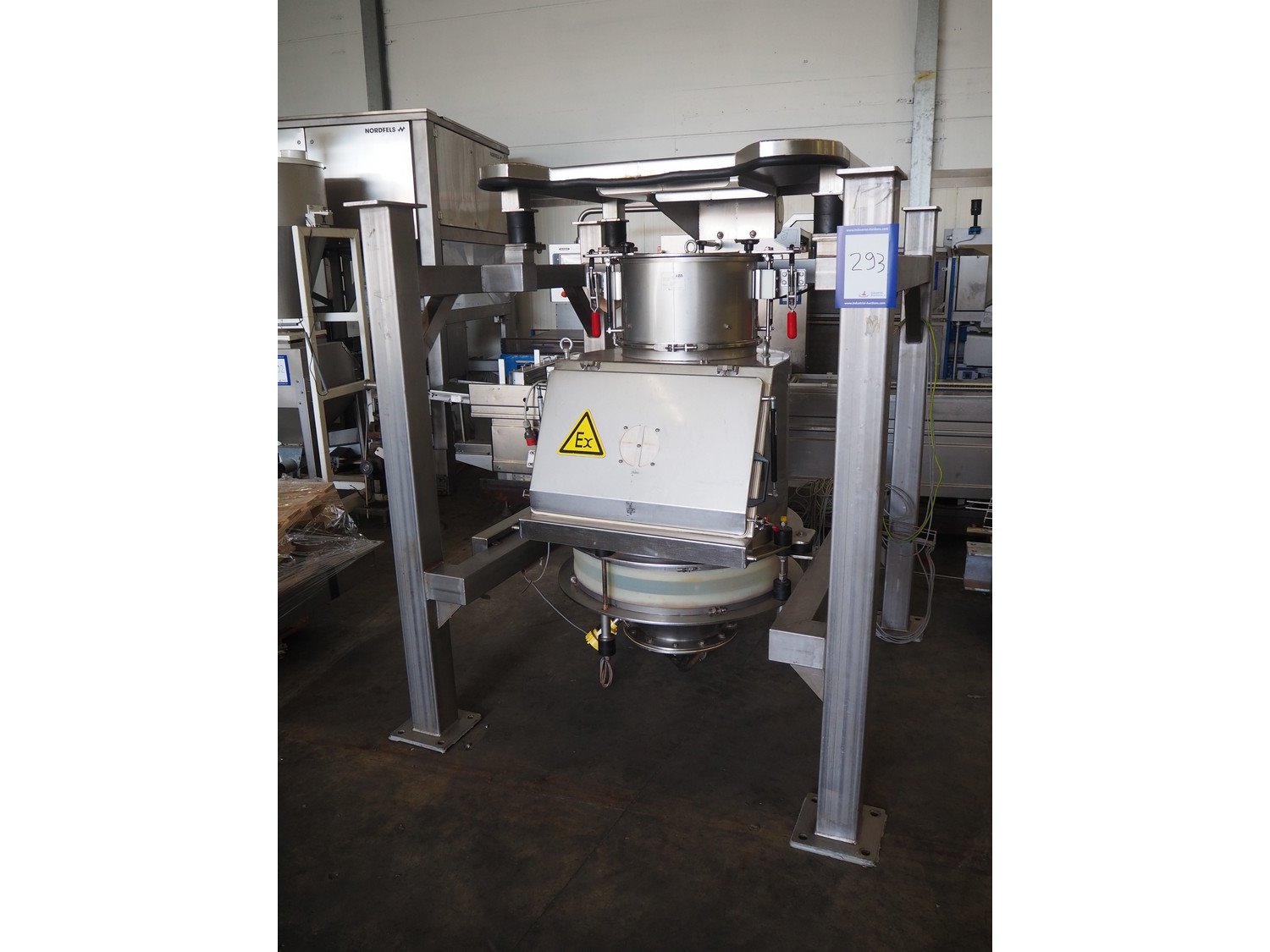 AZO big bag installation, type: BBA 300 F 370LG A22R, machine number: 041744A-40009, year of construction: 30-01-2003, ø inside: 310 mm and 780 mm, perforations: 8 mm and 40 mm, total dimensions: 1720 mm x 1680 mm x 2000 mm. Including 3 pallet with parts, Demag hoist, pole length: 3000 mm, dimensions pallet: 2100 mm x 100 mm x 400 mm, 1600 mm x 1600 mm x 900 mm, 3000 mm x 1200 mm x 500 mm and 1200 mm x 1000 mm x 400 mm. Kavel locatie: Kaldenkerkerweg 5, 5932 CS Tegelen, Nederland