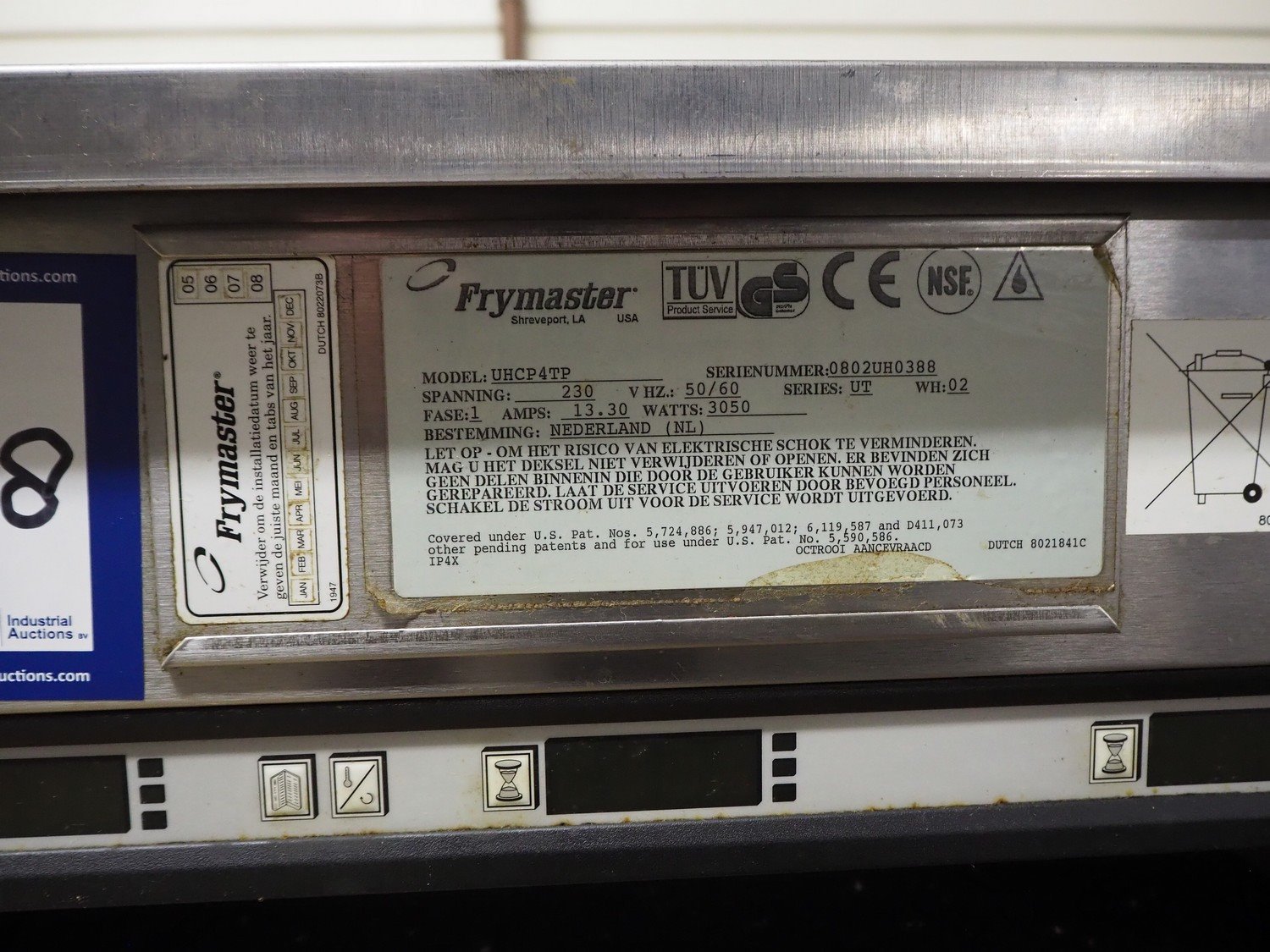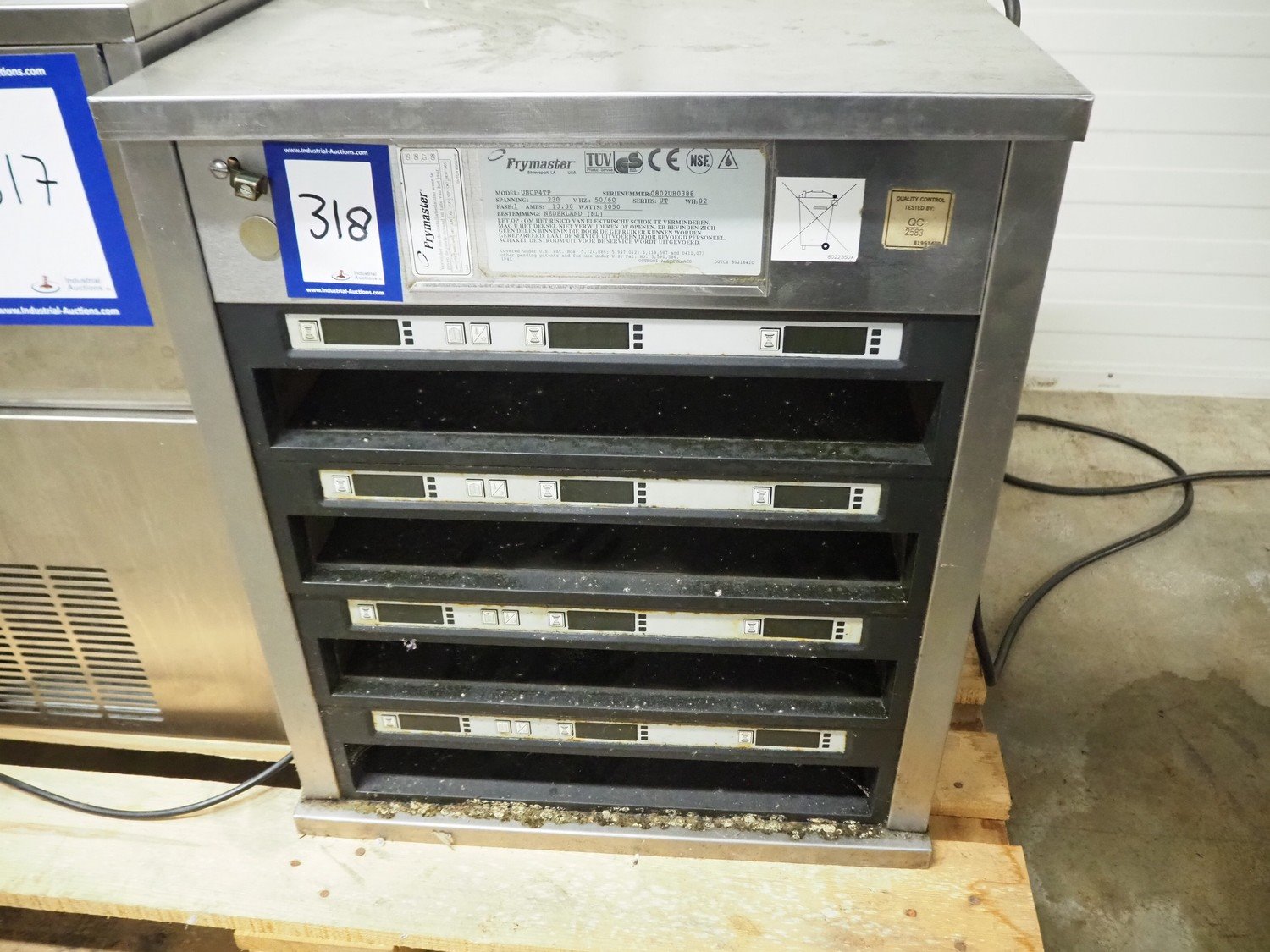 Frymaster universal holding cabinet, model: UHCP4TP, serial number: 0802UH0388, 230 V, 1 Ph, 50/60 Hz, 13.3 A, 3050 W, 4 floors, dimensions each floor: 600 mm x 450 mm x 60 mm, total dimensions: 645 mm x 550 mm x 645 mm. Kavel locatie: Kaldenkerkerweg 5, 5932 CS Tegelen, Nederland