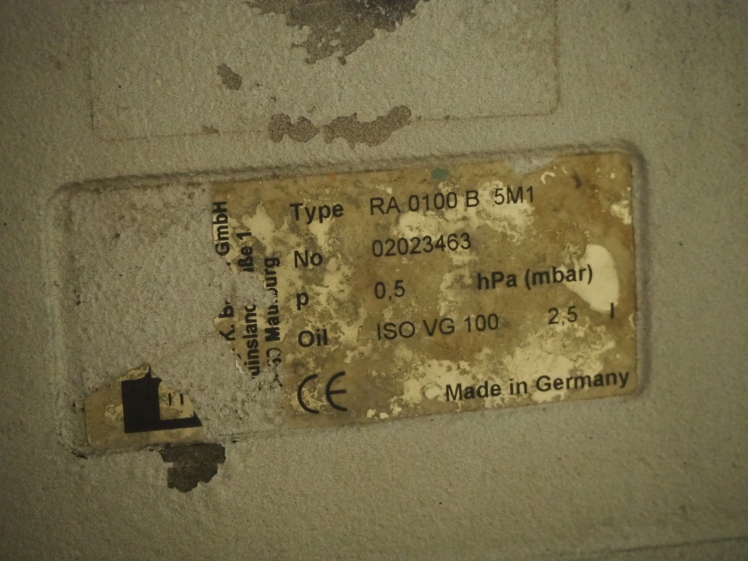 Busch vacuum pump, type: RA 0100 B 5M1, number: 02023463, capacity: 100 m³ per hour, dimensions: 900 mm x 370 mm x 360 mm. Kavel locatie: Kaldenkerkerweg 5, 5932 CS Tegelen, Nederland